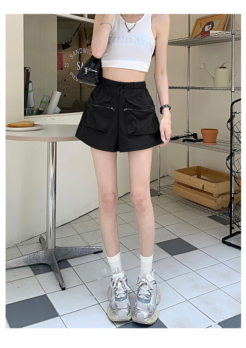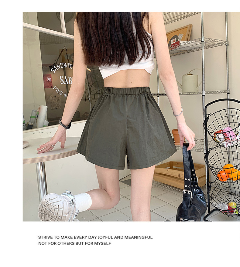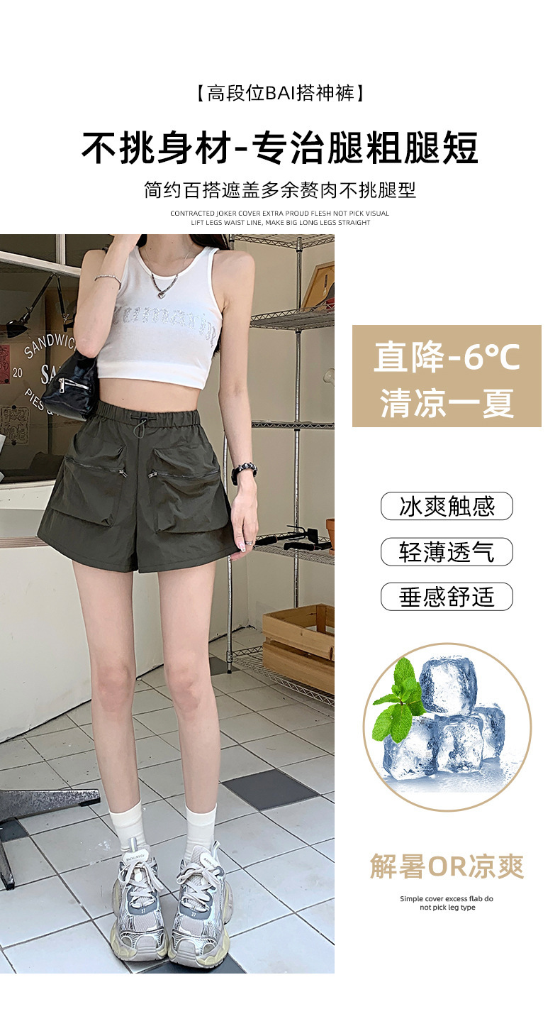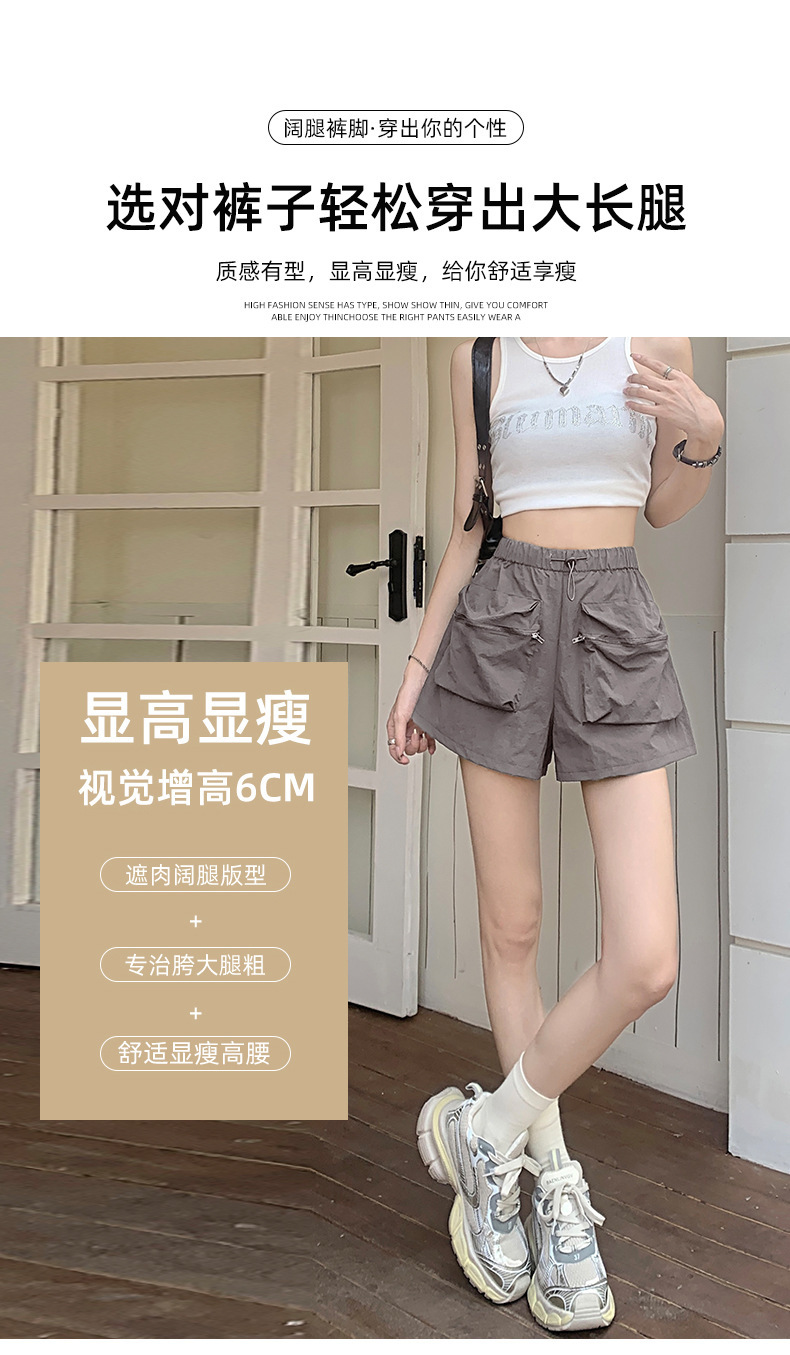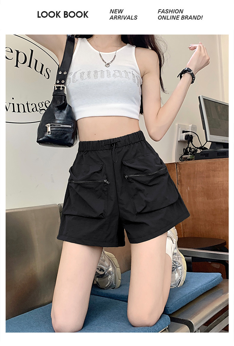 검은 미국 스타일의 빠른 건조 도구 반바지 여성의 봄과 여름 얇은 높은 허리 슬리밍 넓은 다리 캐주얼 바지 작은 남성스토어 가기