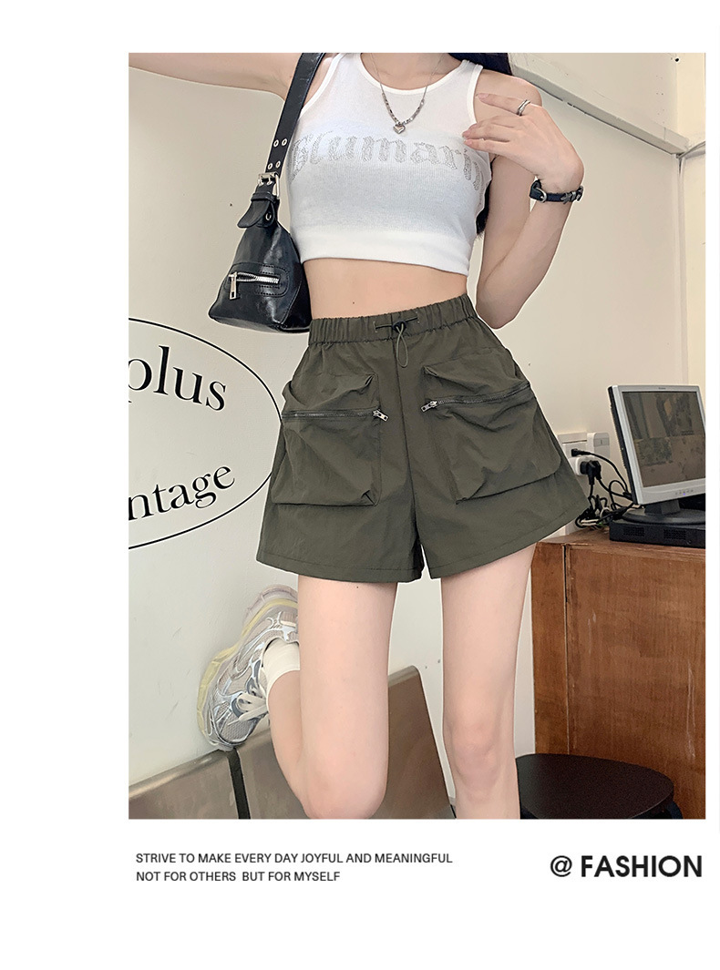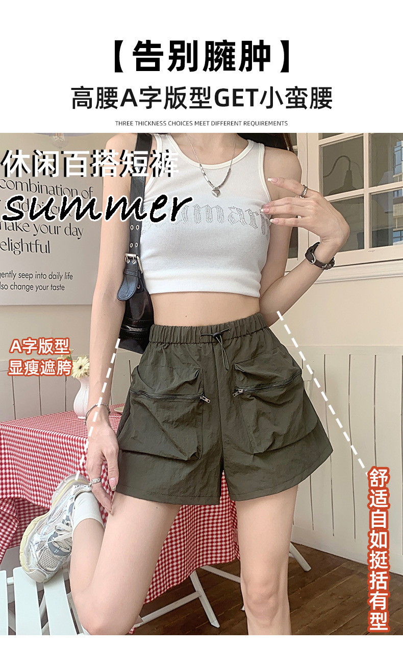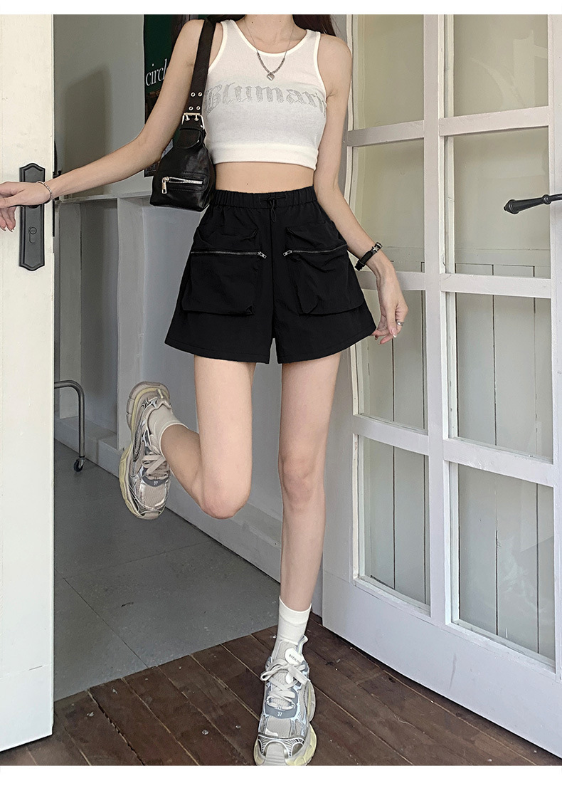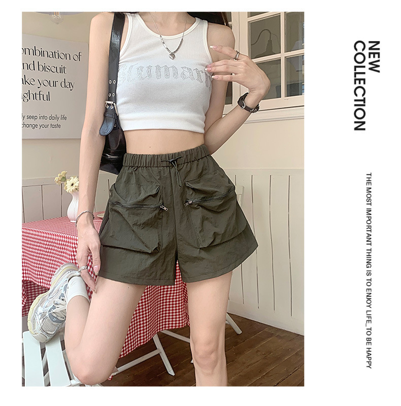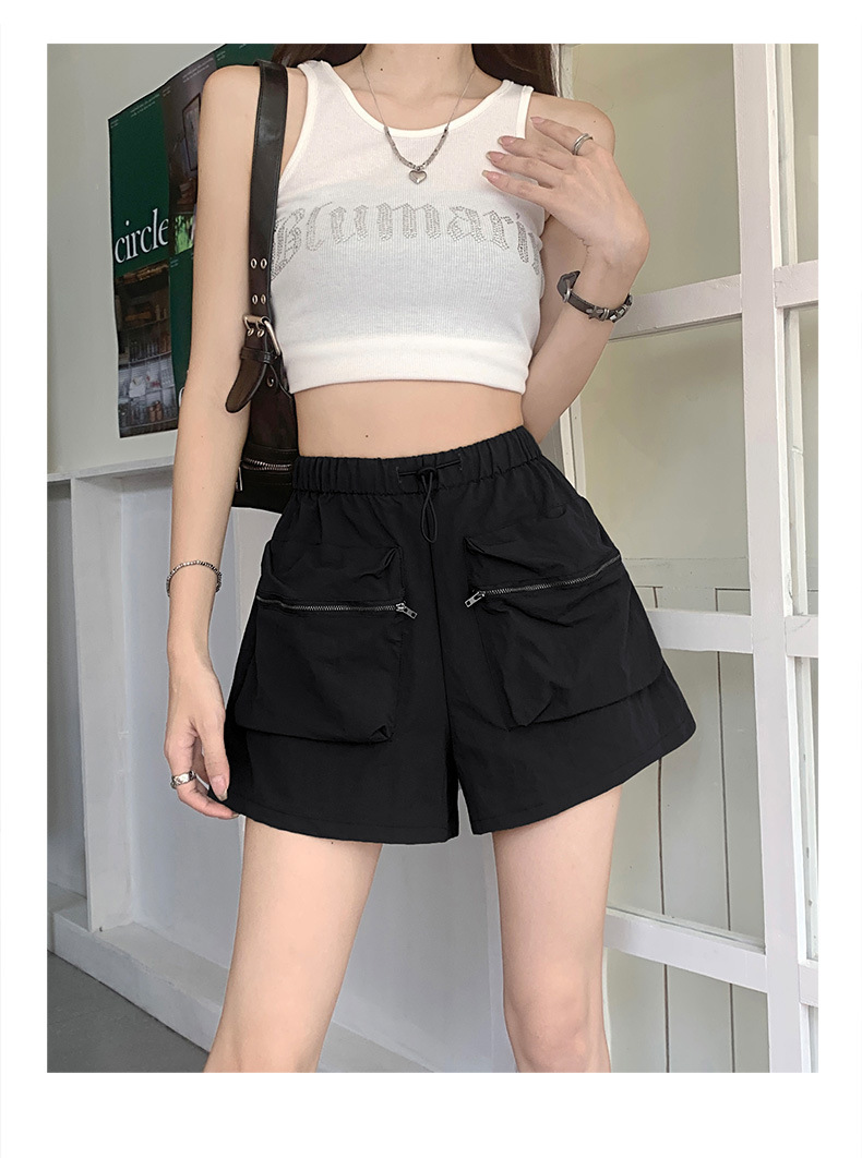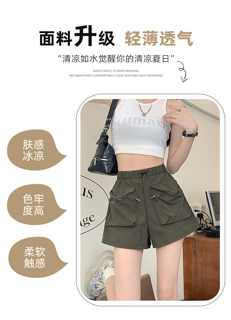 검은 미국 스타일의 빠른 건조 도구 반바지 여성의 봄과 여름 얇은 높은 허리 슬리밍 넓은 다리 캐주얼 바지 작은 남성스토어 가기