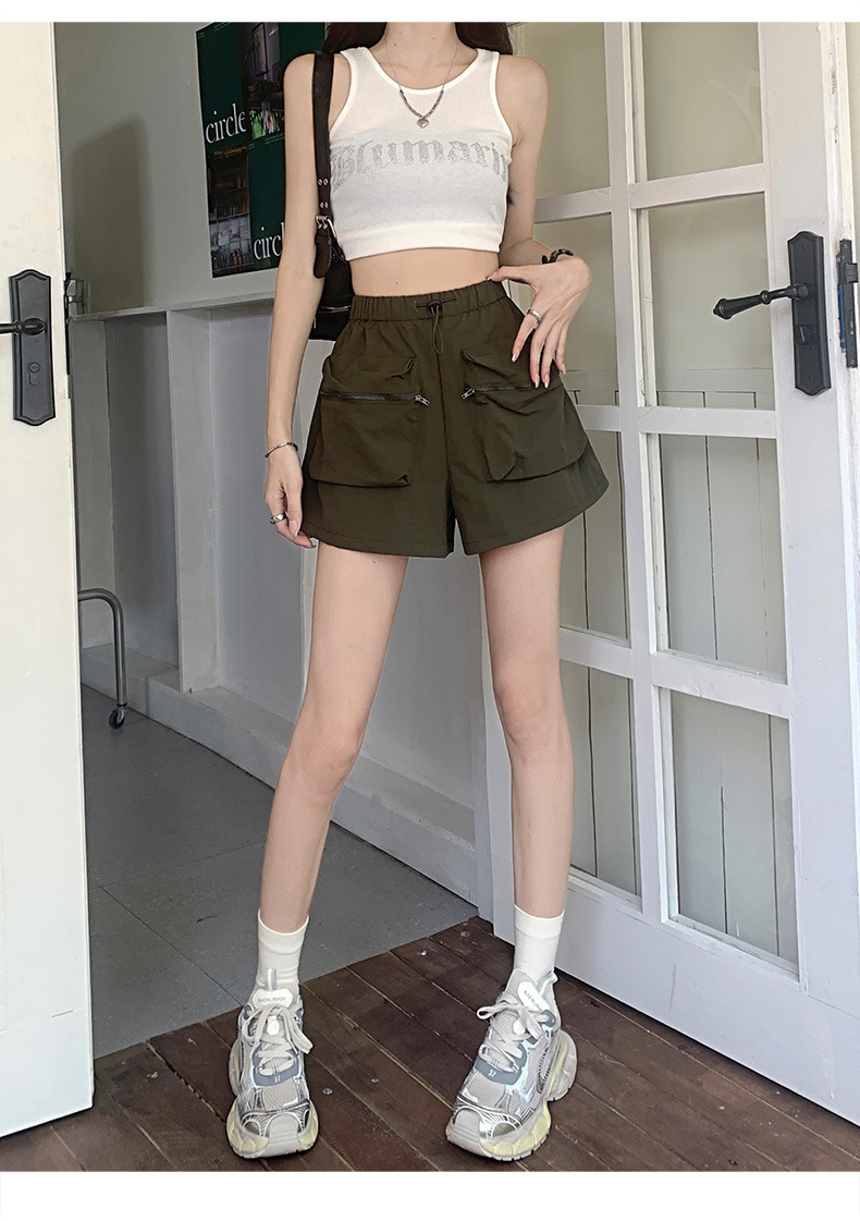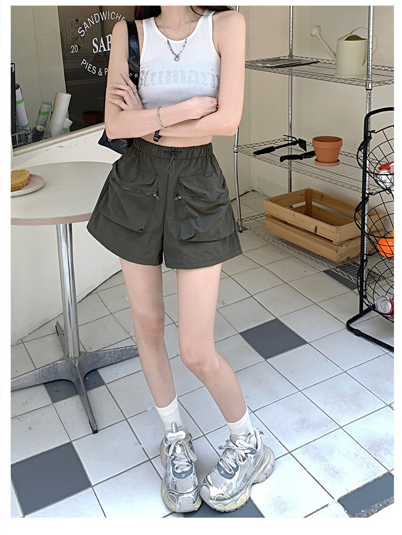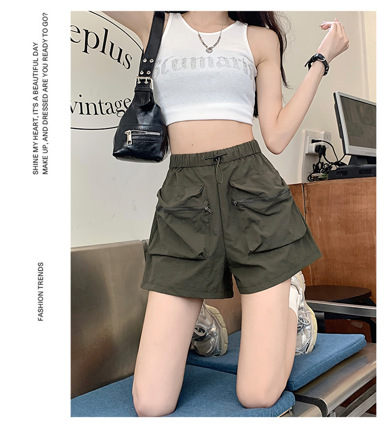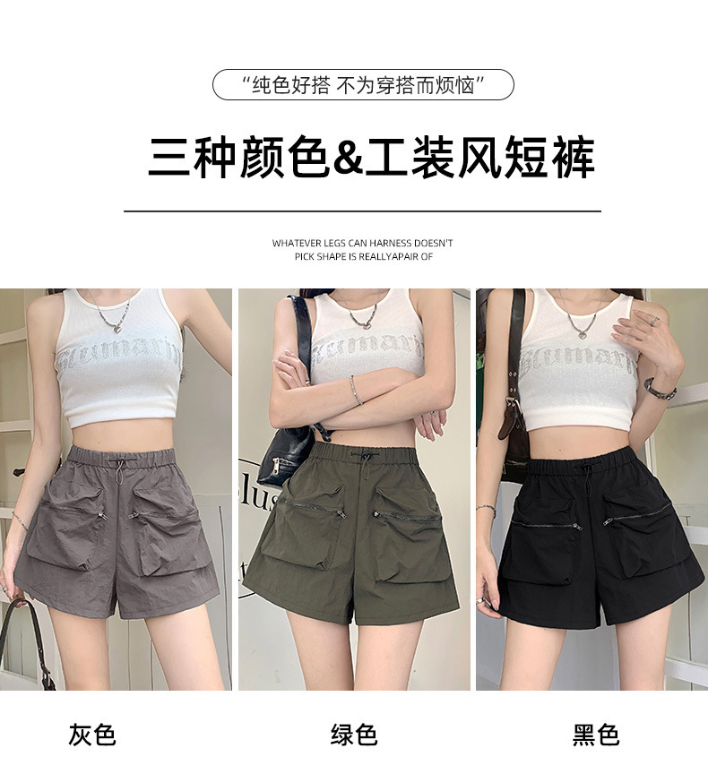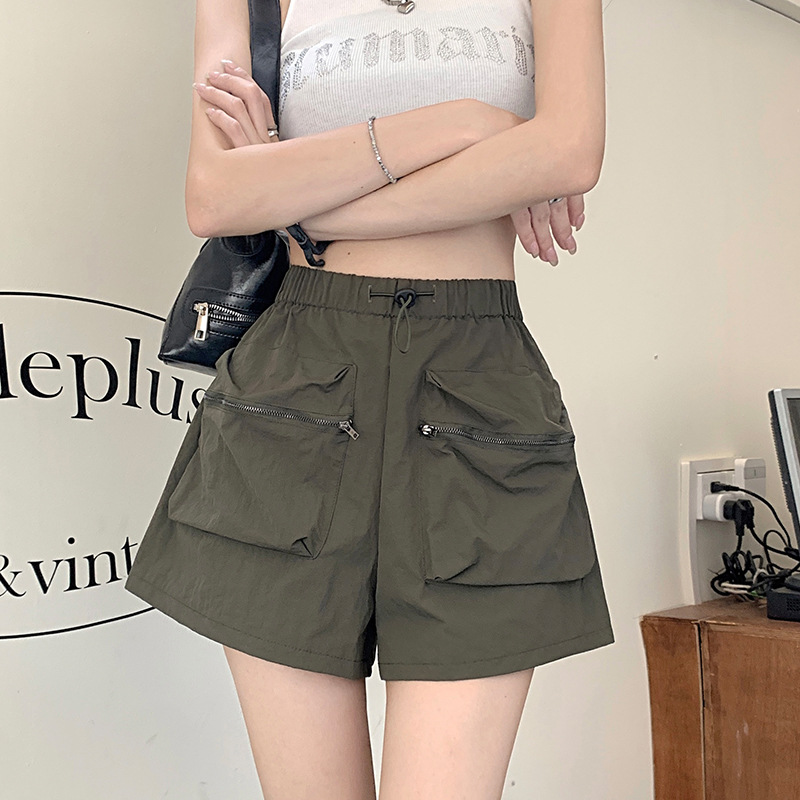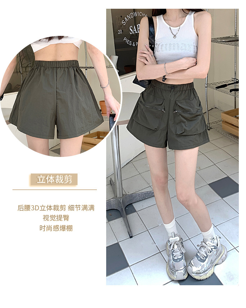 검은 미국 스타일의 빠른 건조 도구 반바지 여성의 봄과 여름 얇은 높은 허리 슬리밍 넓은 다리 캐주얼 바지 작은 남성스토어 가기