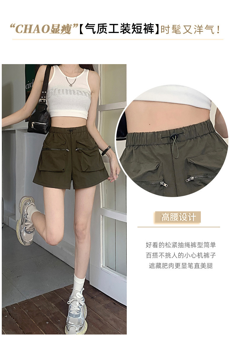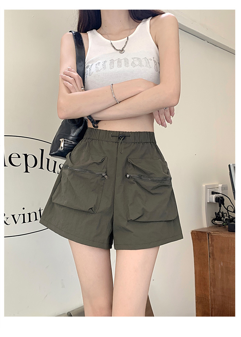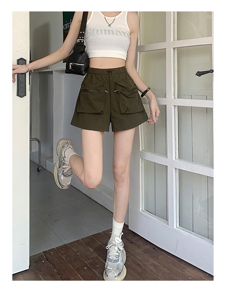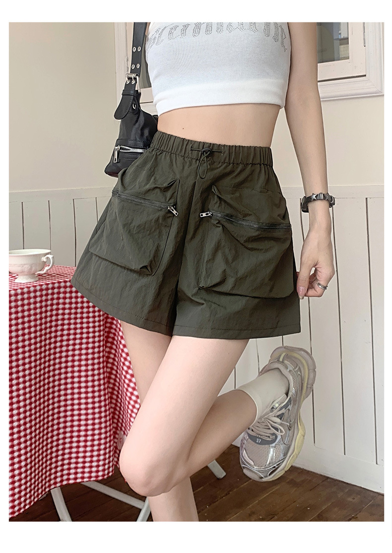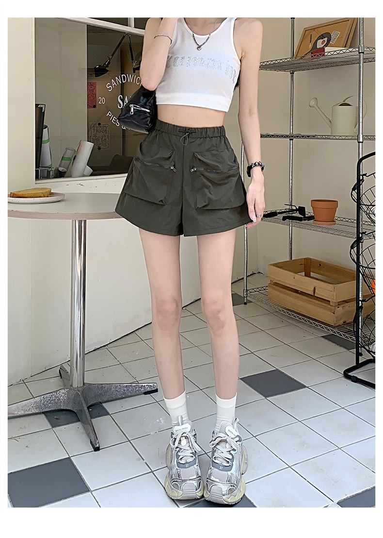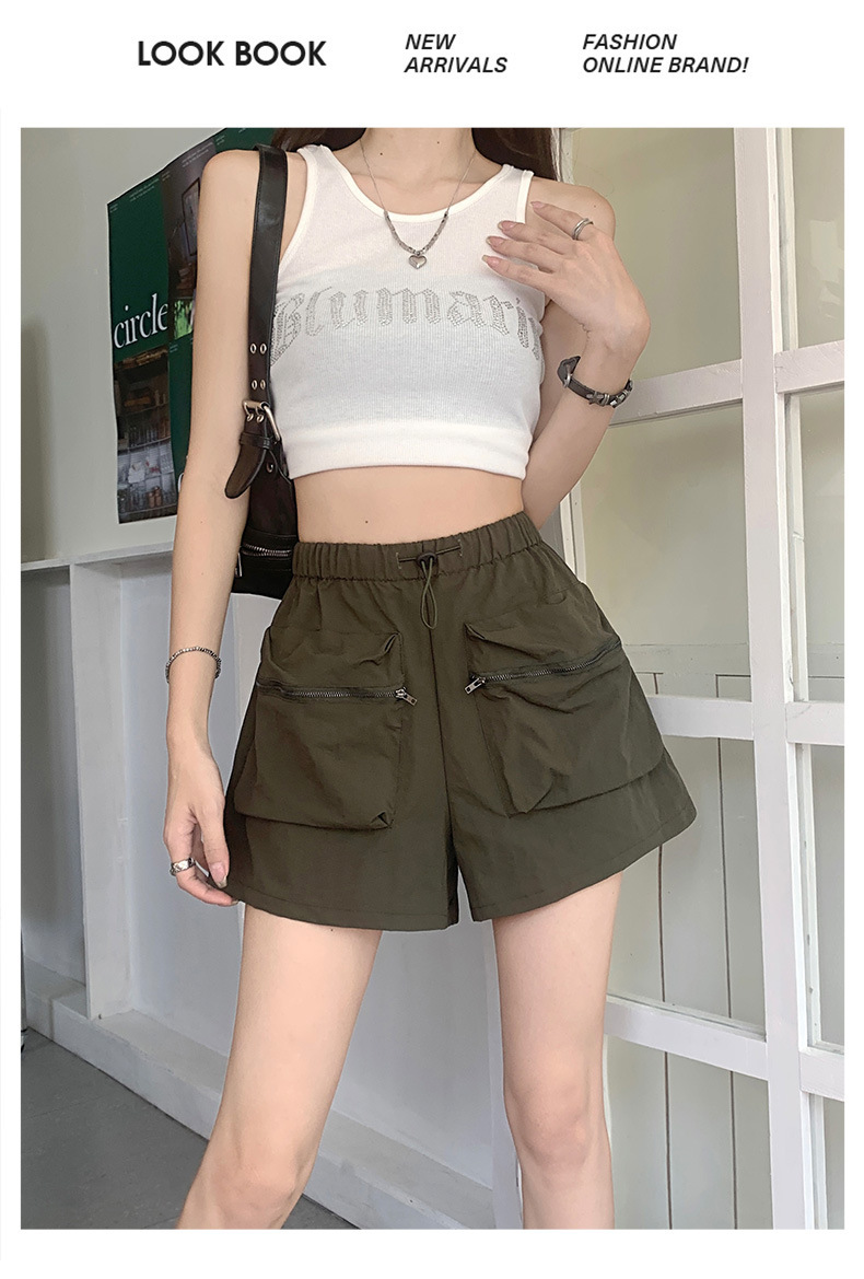 검은 미국 스타일의 빠른 건조 도구 반바지 여성의 봄과 여름 얇은 높은 허리 슬리밍 넓은 다리 캐주얼 바지 작은 남성스토어 가기