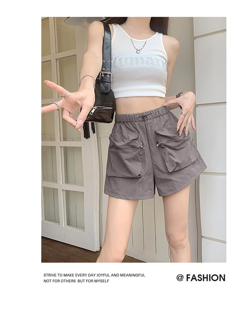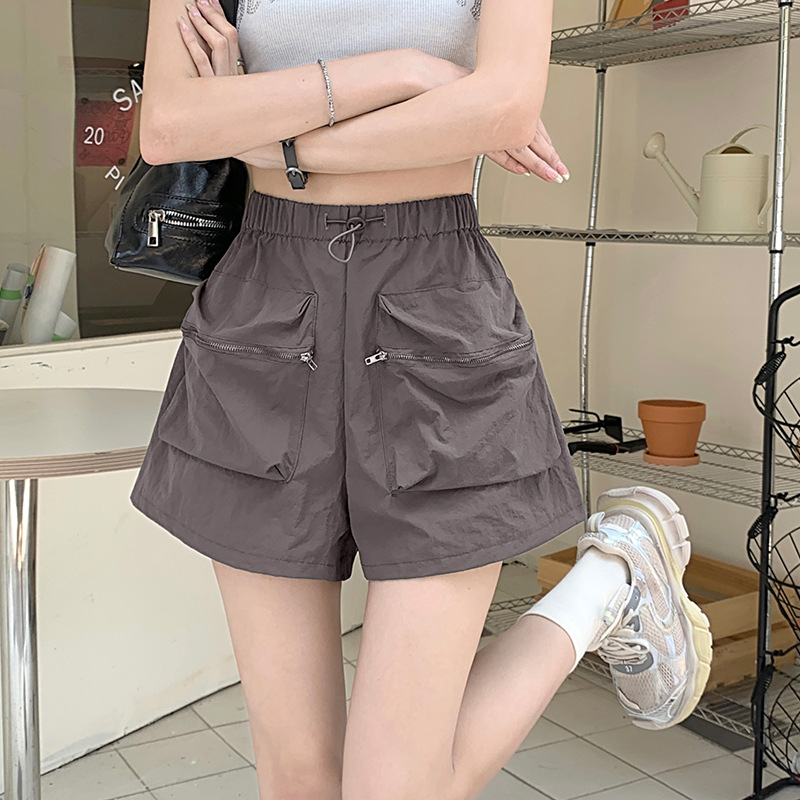 검은 미국 스타일의 빠른 건조 도구 반바지 여성의 봄과 여름 얇은 높은 허리 슬리밍 넓은 다리 캐주얼 바지 작은 남성