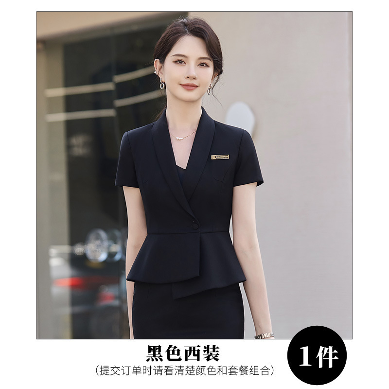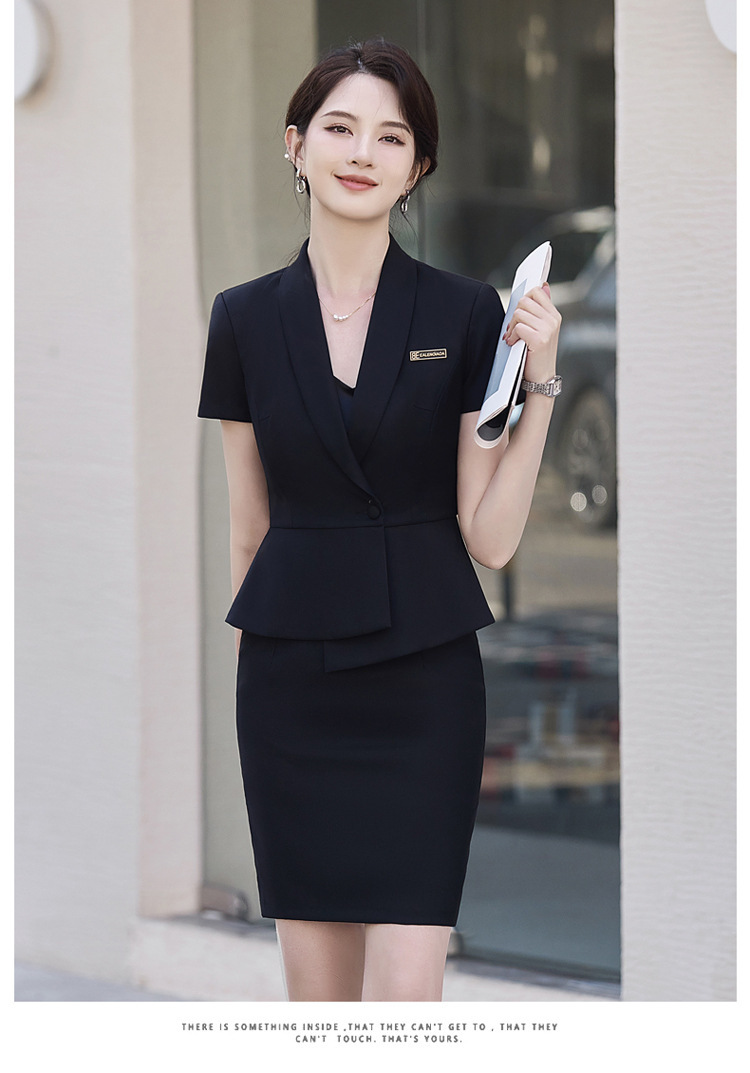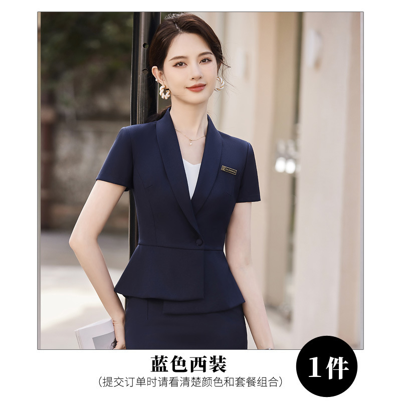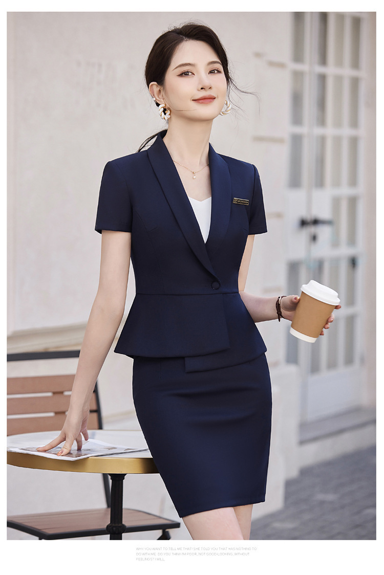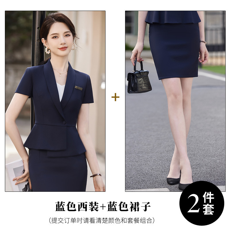 2024 여름 비즈니스 착용 짧은 소매 회색 세트 기질 호텔 프론트 데스크 보석 가게 바지 치마