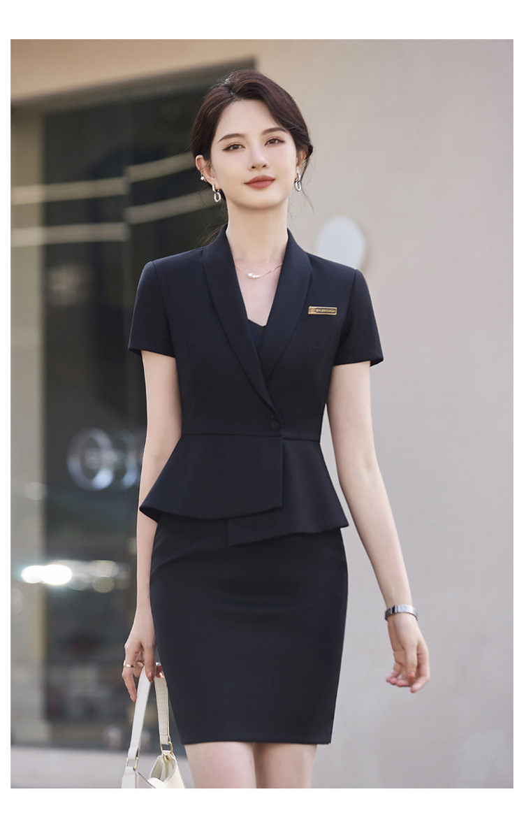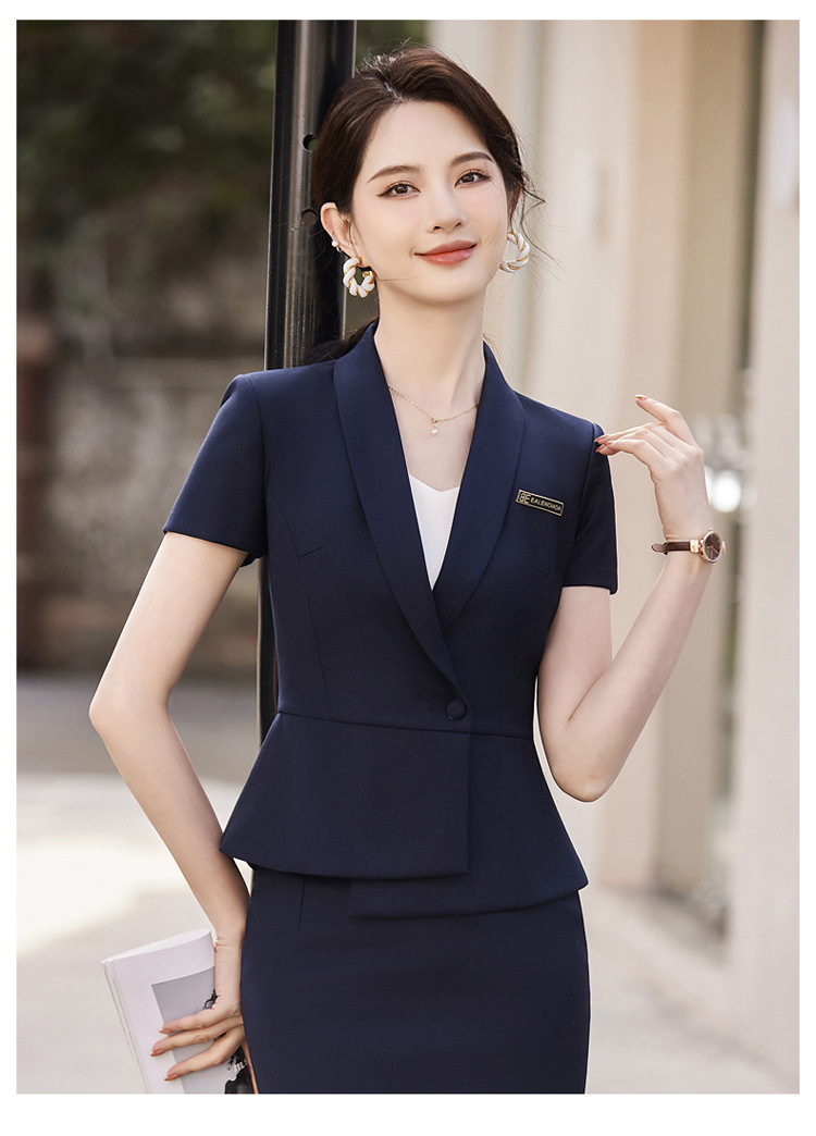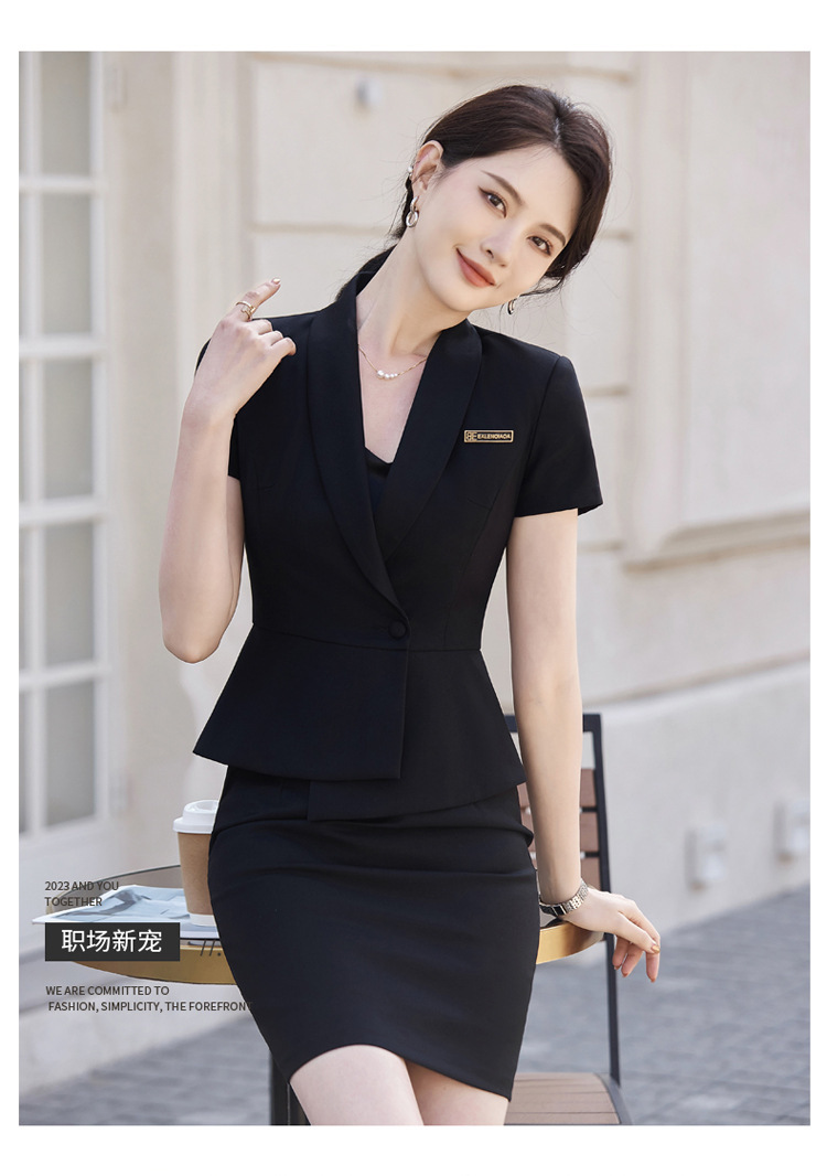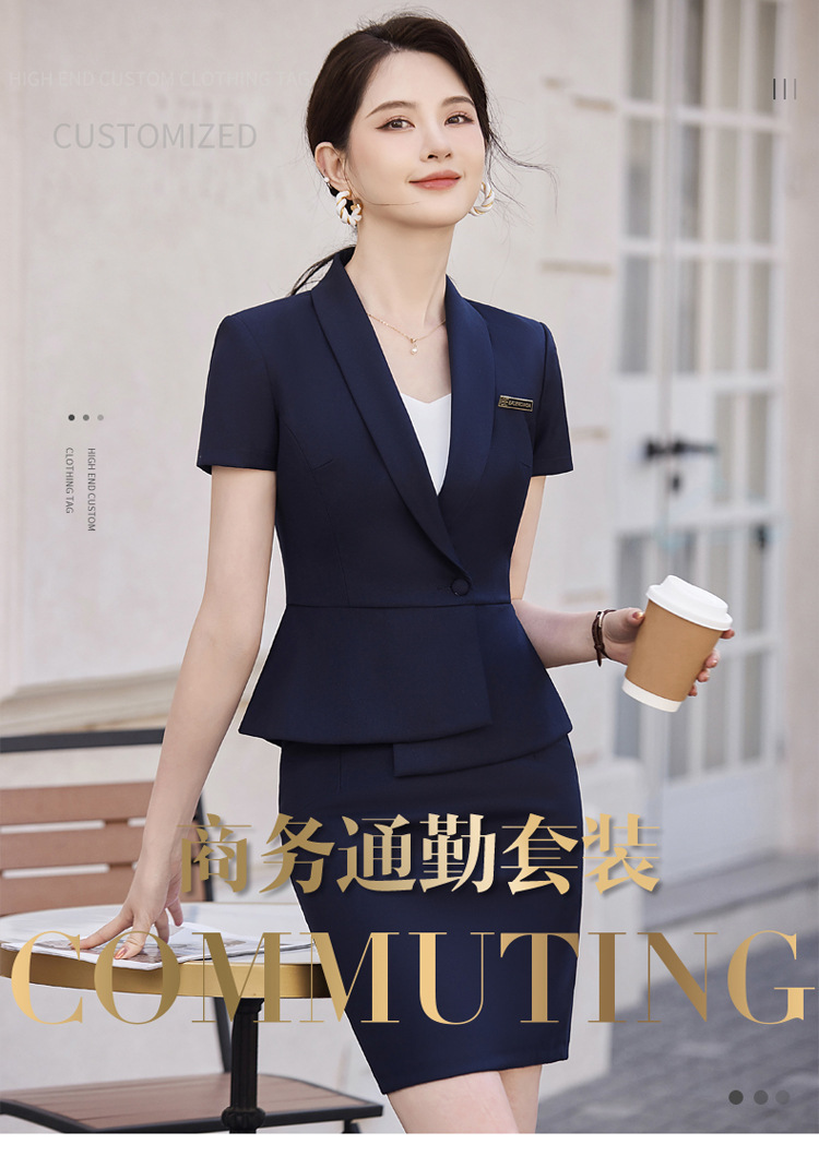 2024 여름 비즈니스 착용 짧은 소매 회색 세트 기질 호텔 프론트 데스크 보석 가게 바지 치마