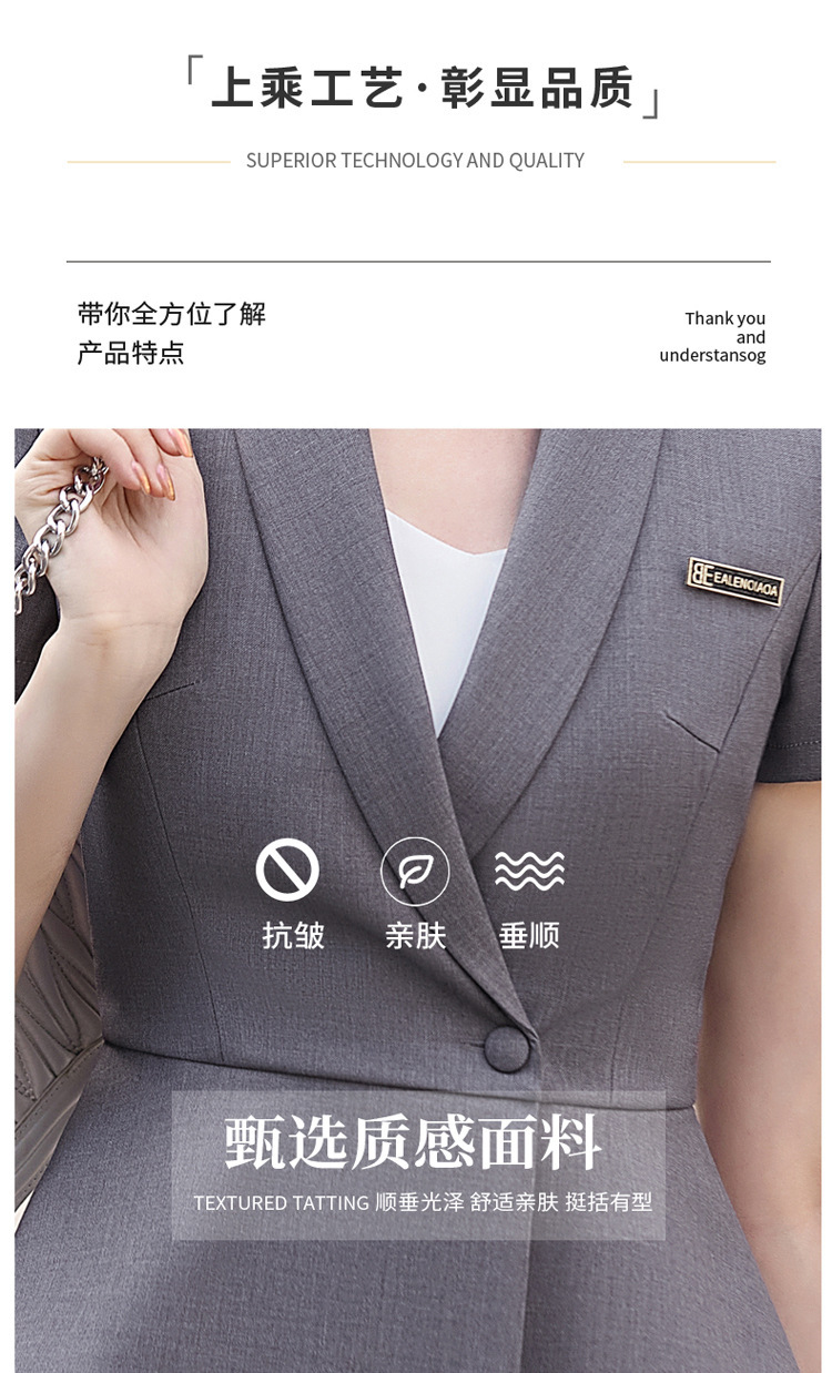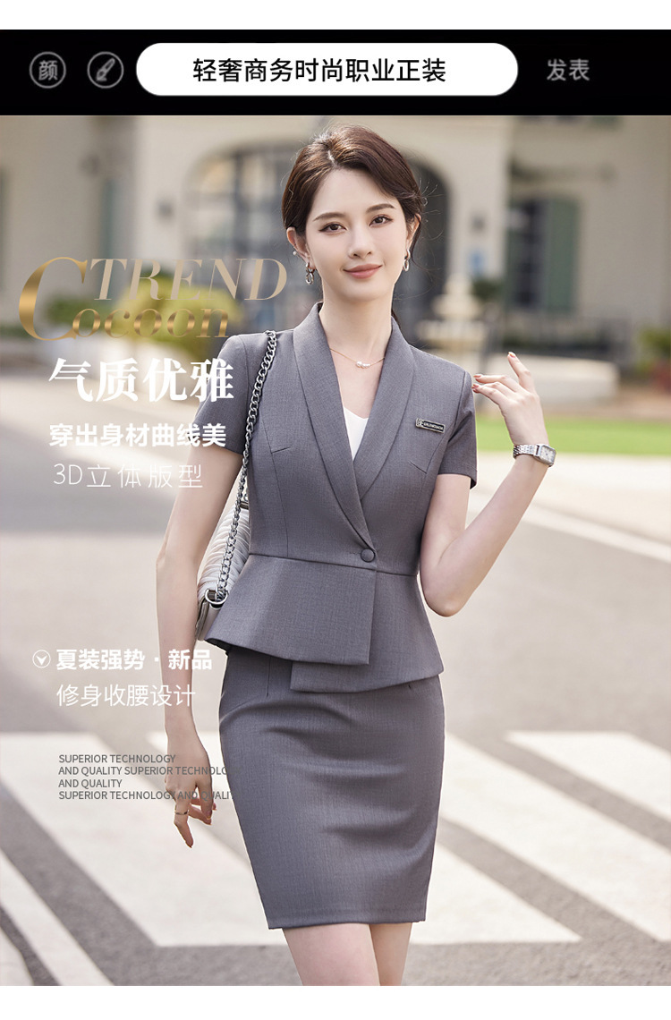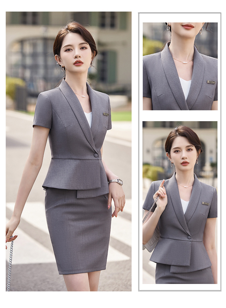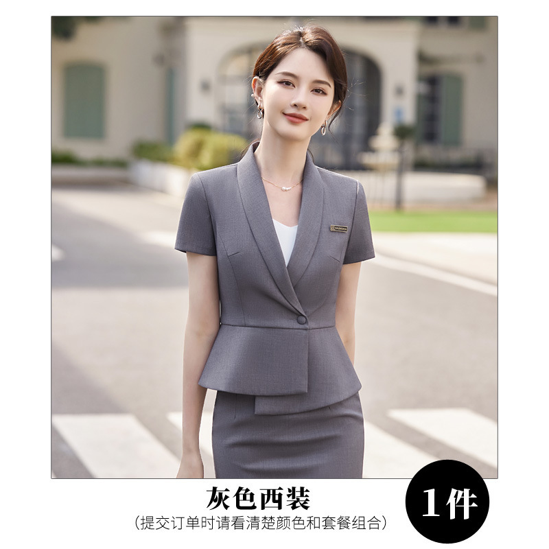 高端职业装短袖灰色套装女夏季薄款气质酒店前台珠宝店工作服套裙