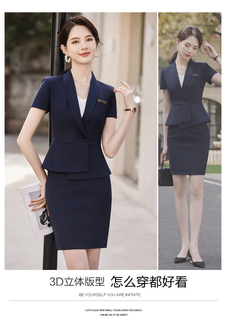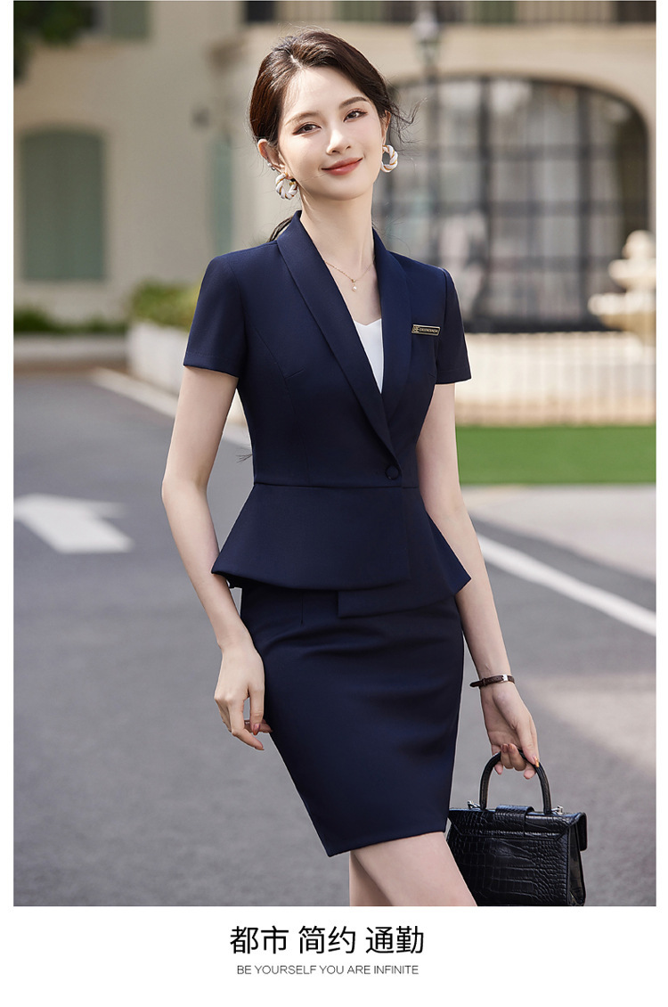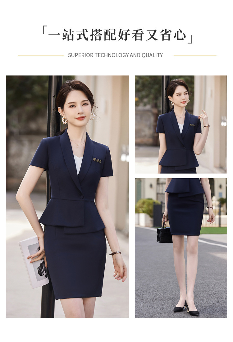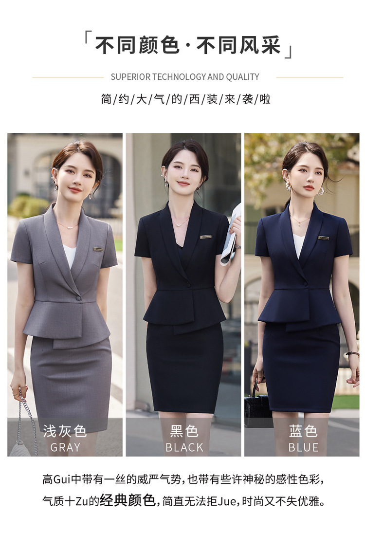 高端职业装短袖灰色套装女夏季薄款气质酒店前台珠宝店工作服套裙
