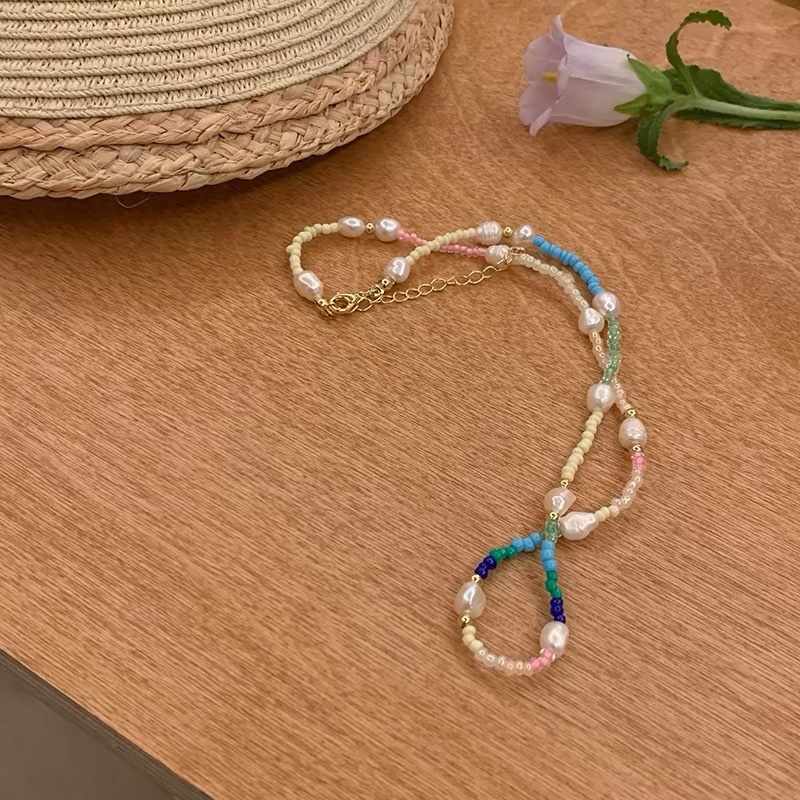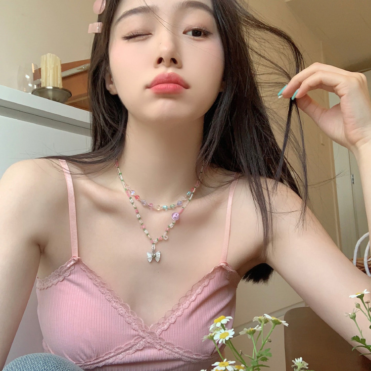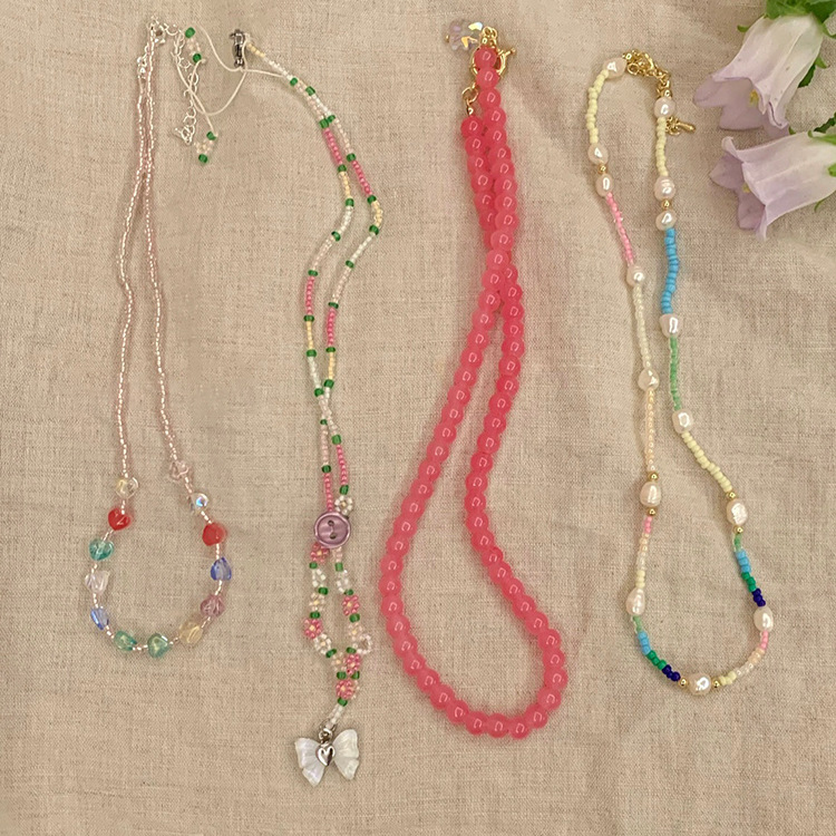 다채로운 여름 쌓인 비즈 나비 목걸이 여성의 2024 새로운 핫 액세서리 쇄골 체인 도파민 목 체인스토어 가기