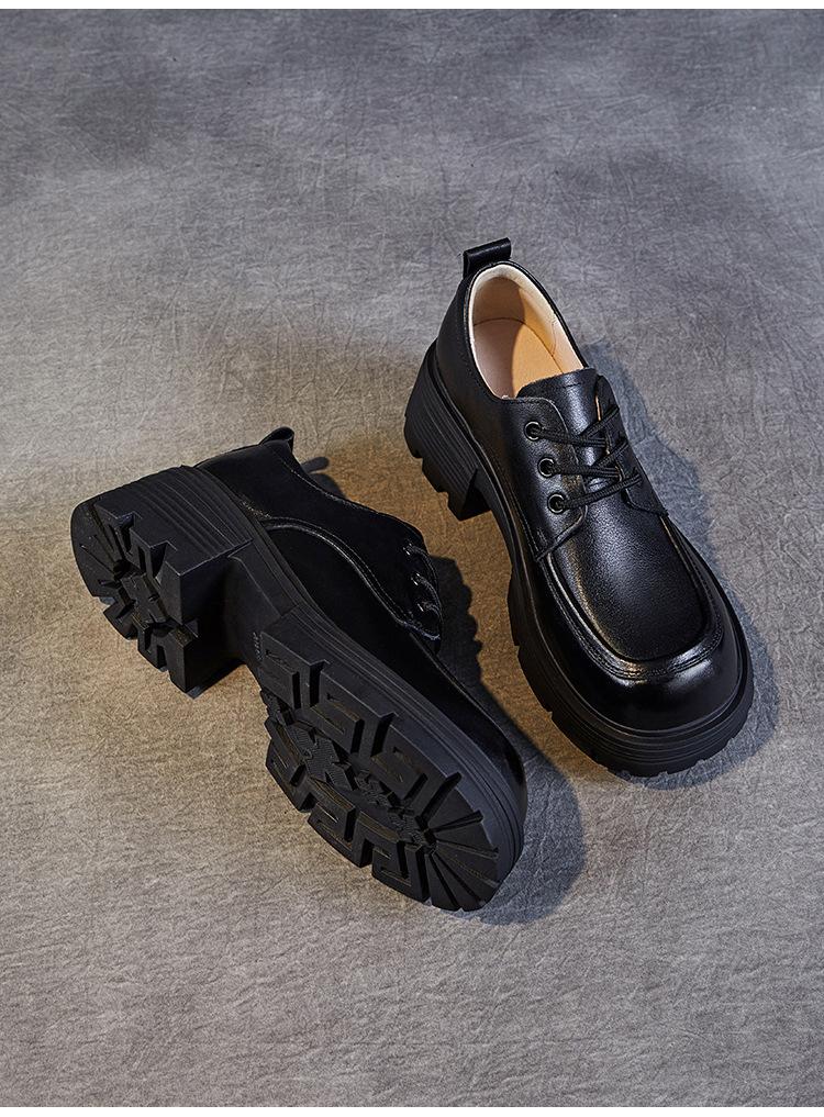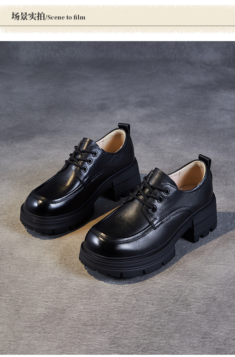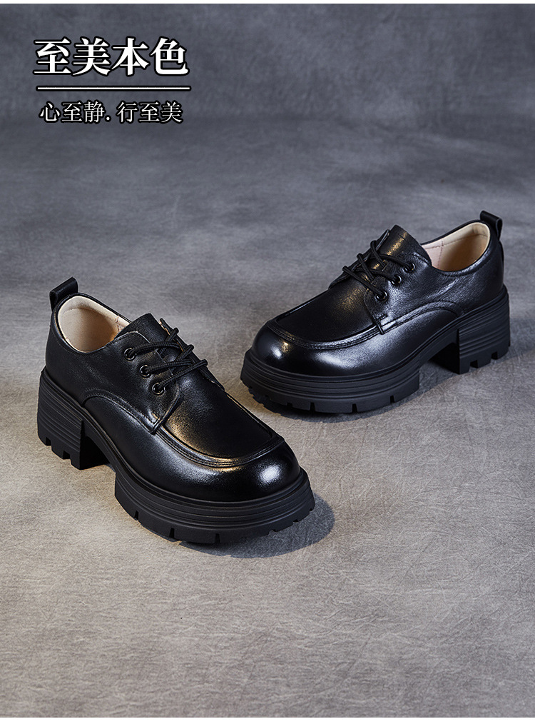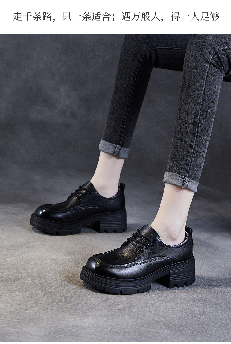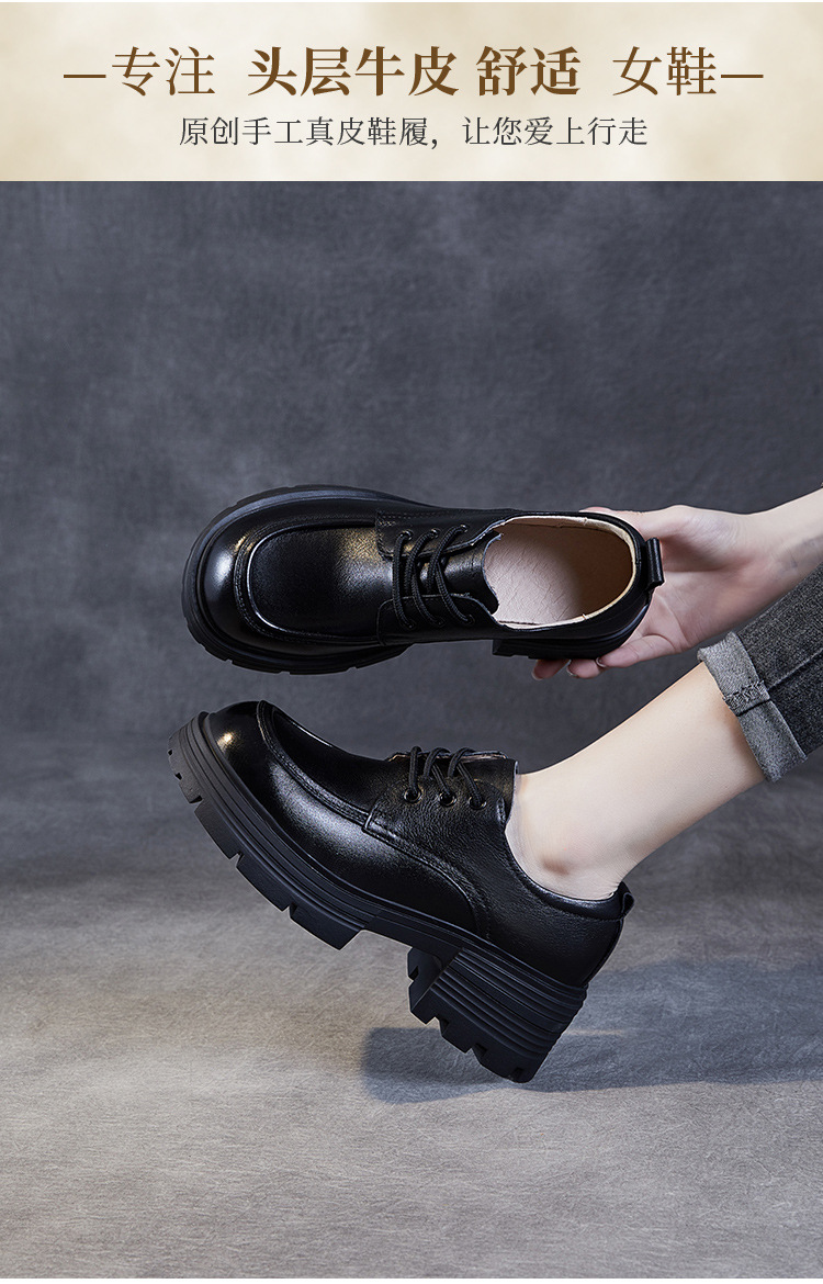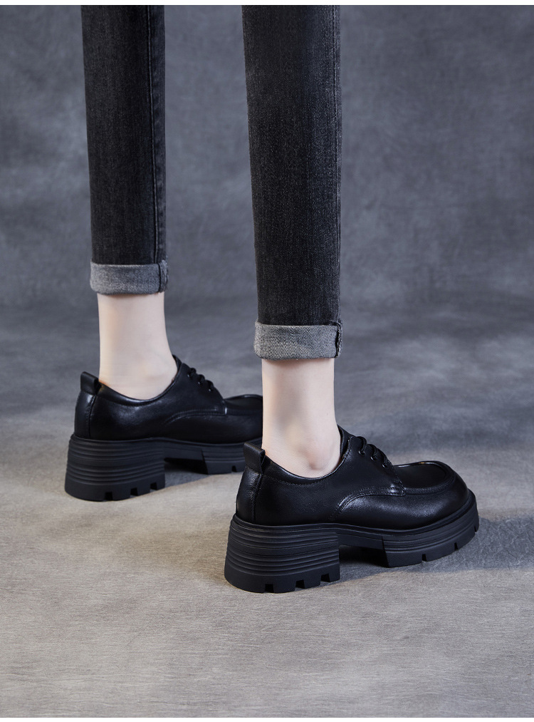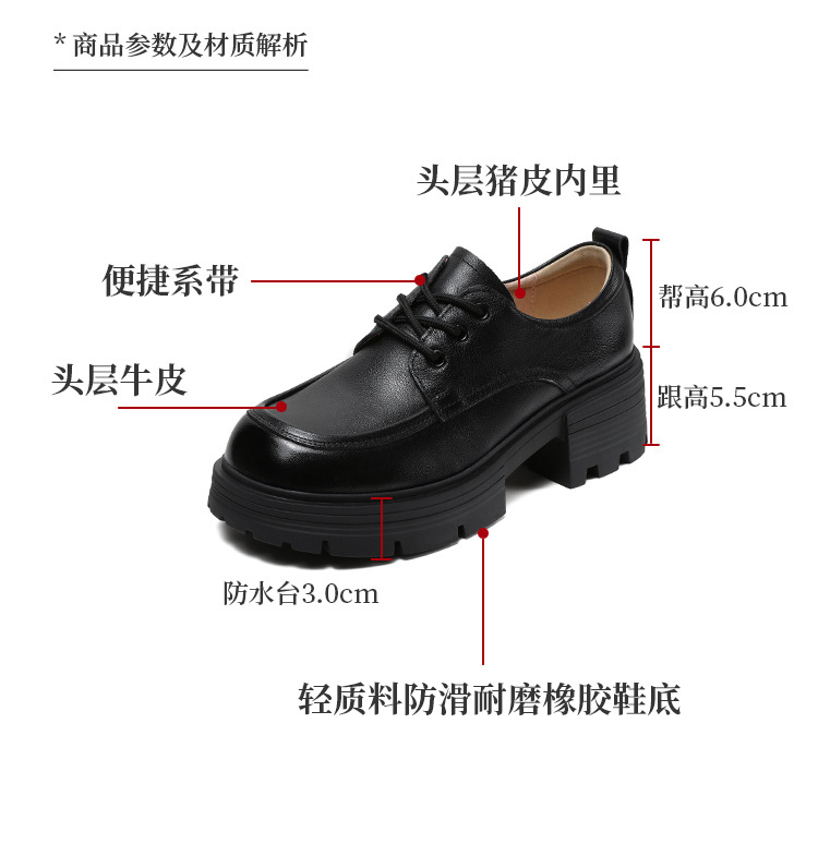 첫 번째 레이어 소 가죽 두꺼운 밑창 작은 가죽 신발 정품 가죽 영국 높이 증가 옥스포드 신발 2024 봄 새로운 블랙 레이스 업 로퍼스토어 가기