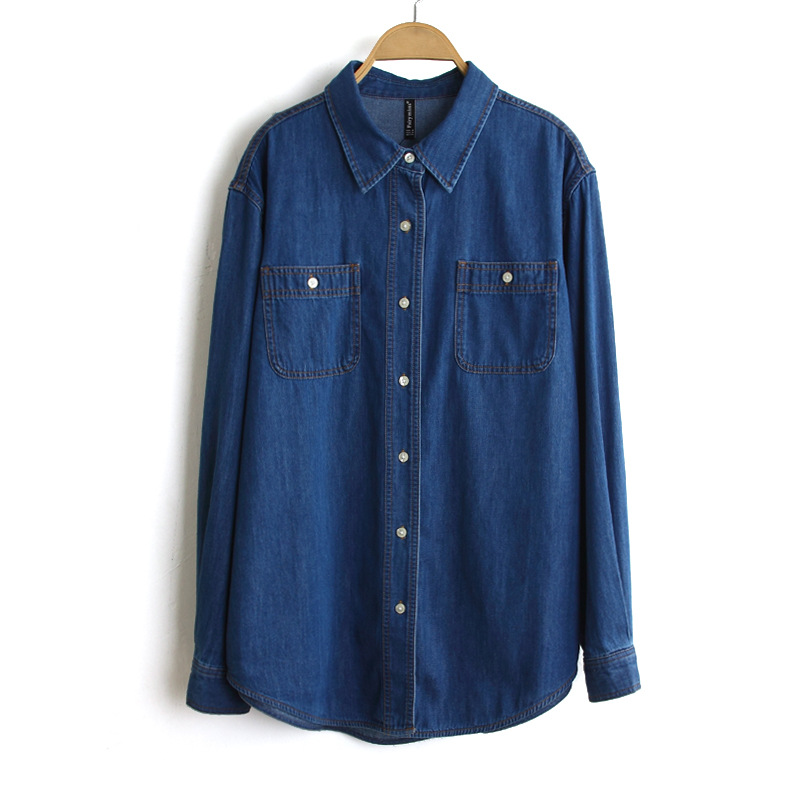 8833 #2024 여름 새로운 느슨한 큰 크기 캐주얼 2 색 데님 셔츠 긴 소매 얇은 셔츠스토어 가기