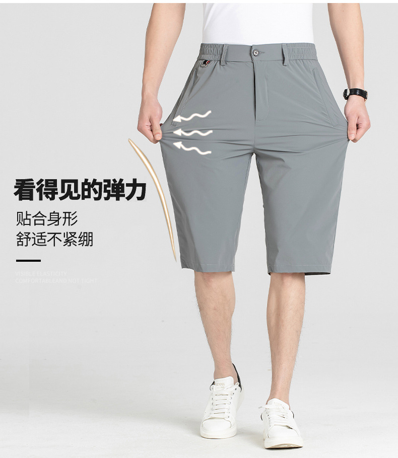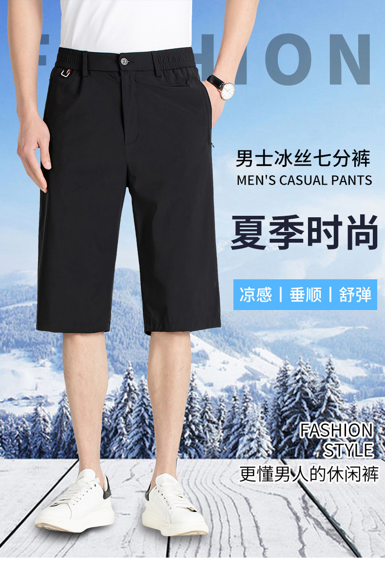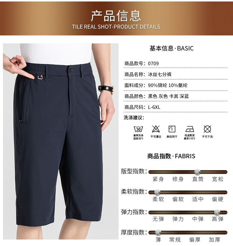 빠른 건조 카프리 바지 남성용 반바지 여름 아이스 실크 얇은 캐주얼 바지 스트레이트 슬림 핏 여름 남성용 솔리드 컬러 카프리 바지스토어 가기