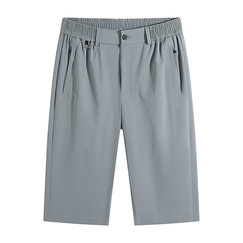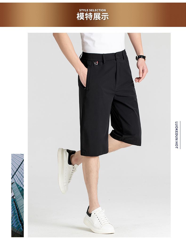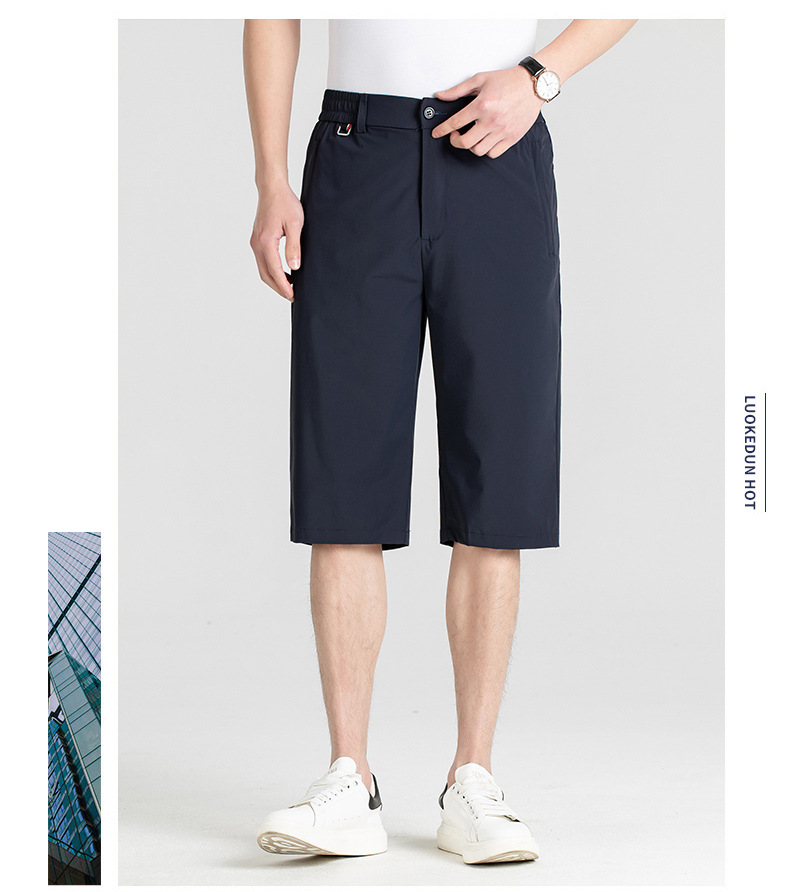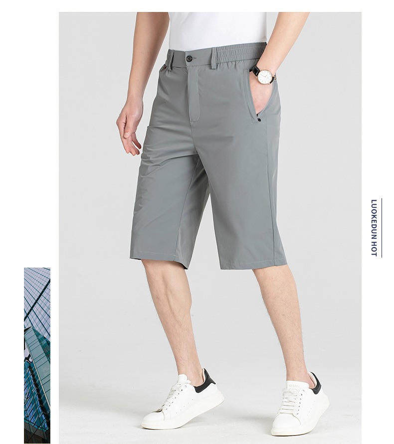 빠른 건조 카프리 바지 남성용 반바지 여름 아이스 실크 얇은 캐주얼 바지 스트레이트 슬림 핏 여름 남성용 솔리드 컬러 카프리 바지