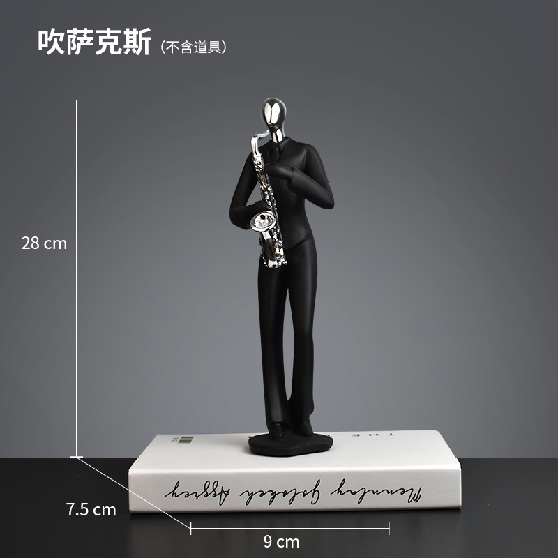 국경을 넘는 검은색 추상 음악 운동가 조각상 레진 장식품 음악실 가정 장식품 추상 예술스토어 가기