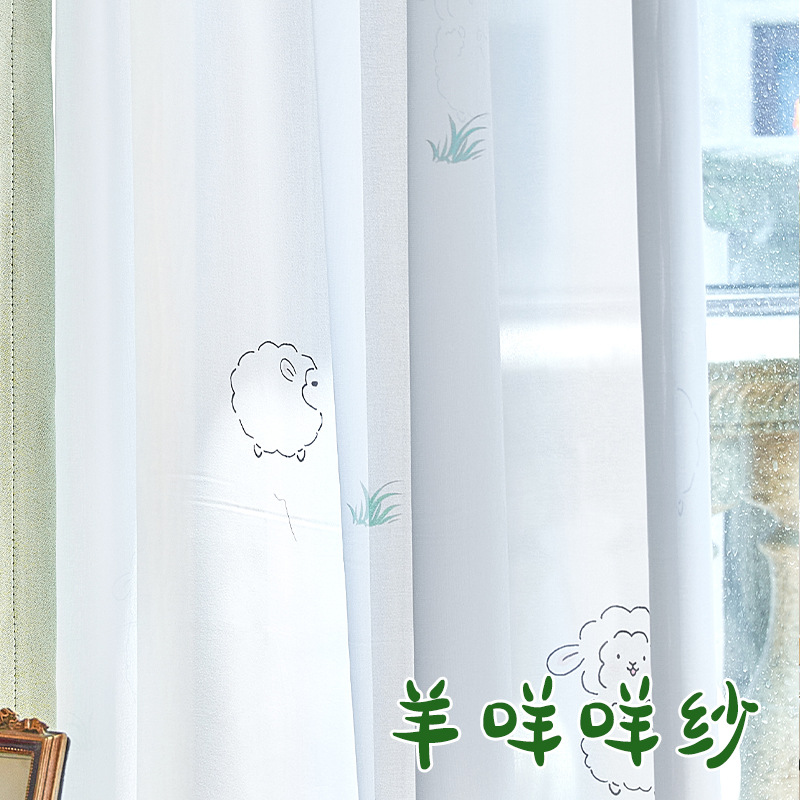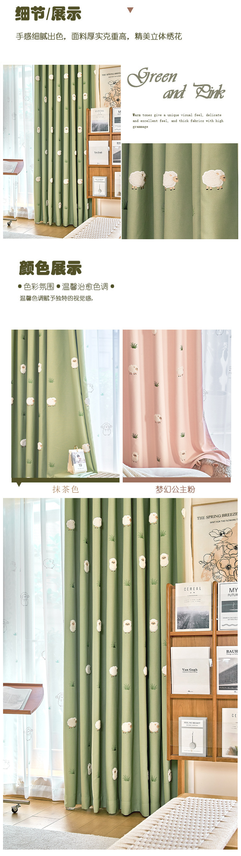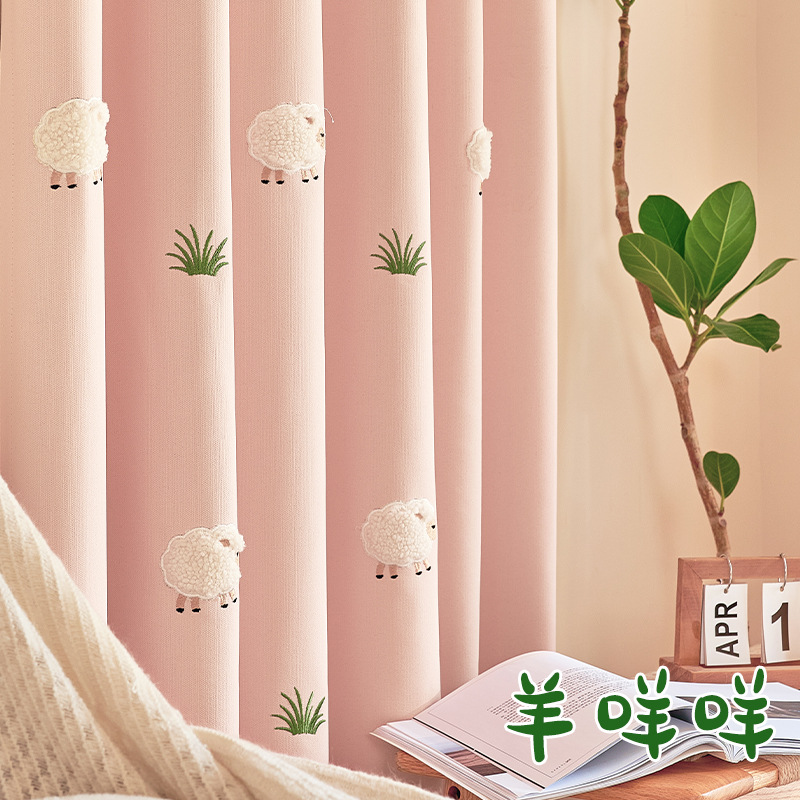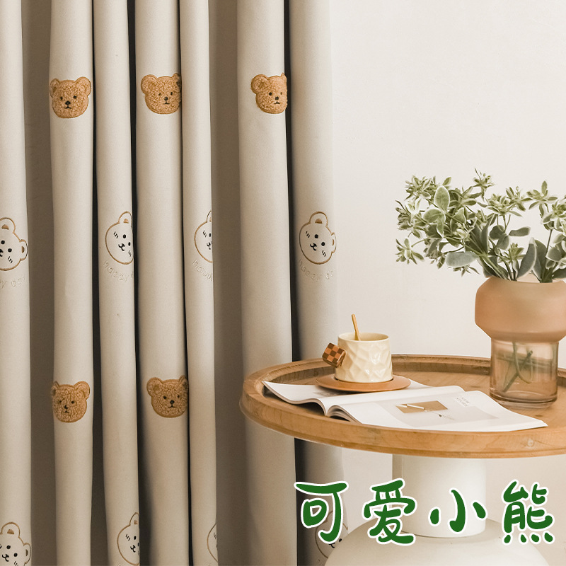 만화 자수 어린이방 커튼 귀엽고 상큼한 소년 소녀 양 아기곰 밀크티 색상 말차 색상 침실스토어 가기