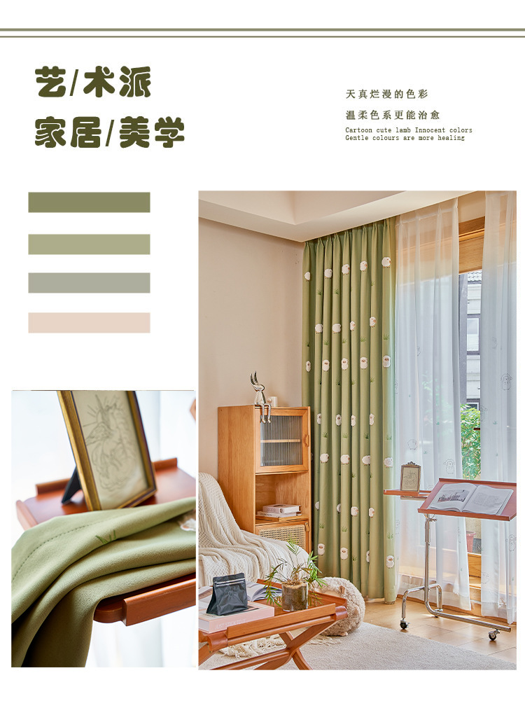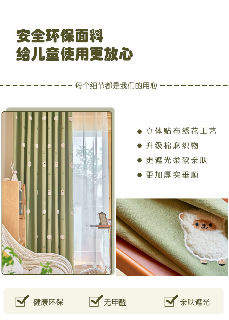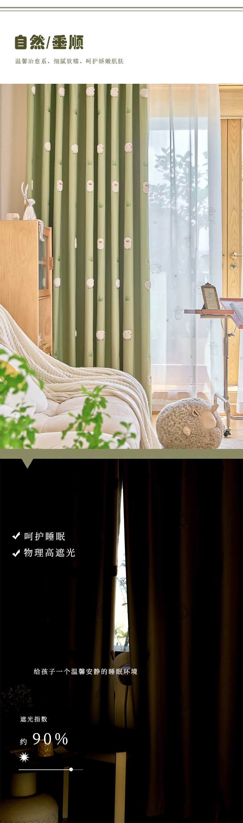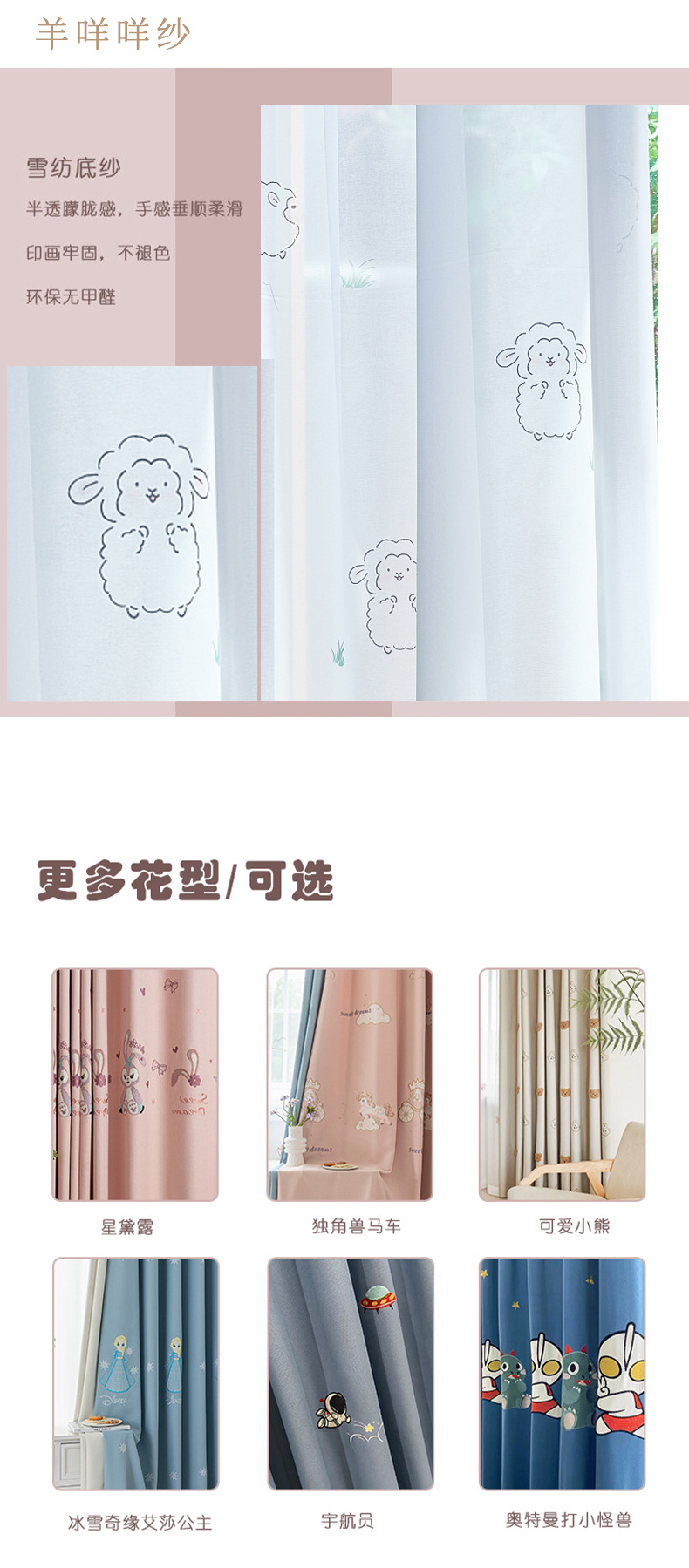 만화 자수 어린이방 커튼 귀엽고 상큼한 소년 소녀 양 아기곰 밀크티 색상 말차 색상 침실스토어 가기