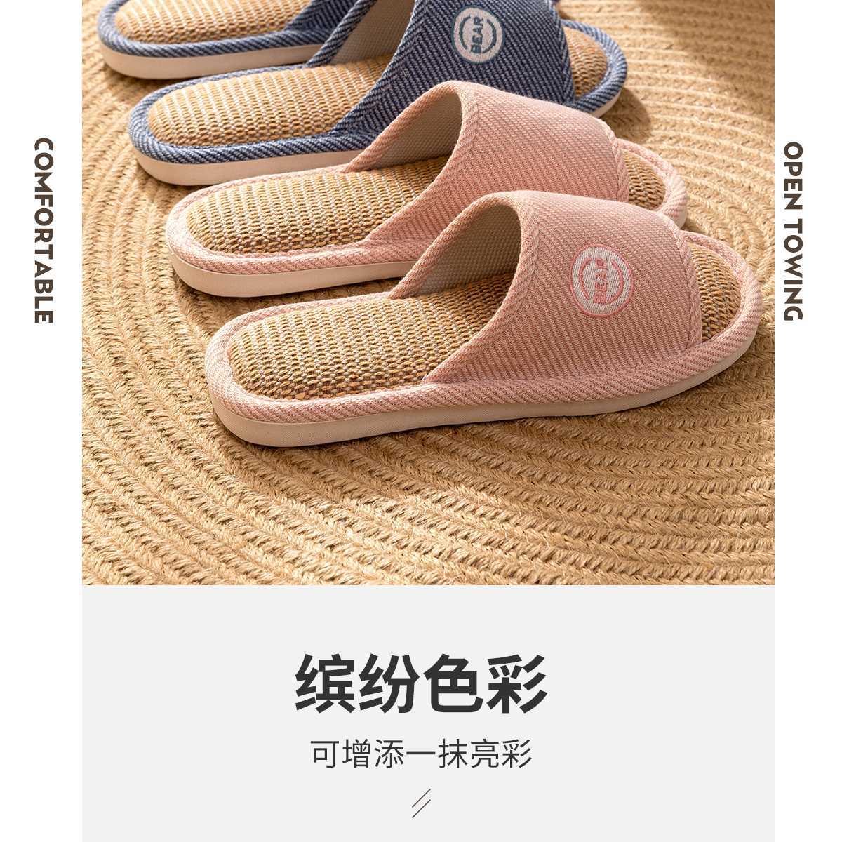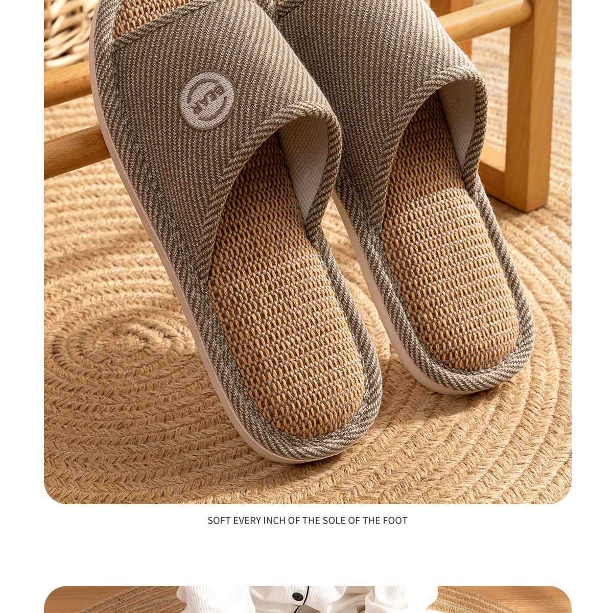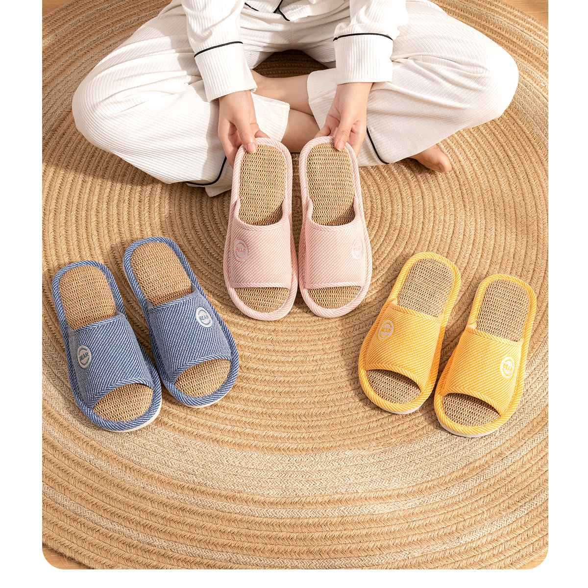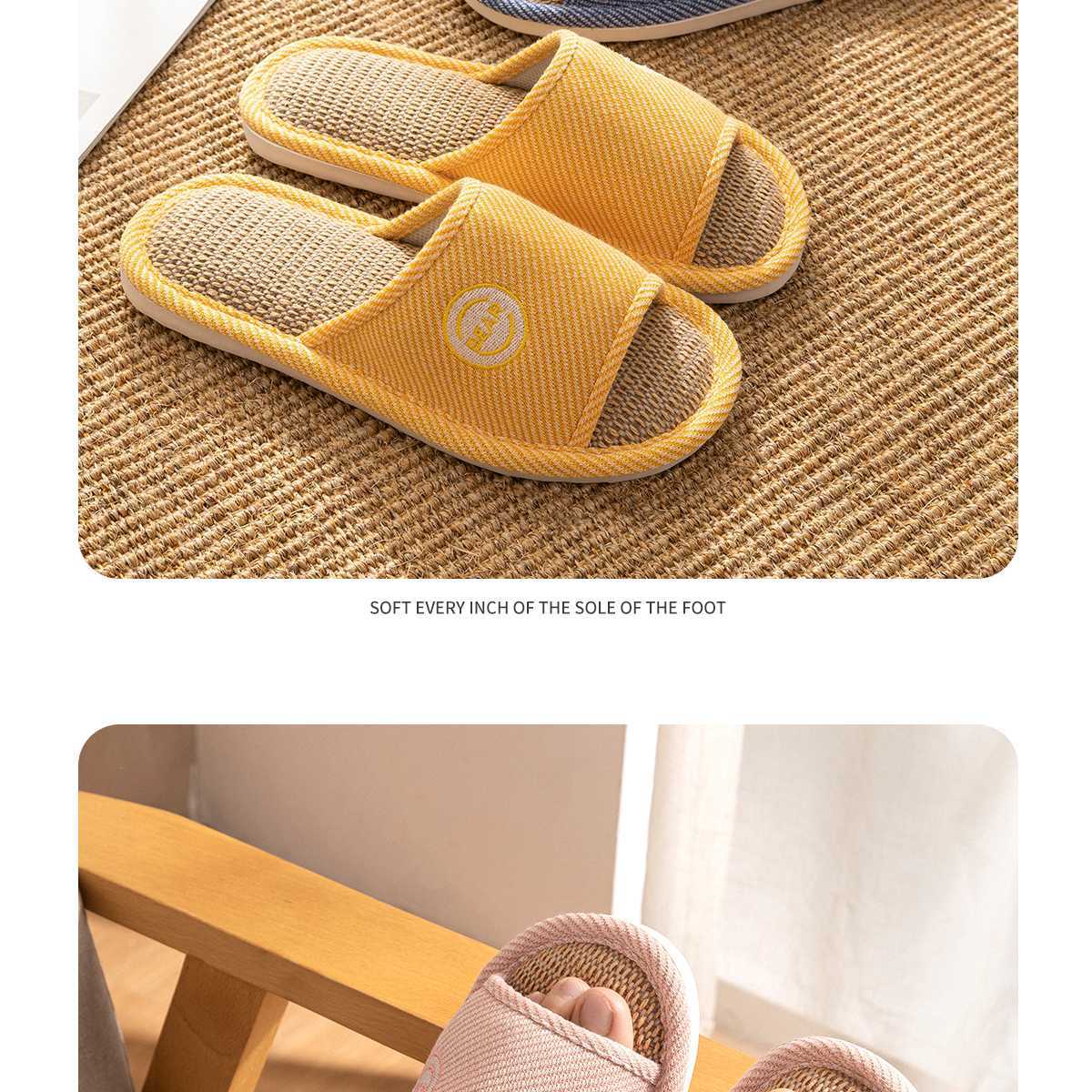 2024 리넨 슬리퍼 여성 여름 실내 홈 사계절 가정용 조용한 땀-비 슬립 봄과 가을 코튼 리넨 슬리퍼스토어 가기