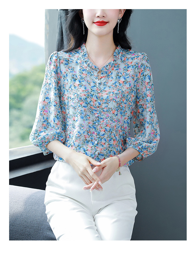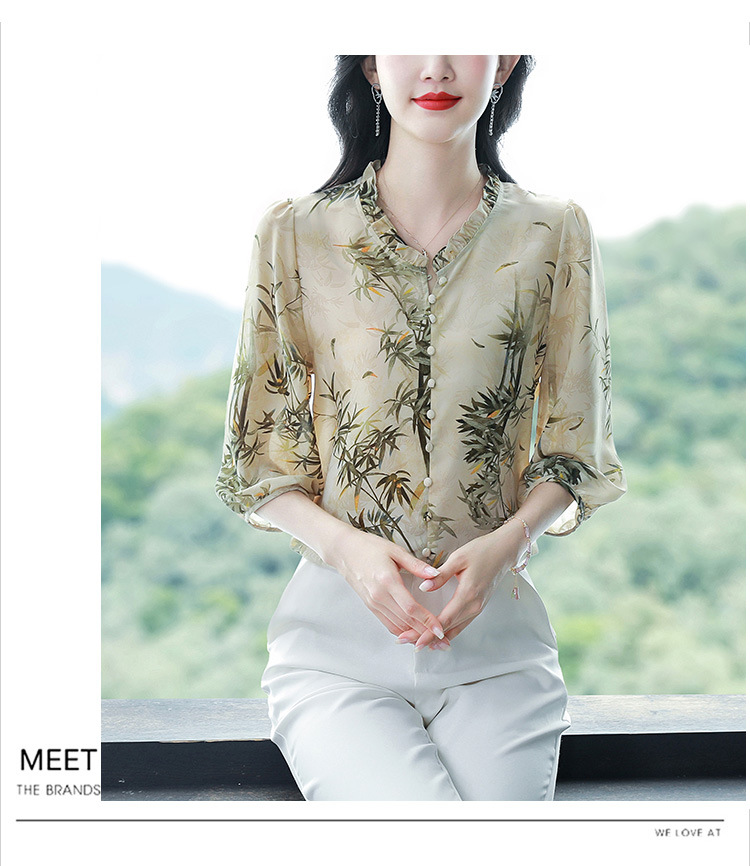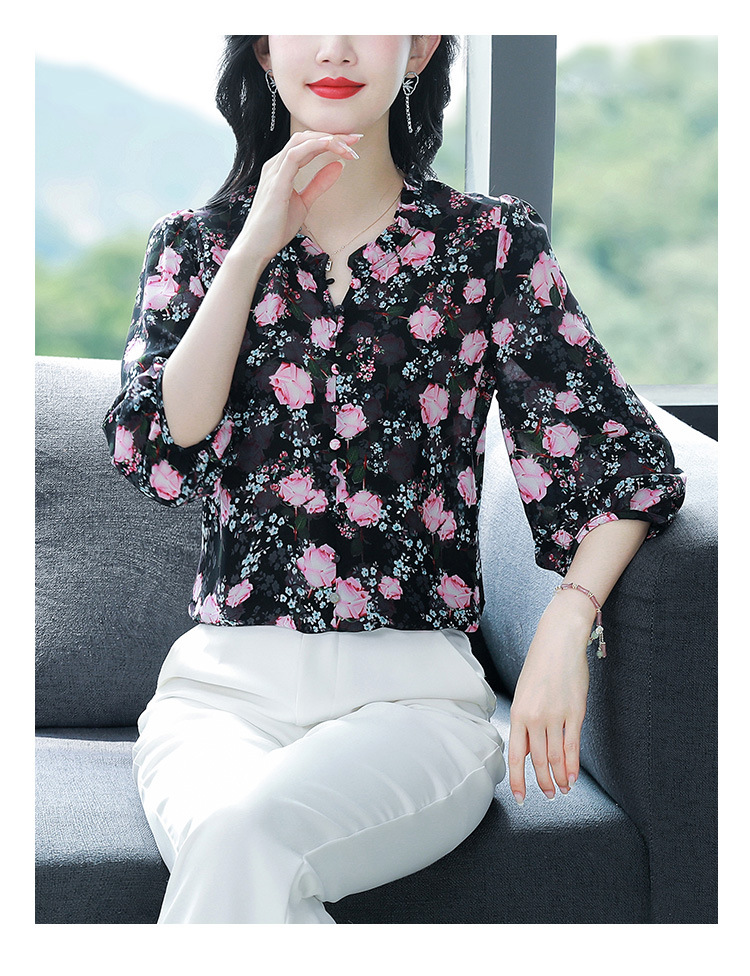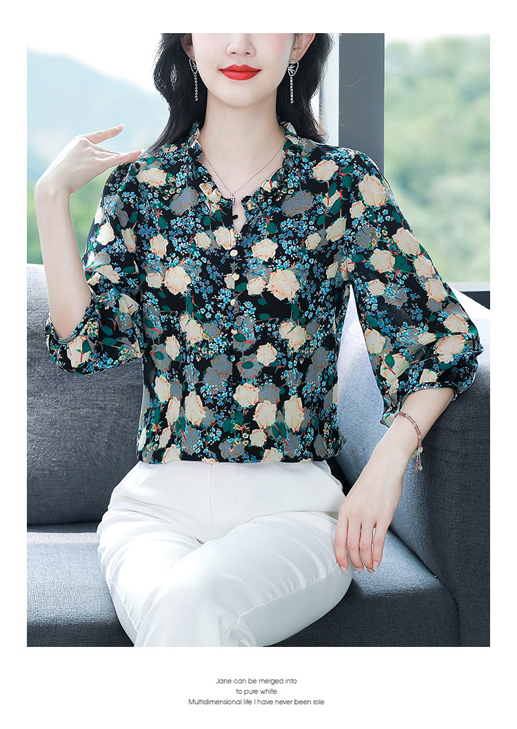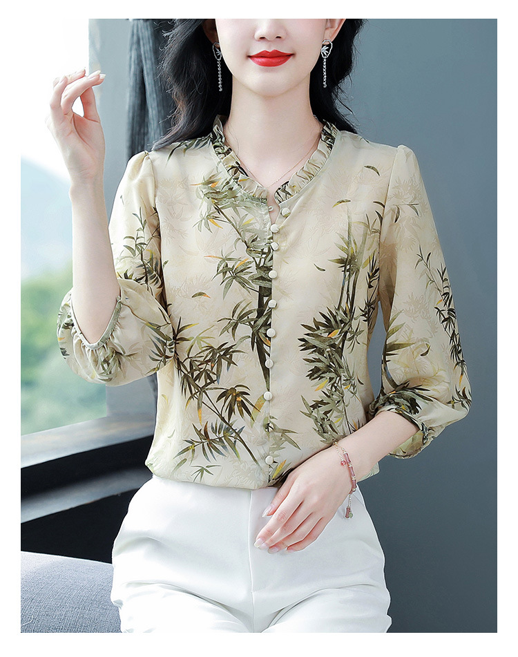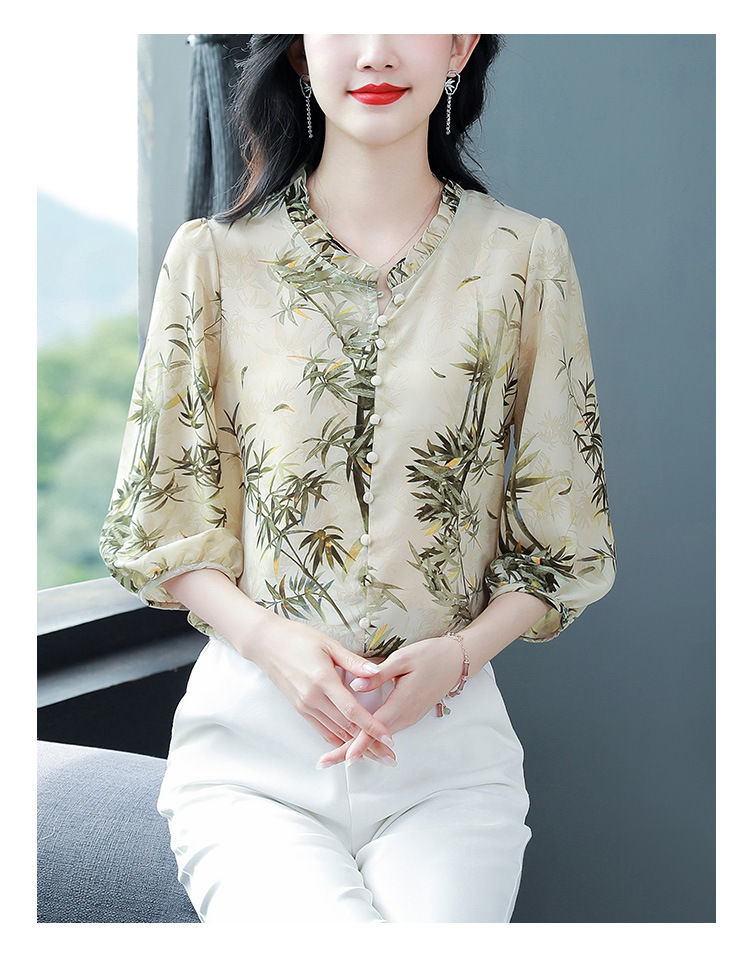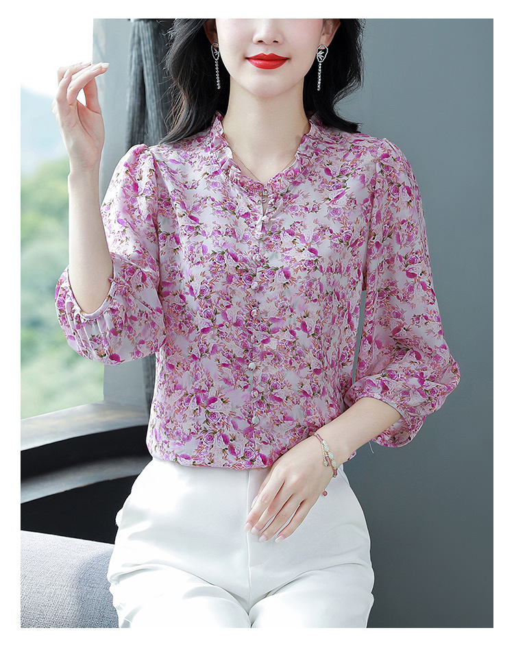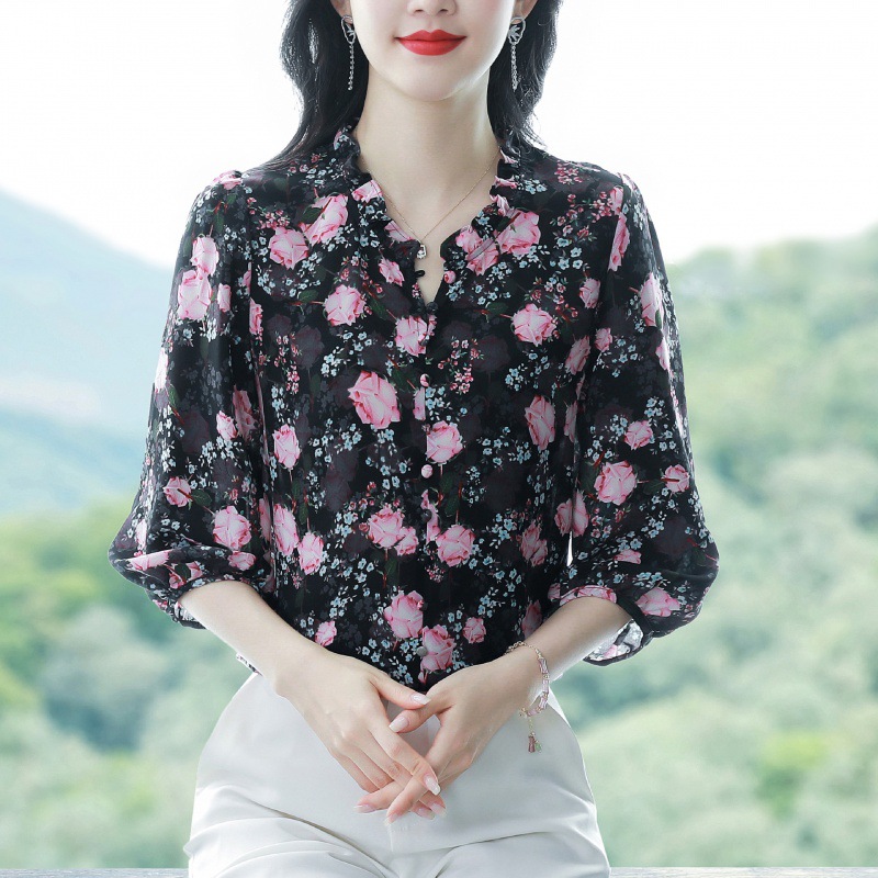 리얼 샷 쉬폰 셔츠 뉴 레트로 홍콩 스타일 우아한 뽕나무 실크 탑 여자 올매치 루즈 벨리 커버 셔츠