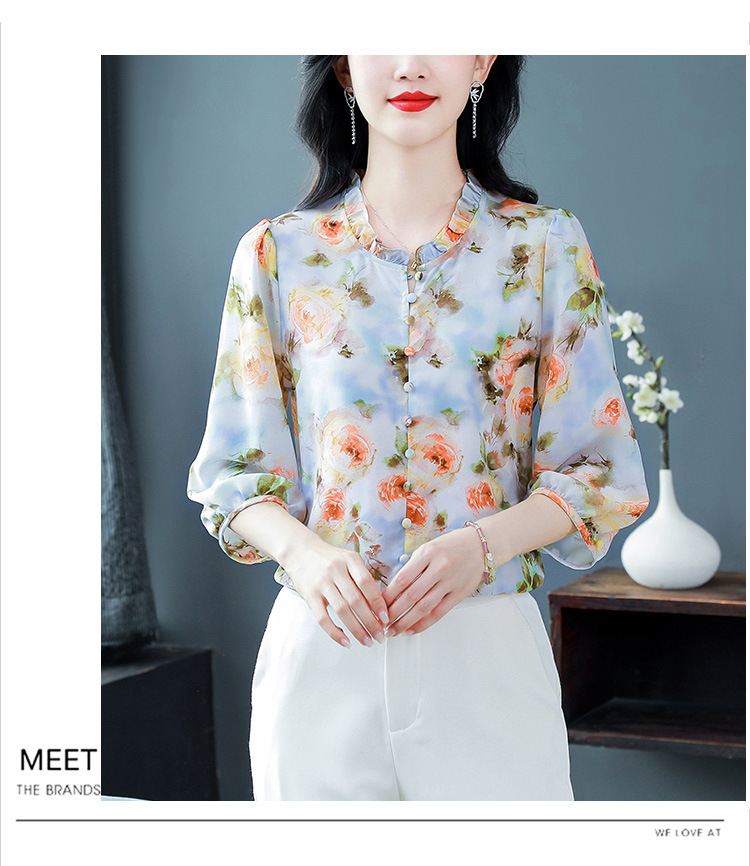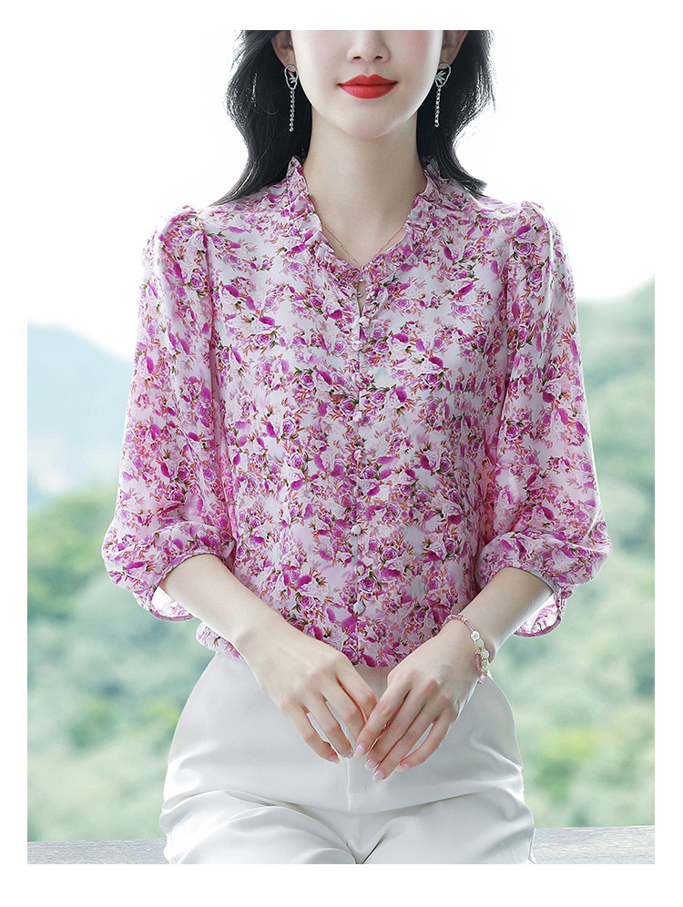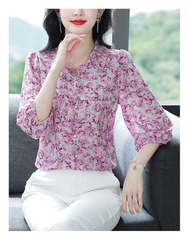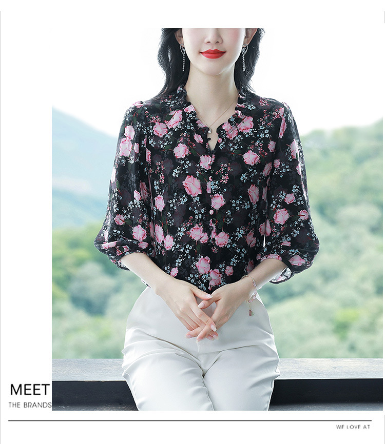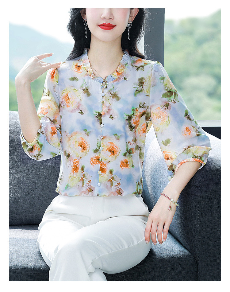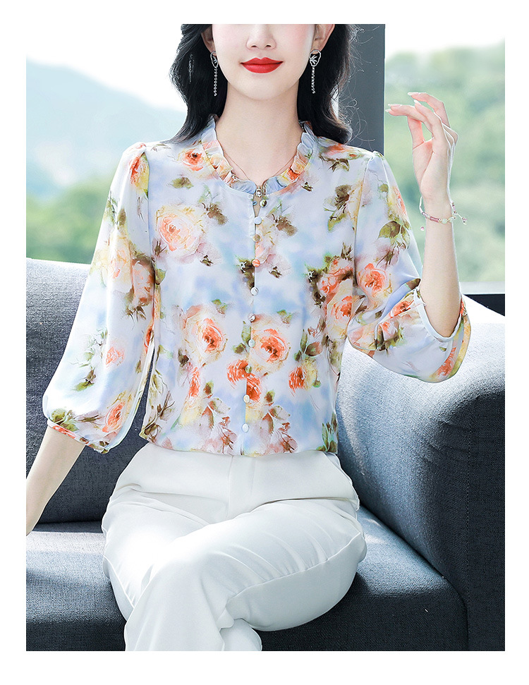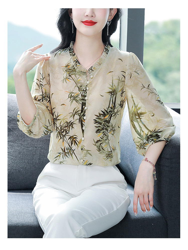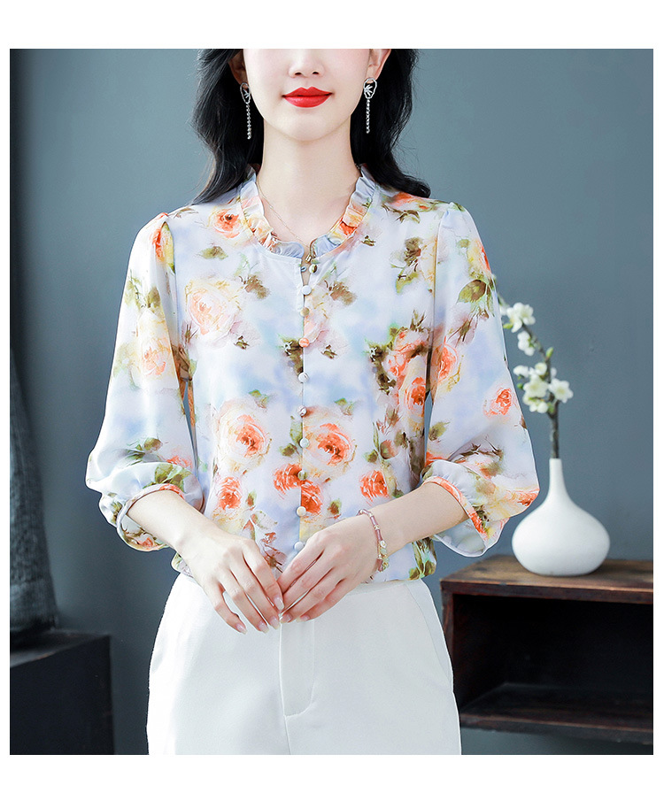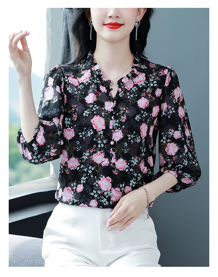 리얼 샷 쉬폰 셔츠 뉴 레트로 홍콩 스타일 우아한 뽕나무 실크 탑 여자 올매치 루즈 벨리 커버 셔츠