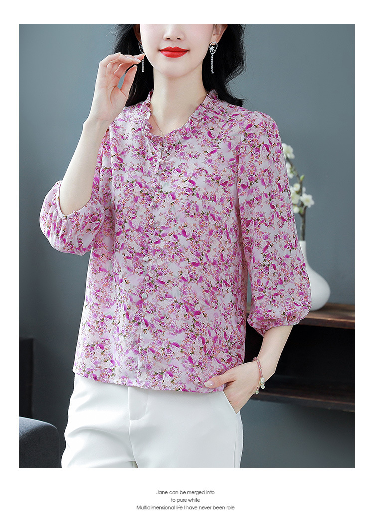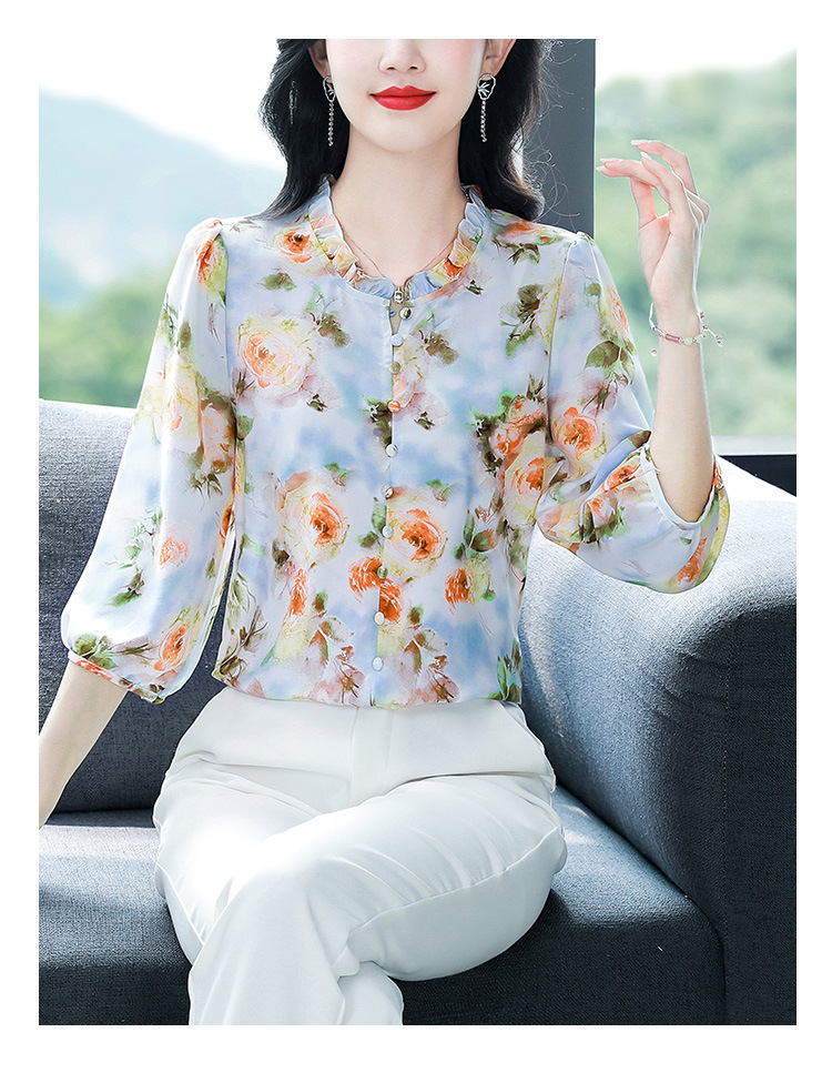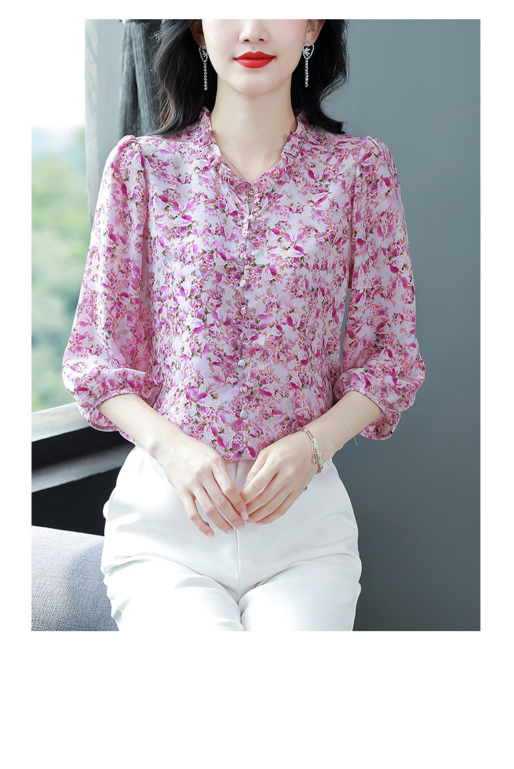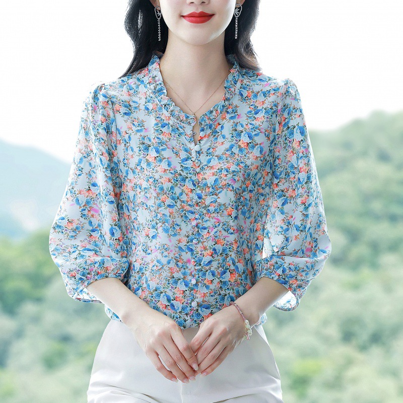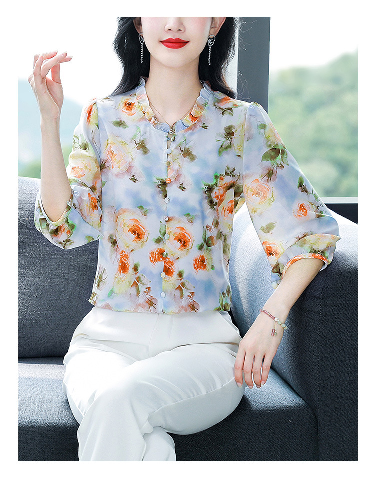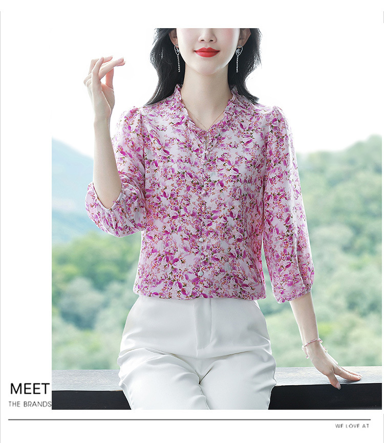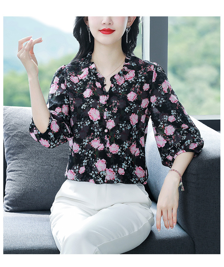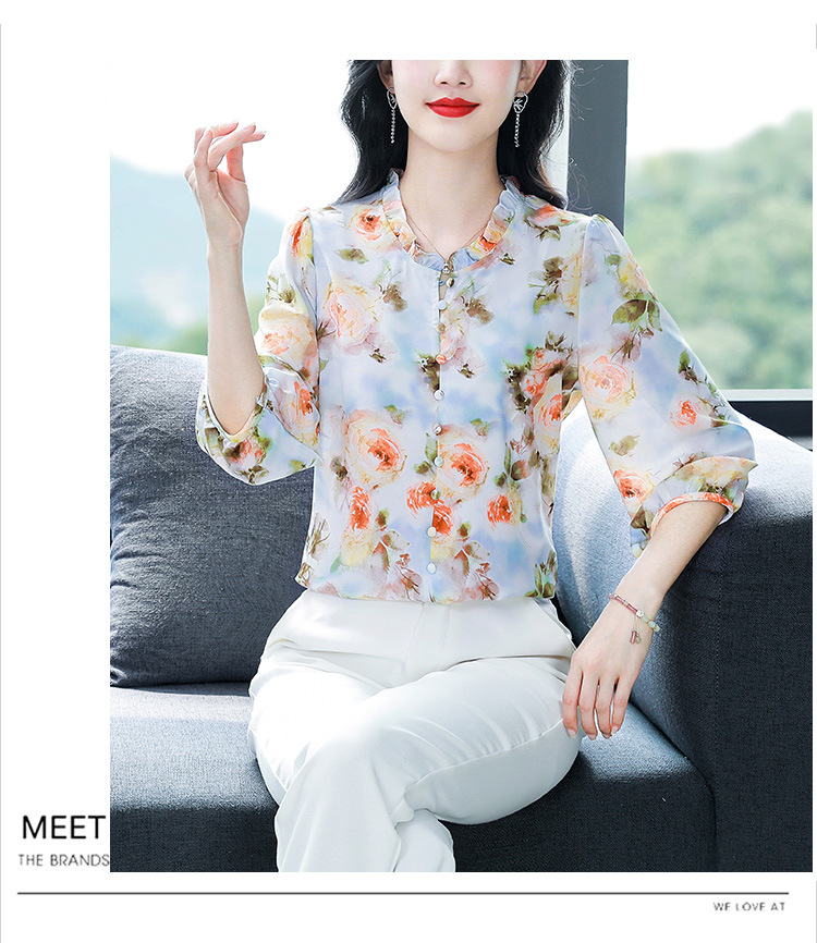 리얼 샷 쉬폰 셔츠 뉴 레트로 홍콩 스타일 우아한 뽕나무 실크 탑 여자 올매치 루즈 벨리 커버 셔츠
