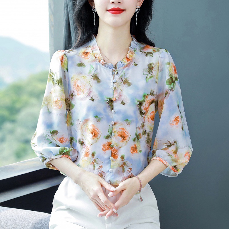 리얼 샷 쉬폰 셔츠 뉴 레트로 홍콩 스타일 우아한 뽕나무 실크 탑 여자 올매치 루즈 벨리 커버 셔츠스토어 가기