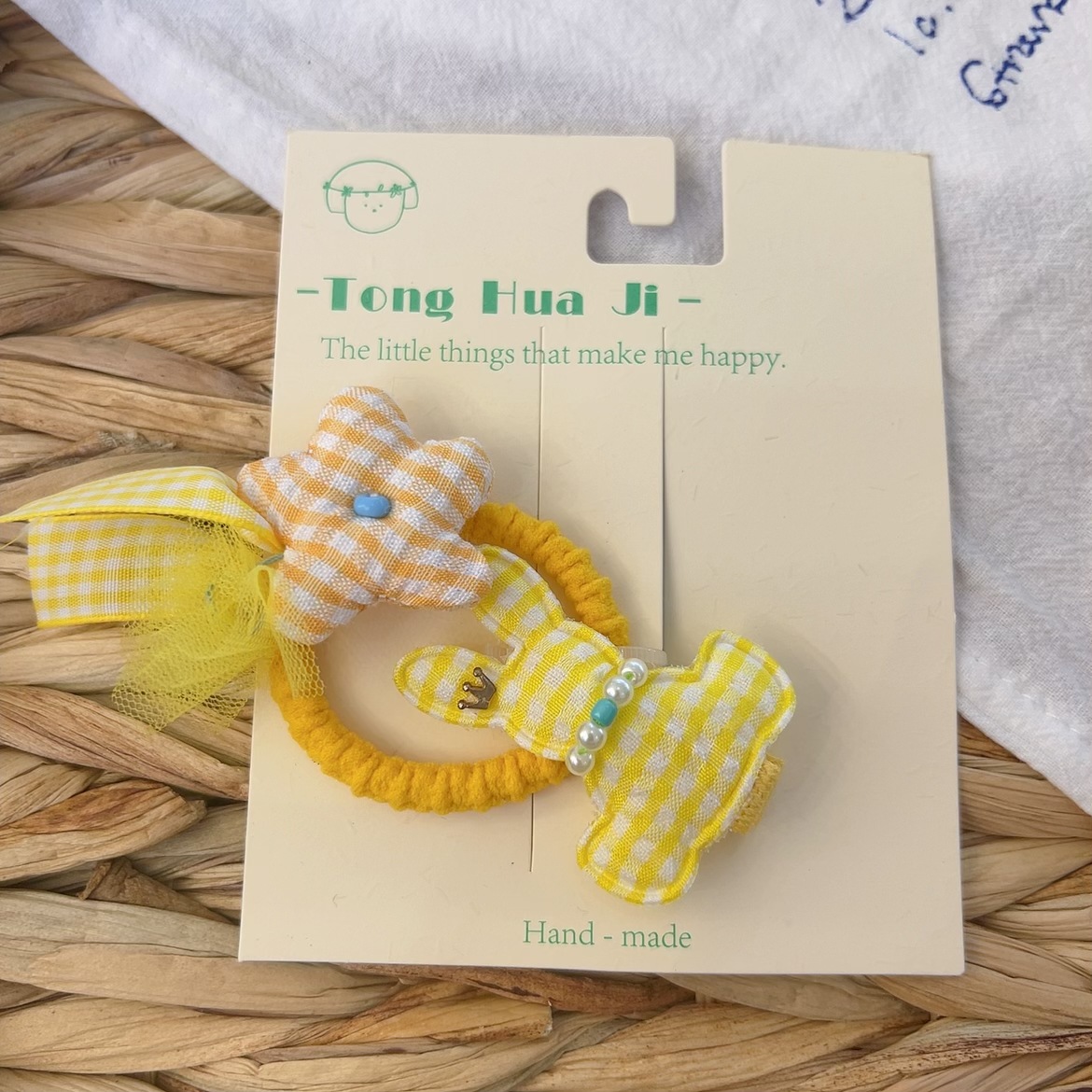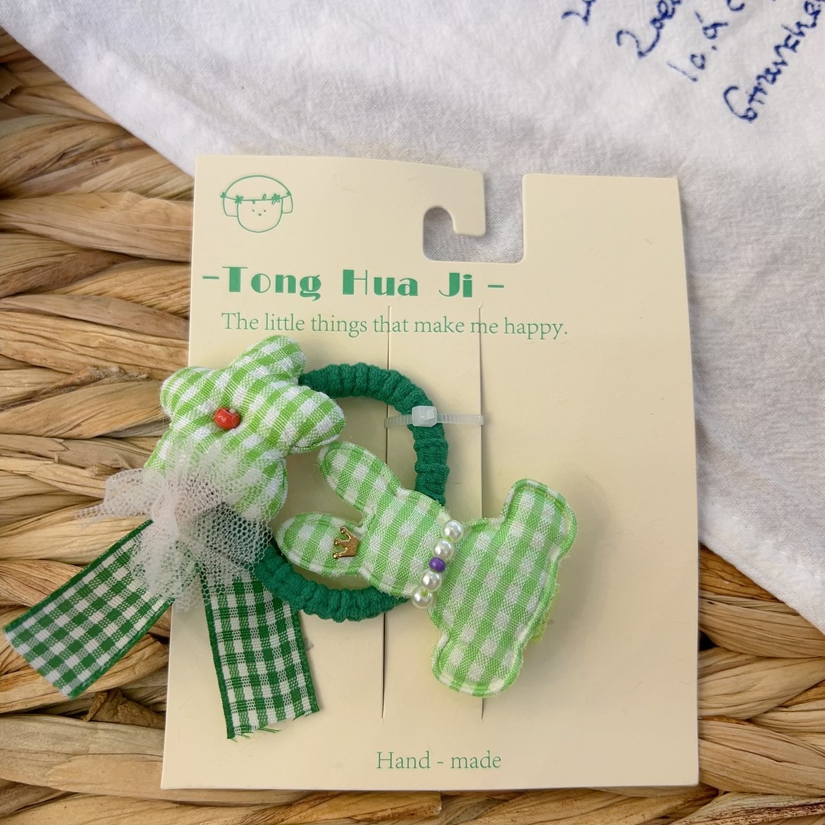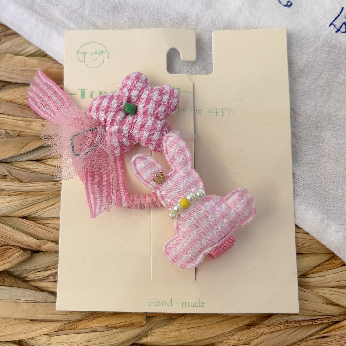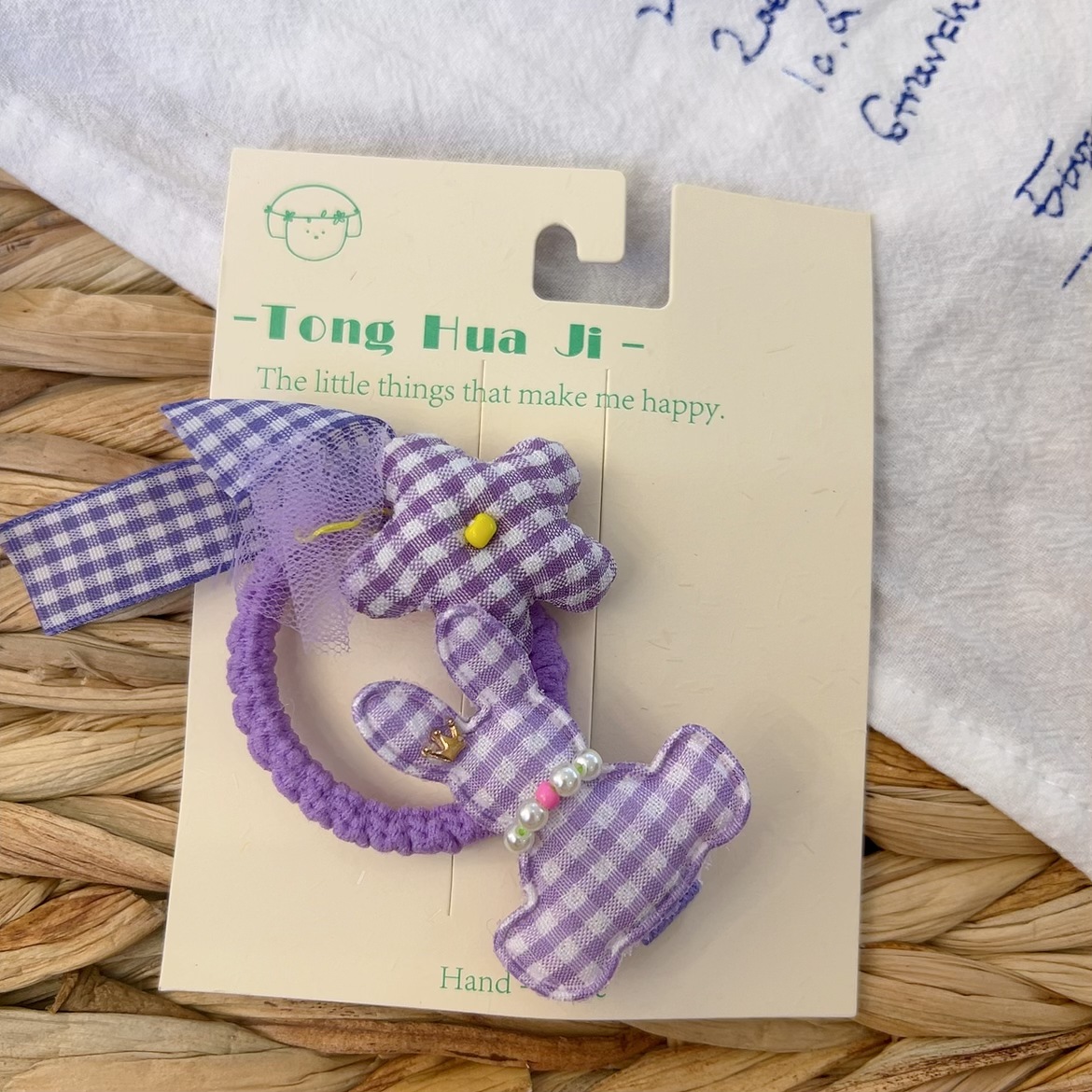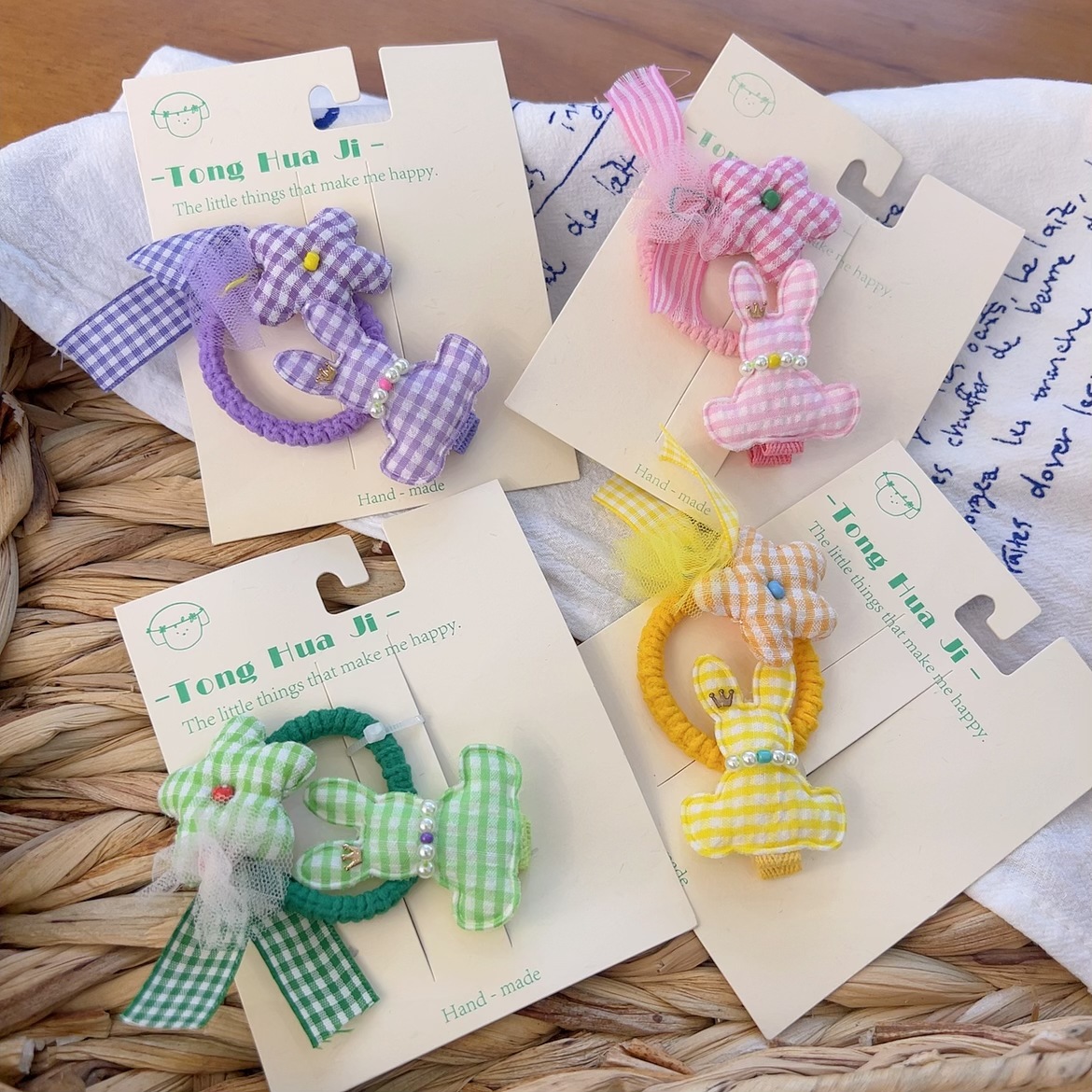 새로운 한국 스타일 달콤한 만화 토끼 격자 무늬 원단 헤어 로프 공주 스타일 레이스 활 헤어 액세서리