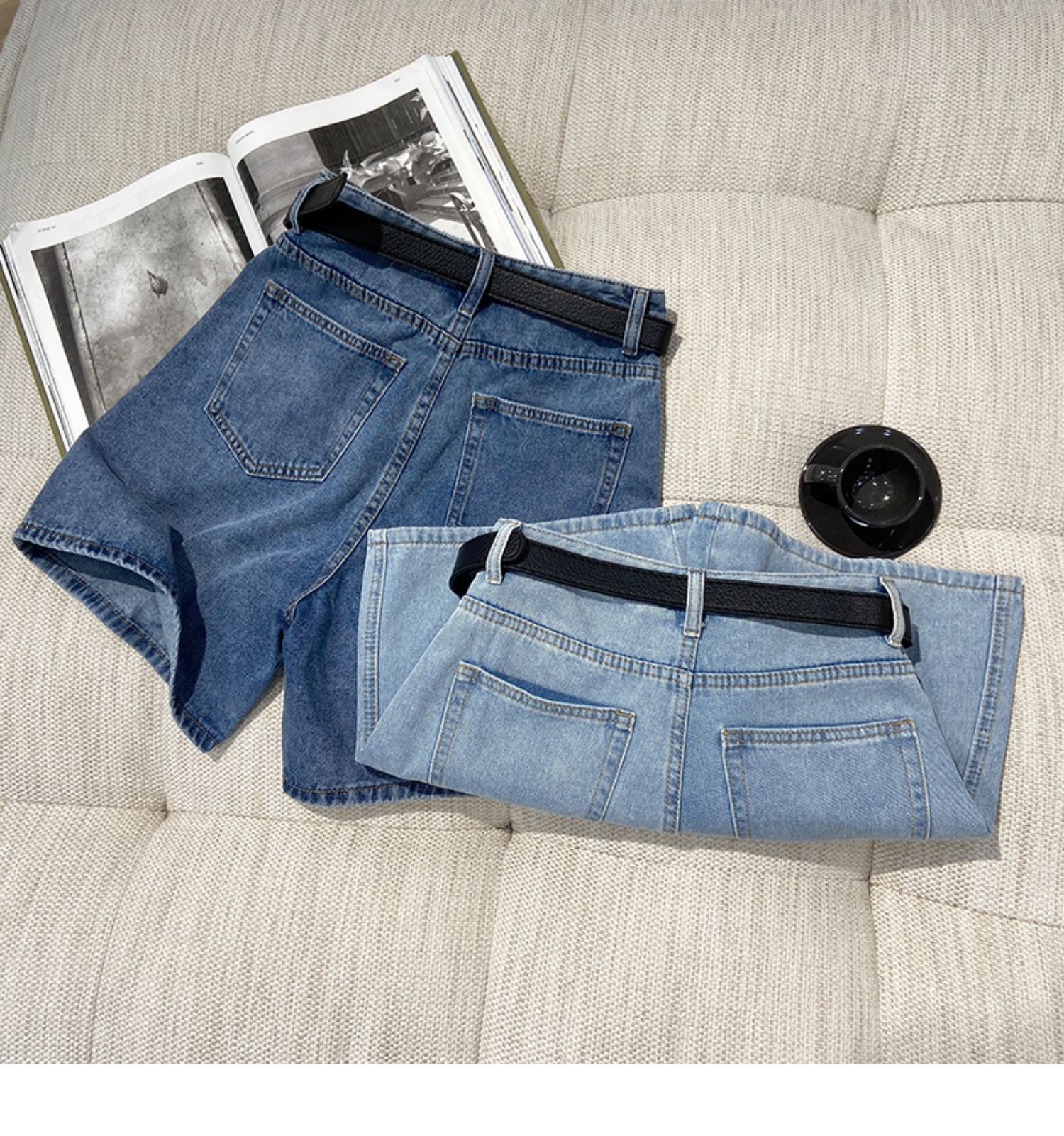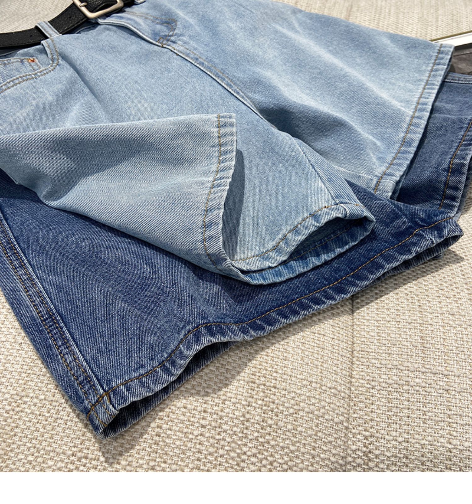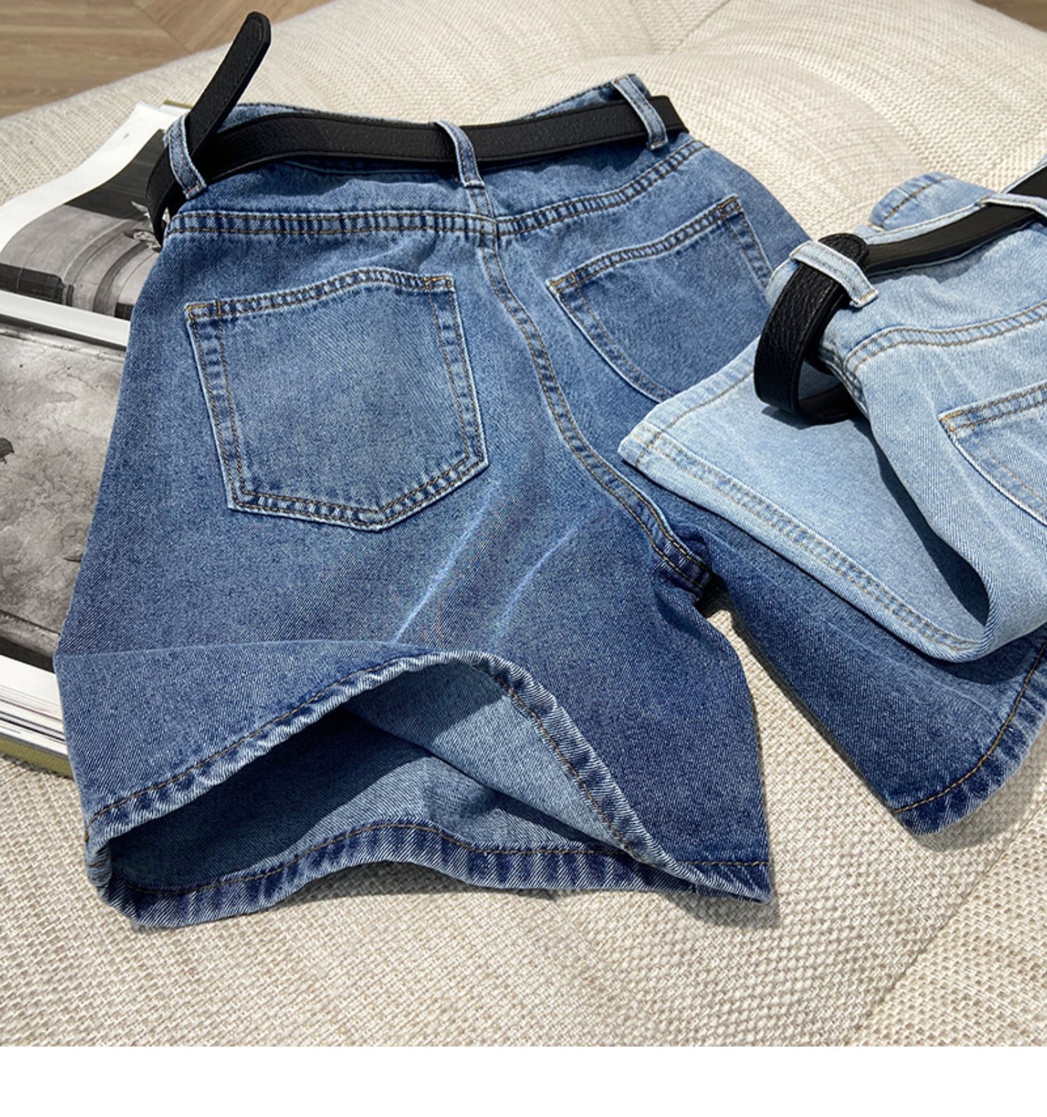 여성용 5점 데님 반바지 여름 얇은 신상 하이웨이스트 슬림 스트레이트 홍콩 스타일 트렌드 와이드 원피스 대외 무역