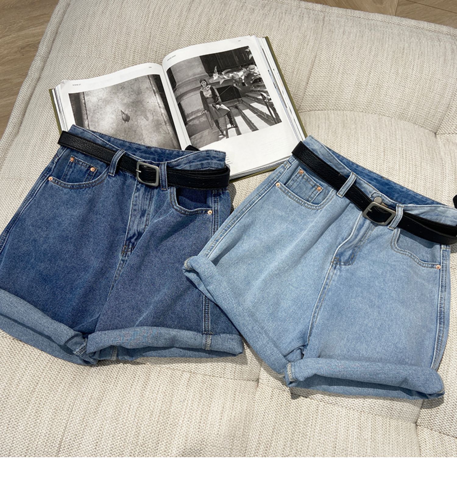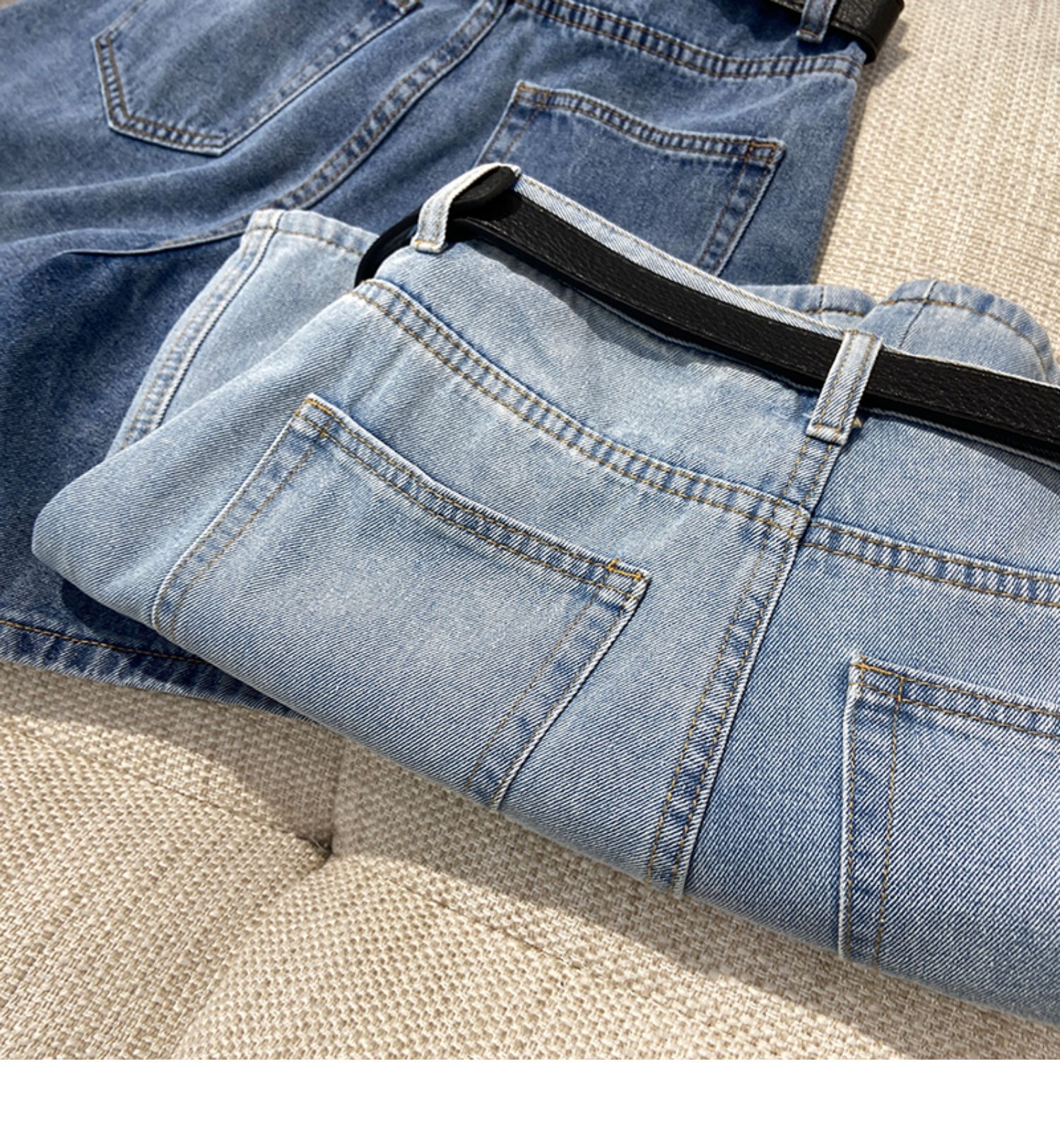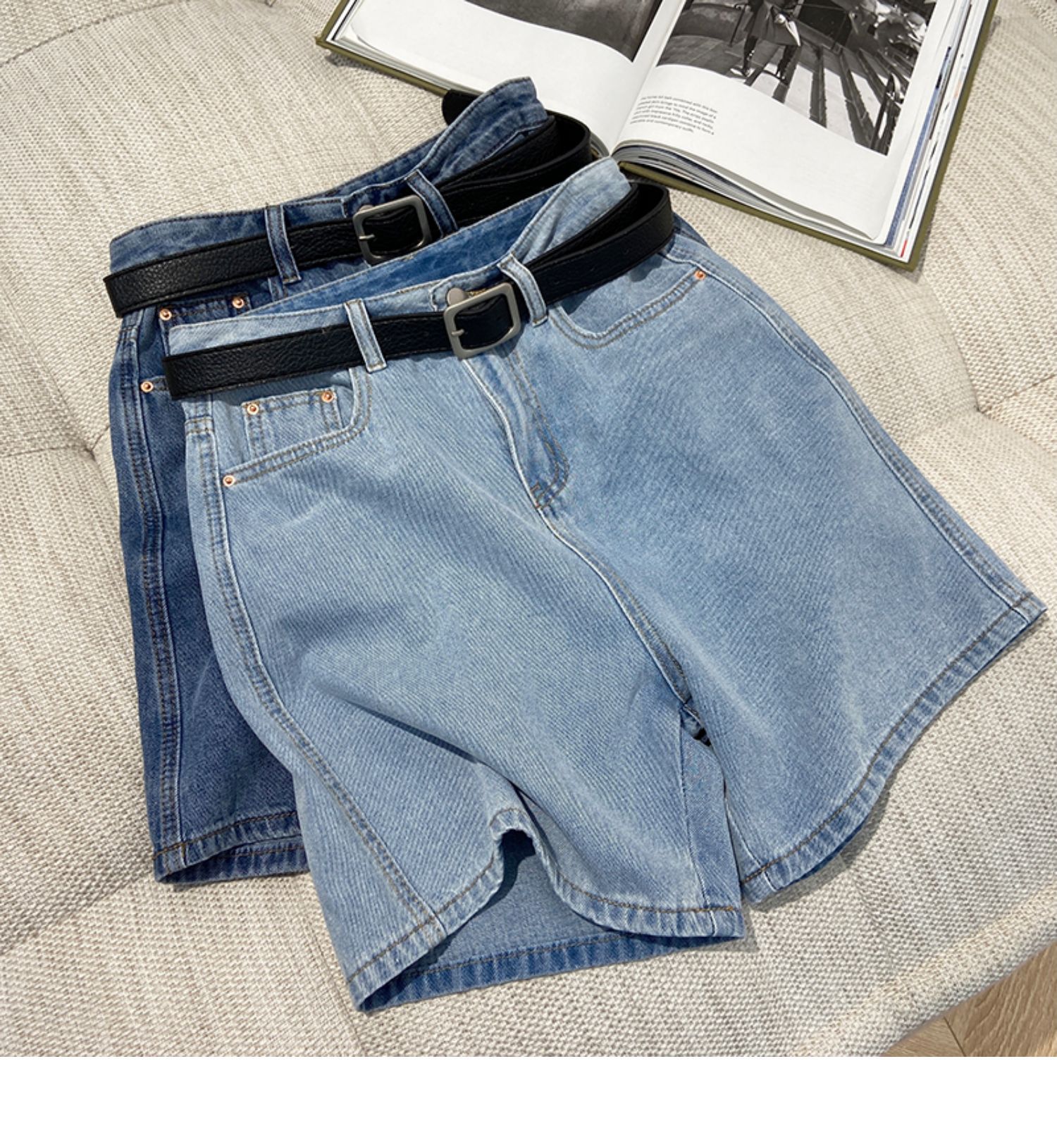 여성용 5점 데님 반바지 여름 얇은 신상 하이웨이스트 슬림 스트레이트 홍콩 스타일 트렌드 와이드 원피스 대외 무역