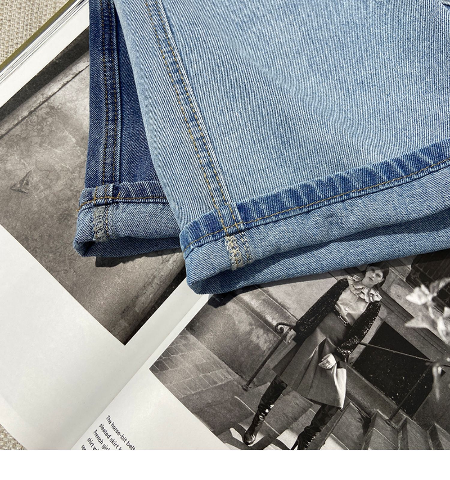 여성용 5점 데님 반바지 여름 얇은 신상 하이웨이스트 슬림 스트레이트 홍콩 스타일 트렌드 와이드 원피스 대외 무역스토어 가기