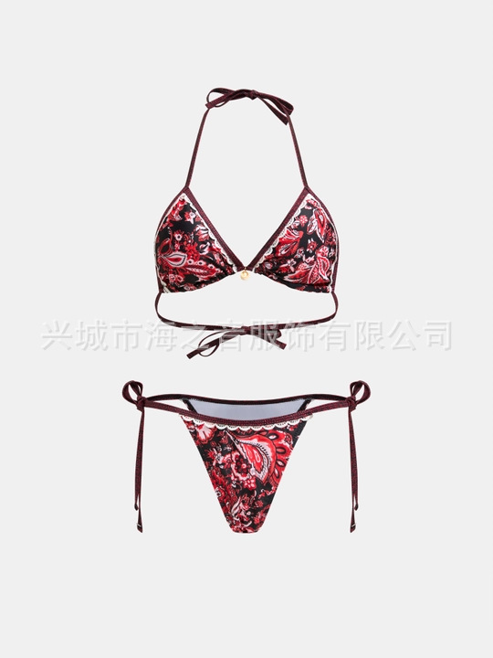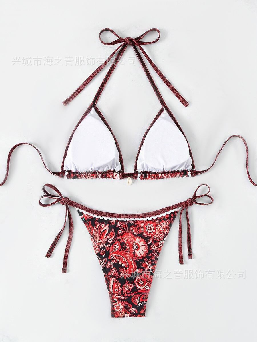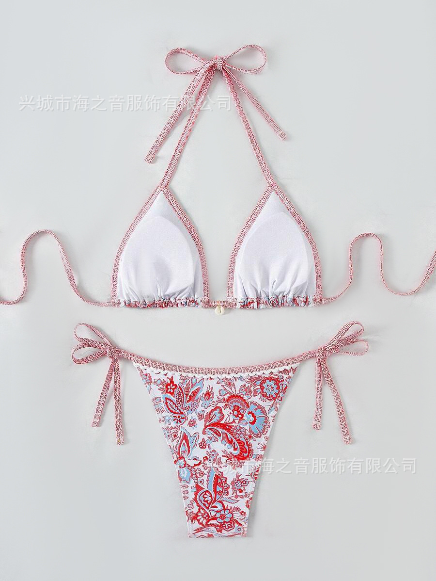 2024 새로운 도착 인쇄 품질 비키니 비키니 유럽과 미국의 스트랩 분할 세트 수영복 여성 비키니 수영복