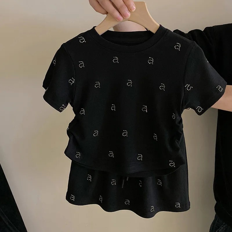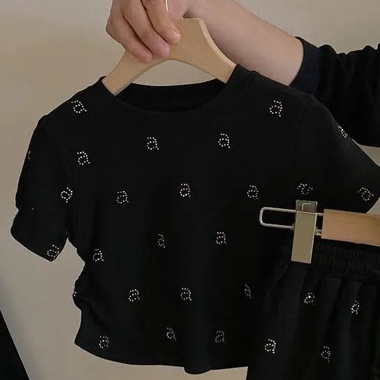 2024 년 새 여아 여름 세트 소녀 반팔 어린이 한국식 투피스 아기 유행 옷스토어 가기