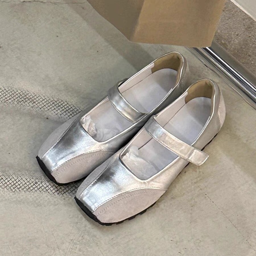 양가죽 버전 ~ 정품 가죽 실버 화이트 메리 제인 신발 여성 두꺼운 밑창 여성 캐주얼 운동화 도덕적 훈련 신발