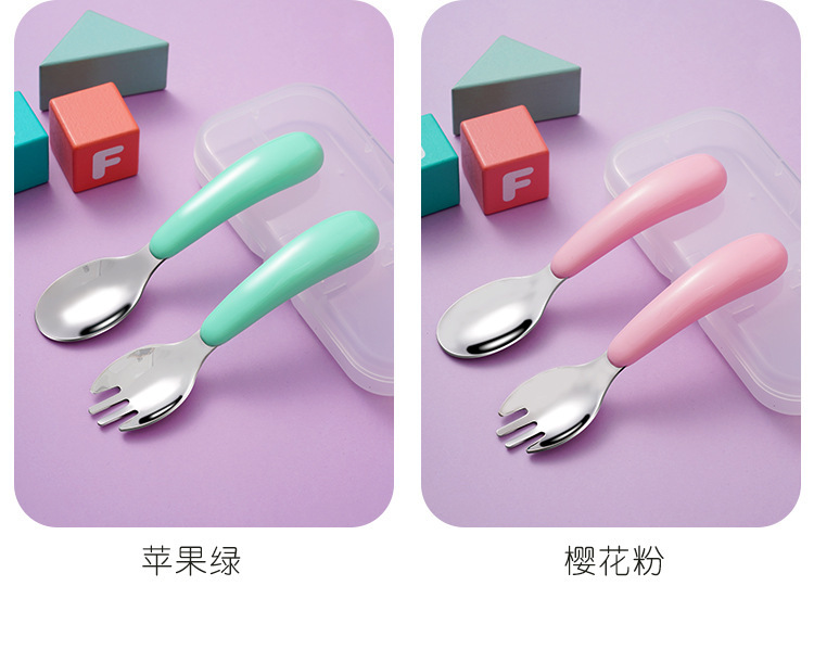 304 스테인레스 스틸 어린이 숟가락 만화 숟가락 포크 조합 세트 휴대용 식기 아기 학습 훈련 숟가락 포크스토어 가기