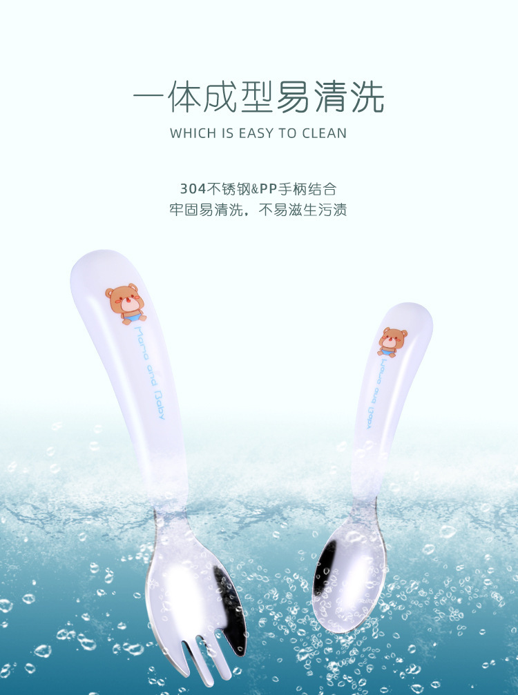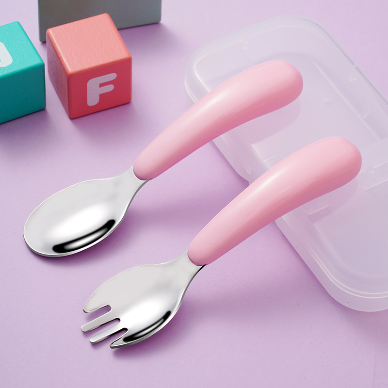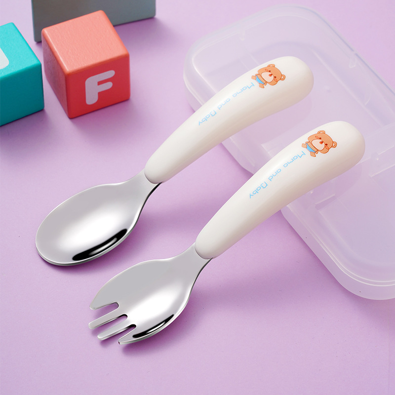 304 스테인레스 스틸 어린이 숟가락 만화 숟가락 포크 조합 세트 휴대용 식기 아기 학습 훈련 숟가락 포크