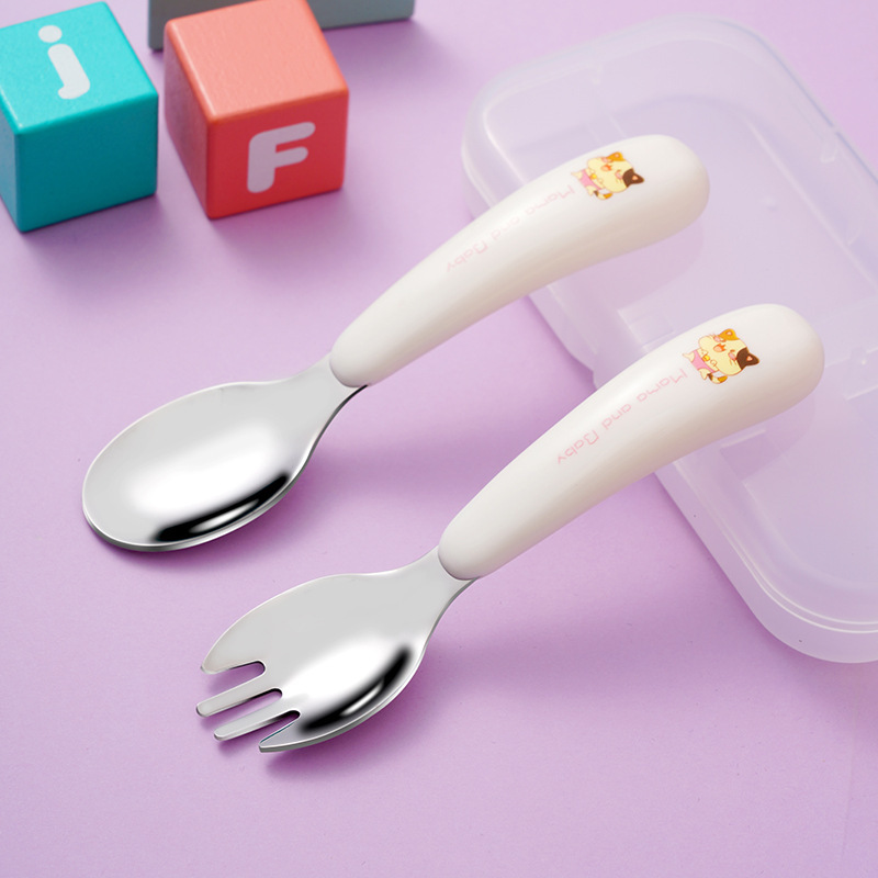• 304 스푼/포크 세트 (흰색 곰돌이) - 케이스 포장