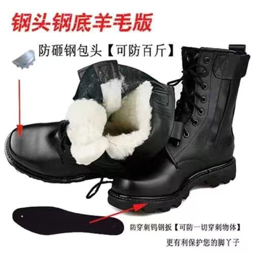 가죽 부츠 남성 야외 작업 부츠 울 스틸 발가락 스틸 단독 기모 따뜻한 힙 부츠 등산 신발 보안 코튼 신발
