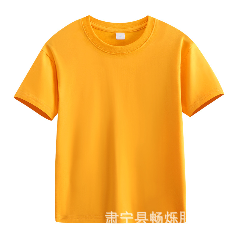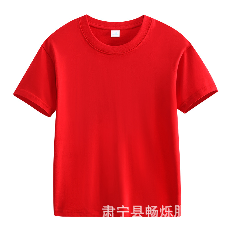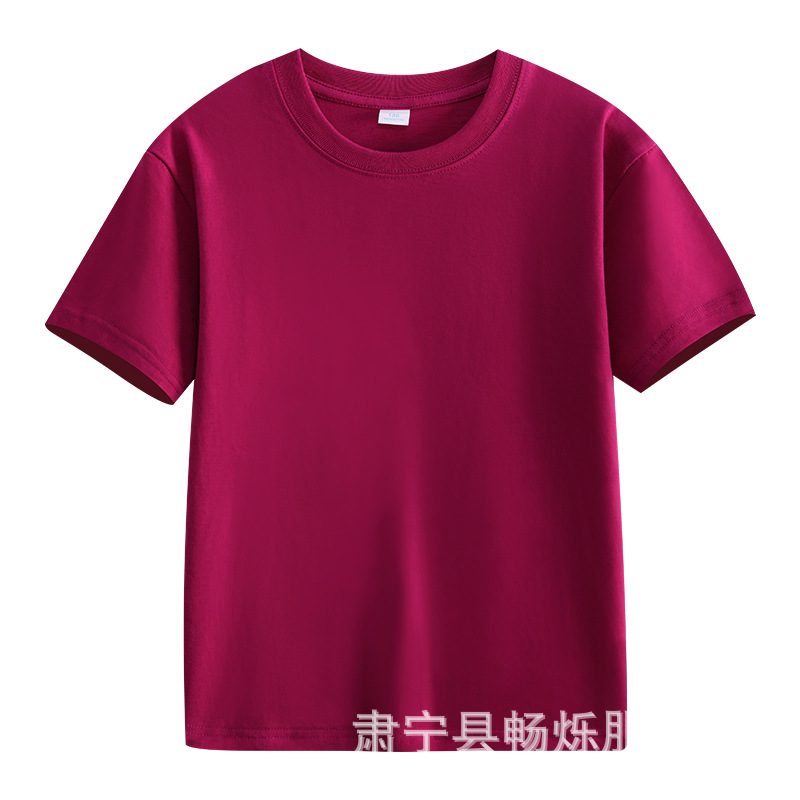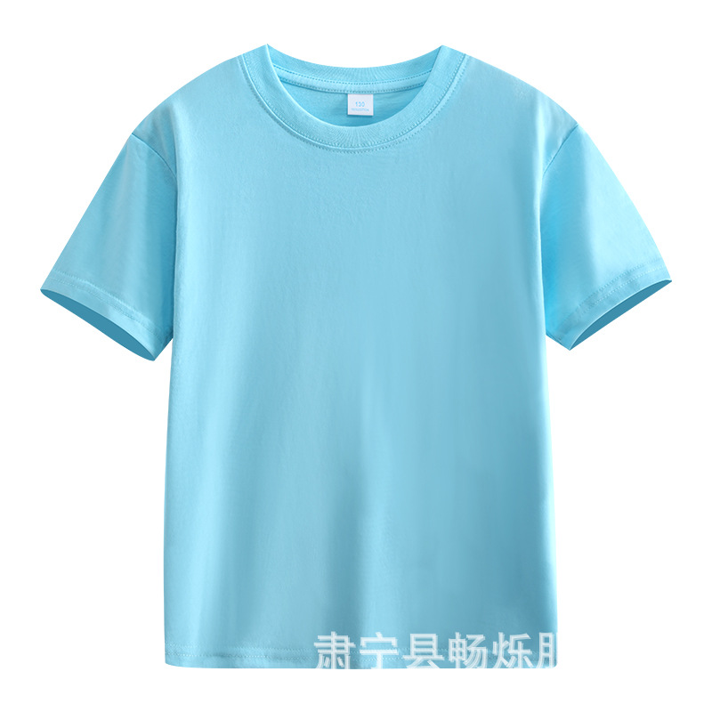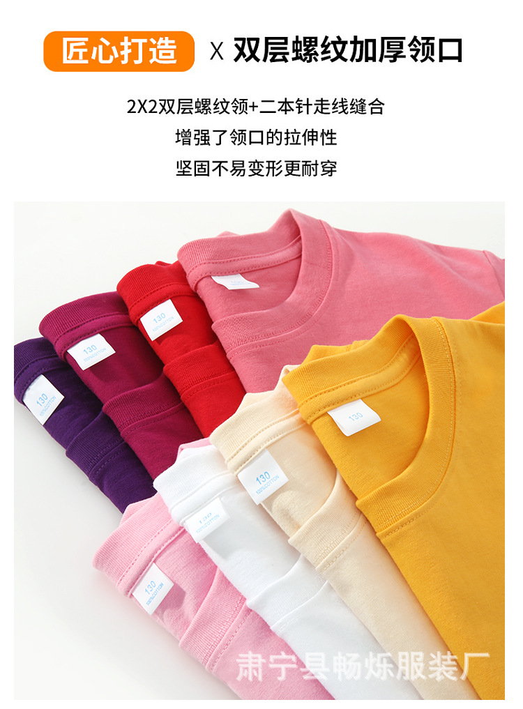 180g 면화 어린이 반팔 소년 소녀 단색 티셔츠 재킷 유치원 수업 옷 활동 옷 맞춤 인쇄 로고스토어 가기