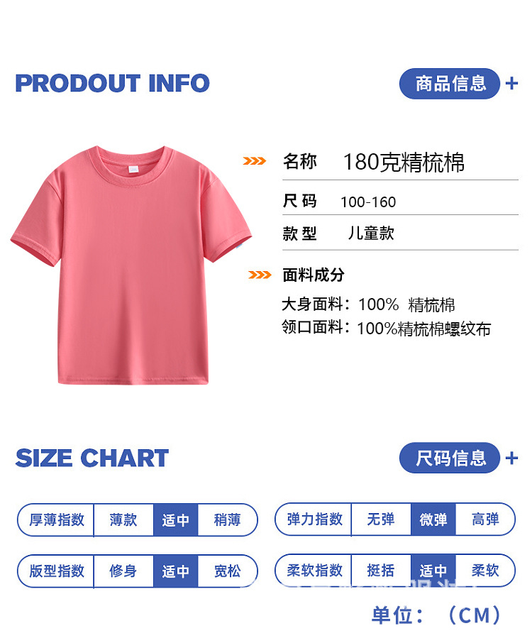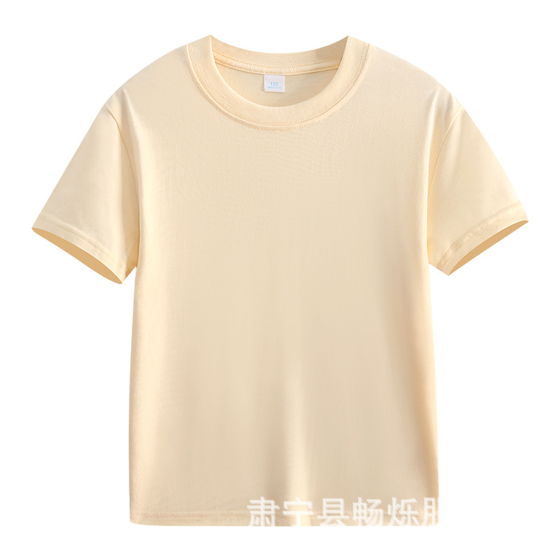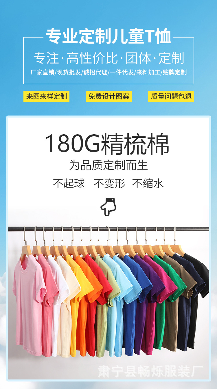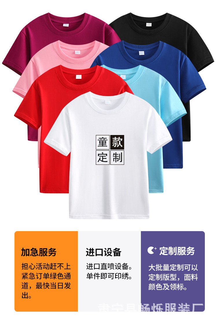 180g 면화 어린이 반팔 소년 소녀 단색 티셔츠 재킷 유치원 수업 옷 활동 옷 맞춤 인쇄 로고스토어 가기