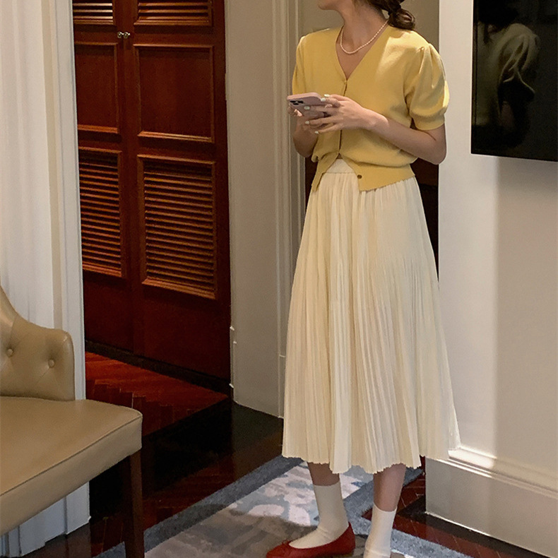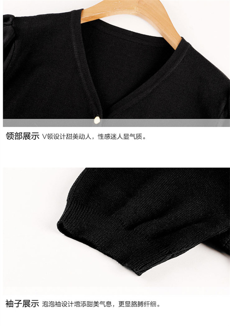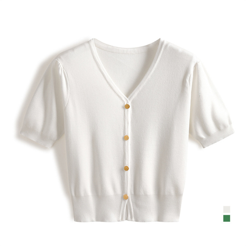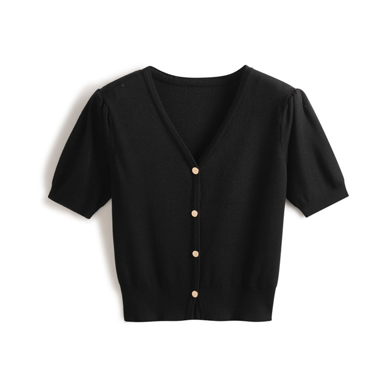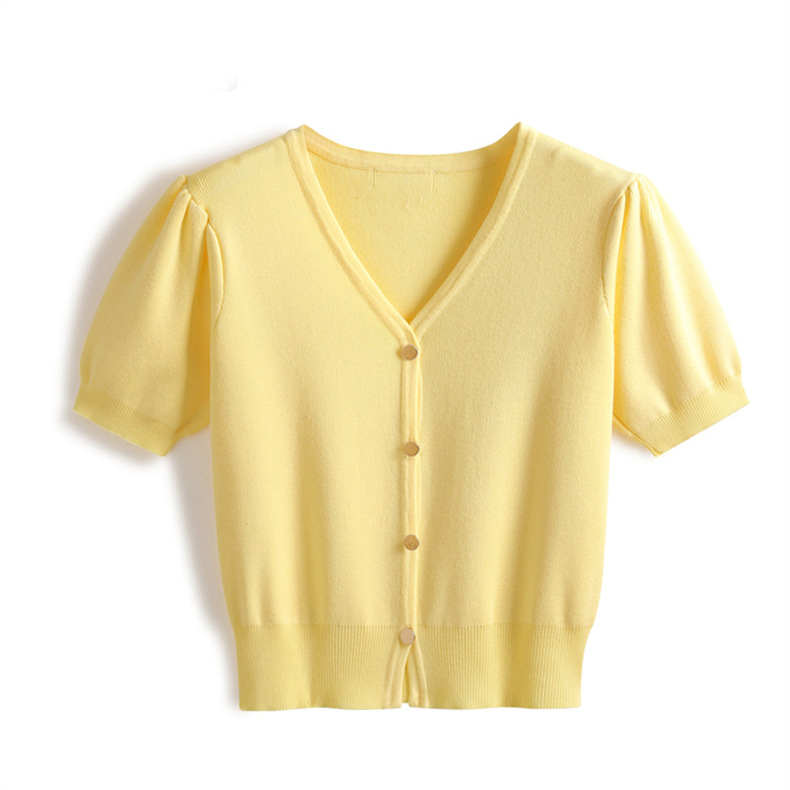 프랑스 레트로 하이 엔드 웨스턴 스타일 우아한 반팔 V 넥 퍼프 슬리브 반팔 여성용 스웨터 카디건 티셔츠 탑 여름