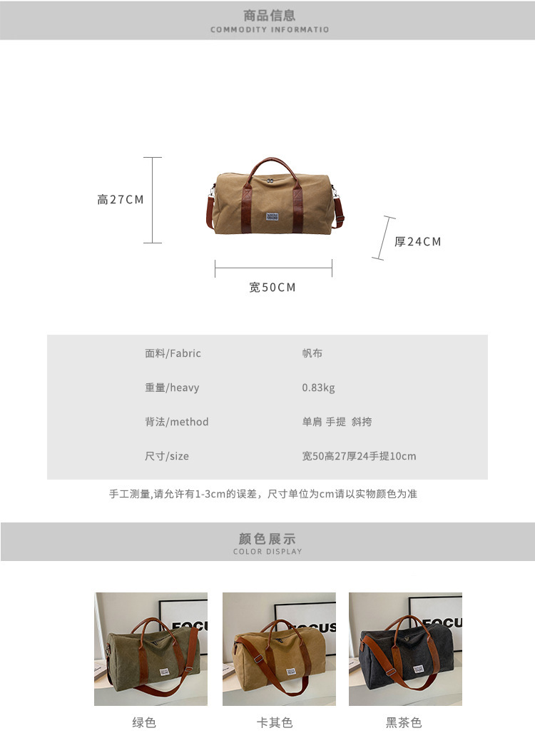 캔버스 가방 여성의 대용량 2024 새로운 모든 매치 크로스 바디 여행 수하물 가방 캐주얼 단거리 휴대용 여행 가방스토어 가기