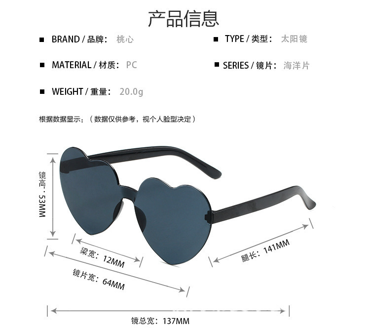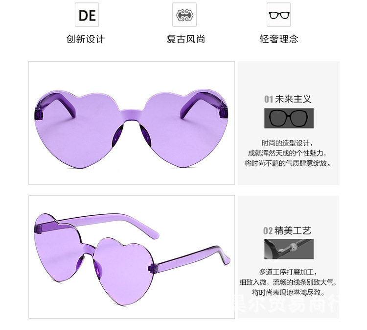 2026 러브 선글라스 무테 하트 모양 일체형 선글라스 컬러풀 하트 일체형 선글라스
