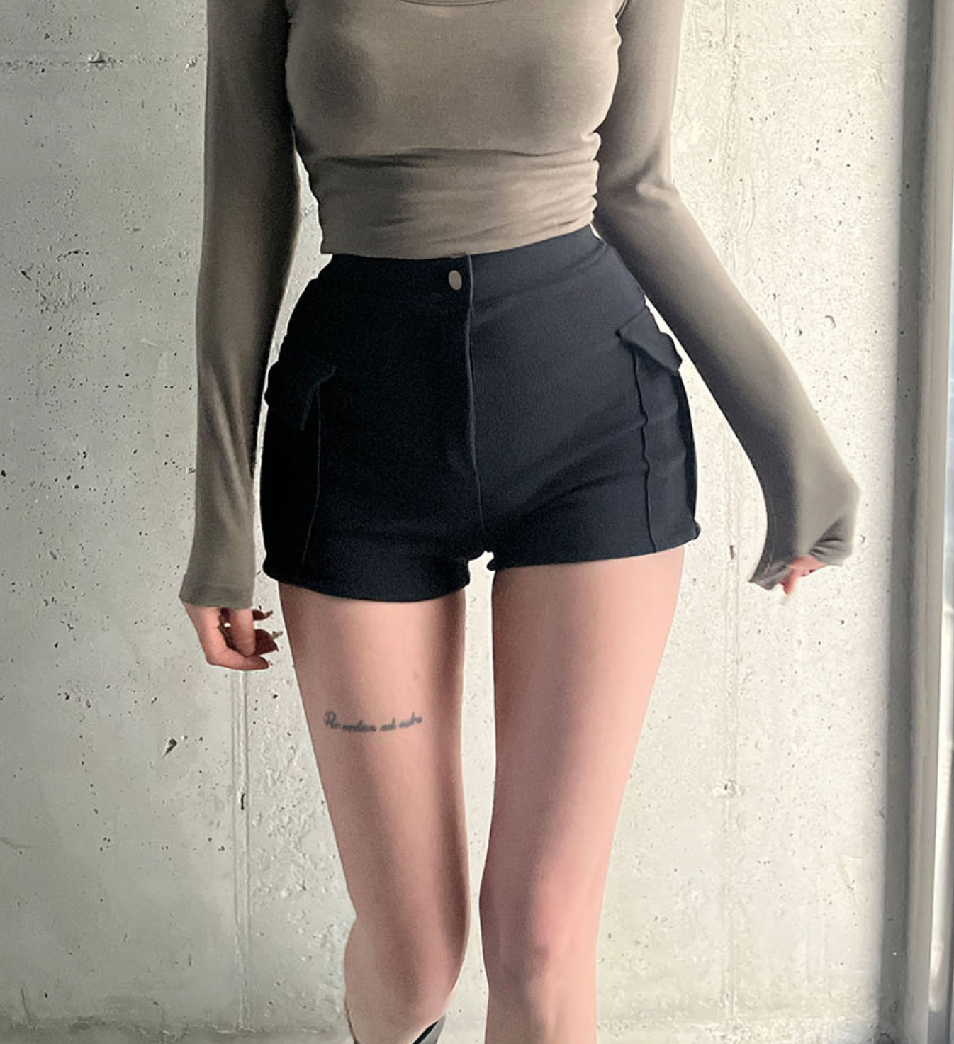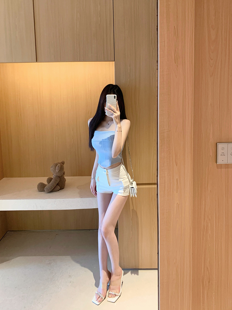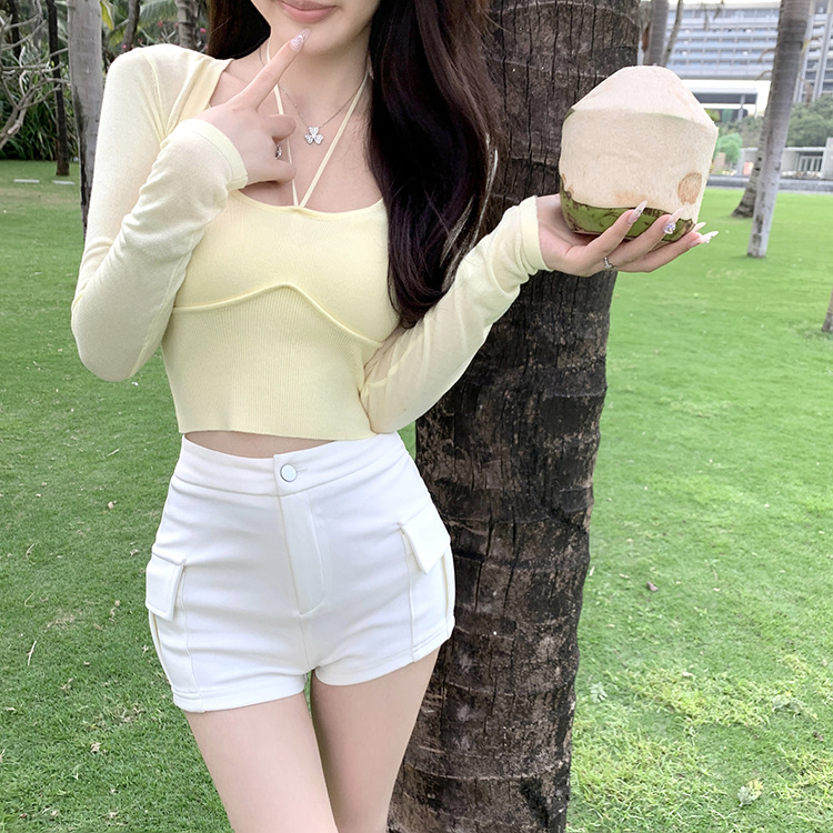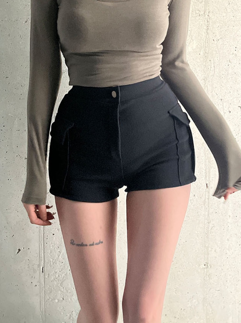 Fengxuan 패드 ~ 한국 동대문 새 높은 허리 타이트 반바지 두 배 포켓 높은 허리 캐주얼 청바지