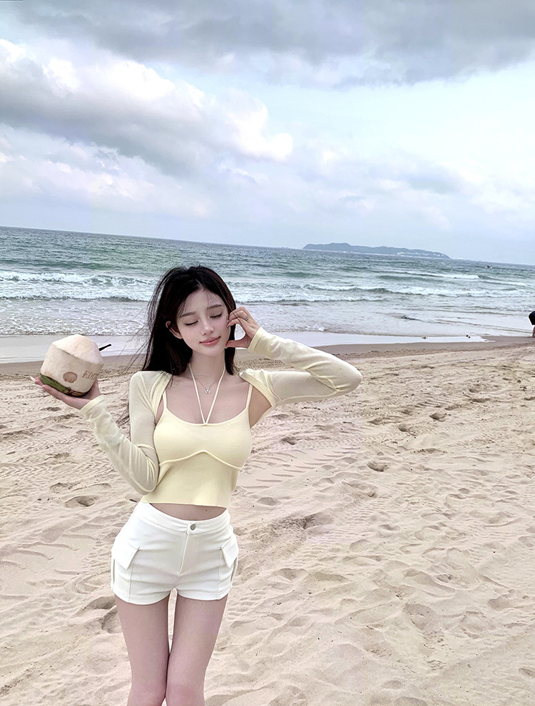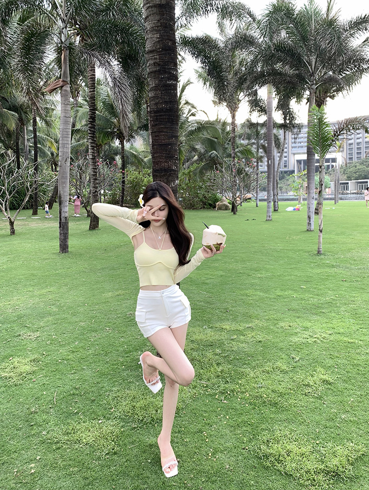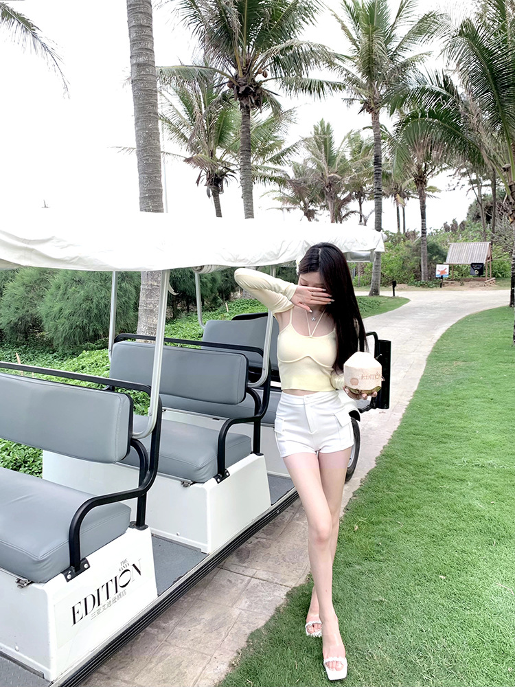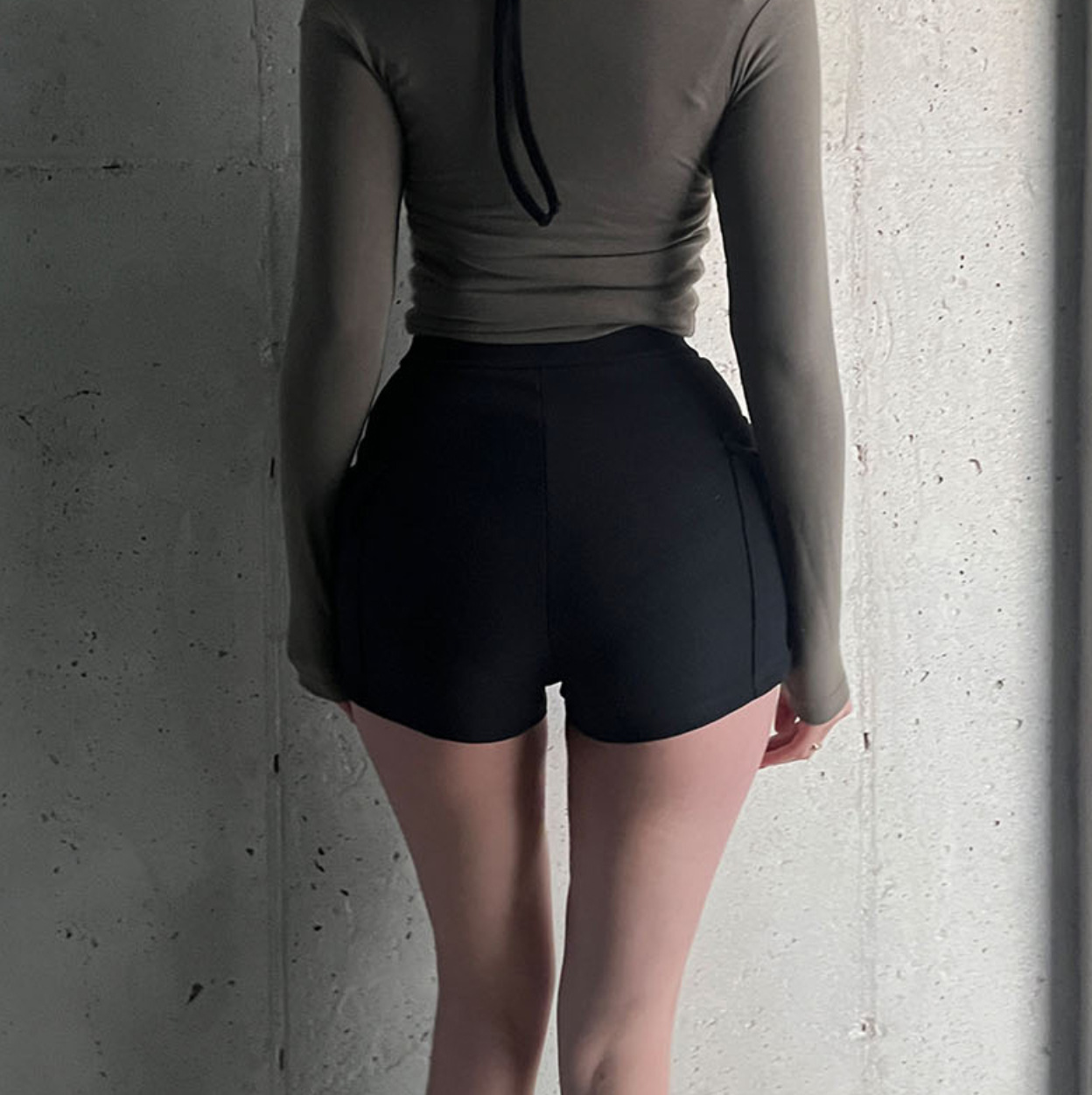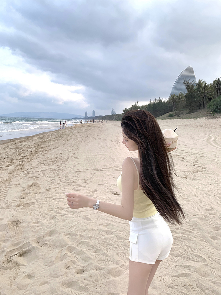 Fengxuan 패드 ~ 한국 동대문 새 높은 허리 타이트 반바지 두 배 포켓 높은 허리 캐주얼 청바지스토어 가기