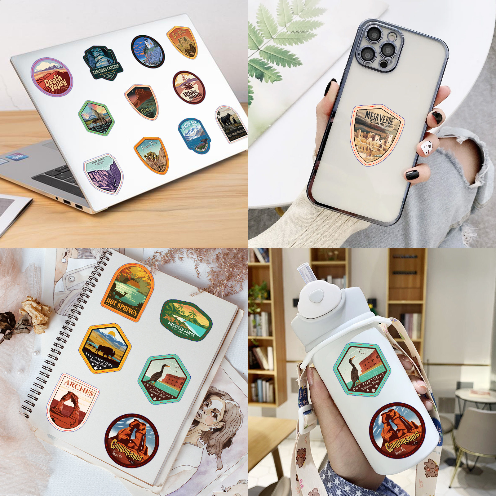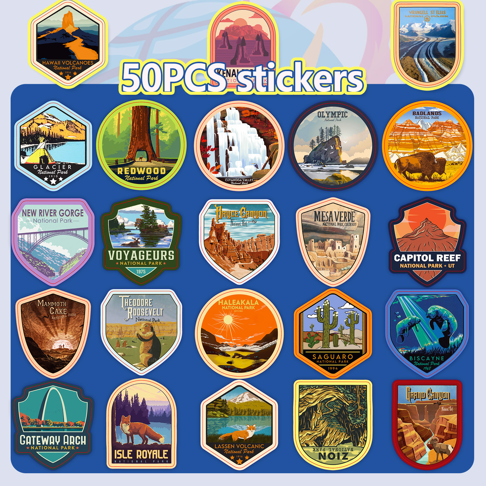 63 미국 국립 공원 스티커 아마존 자연 공원 여행 크로스 거울 야외 창조적 인 낙서 스티커