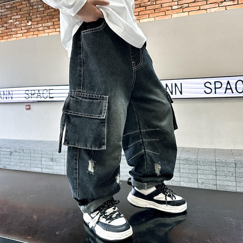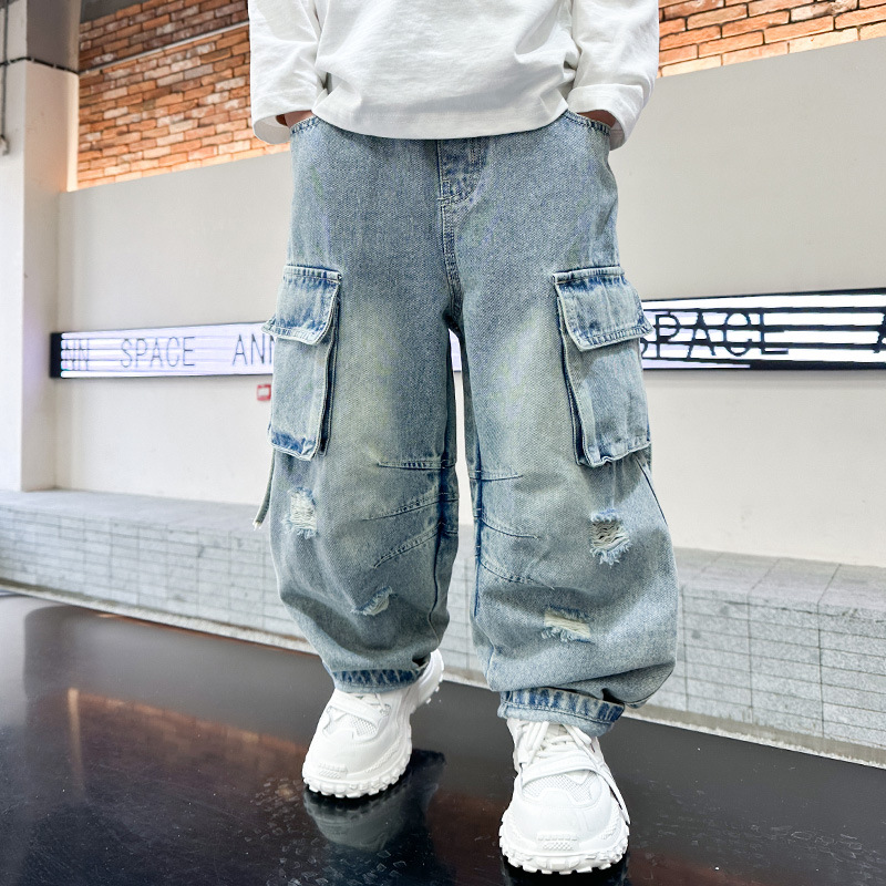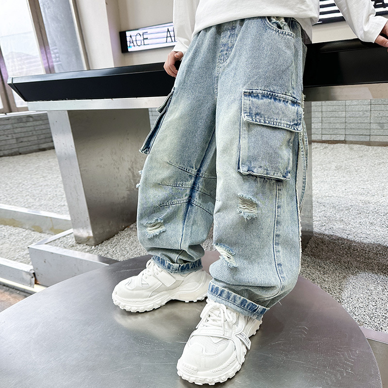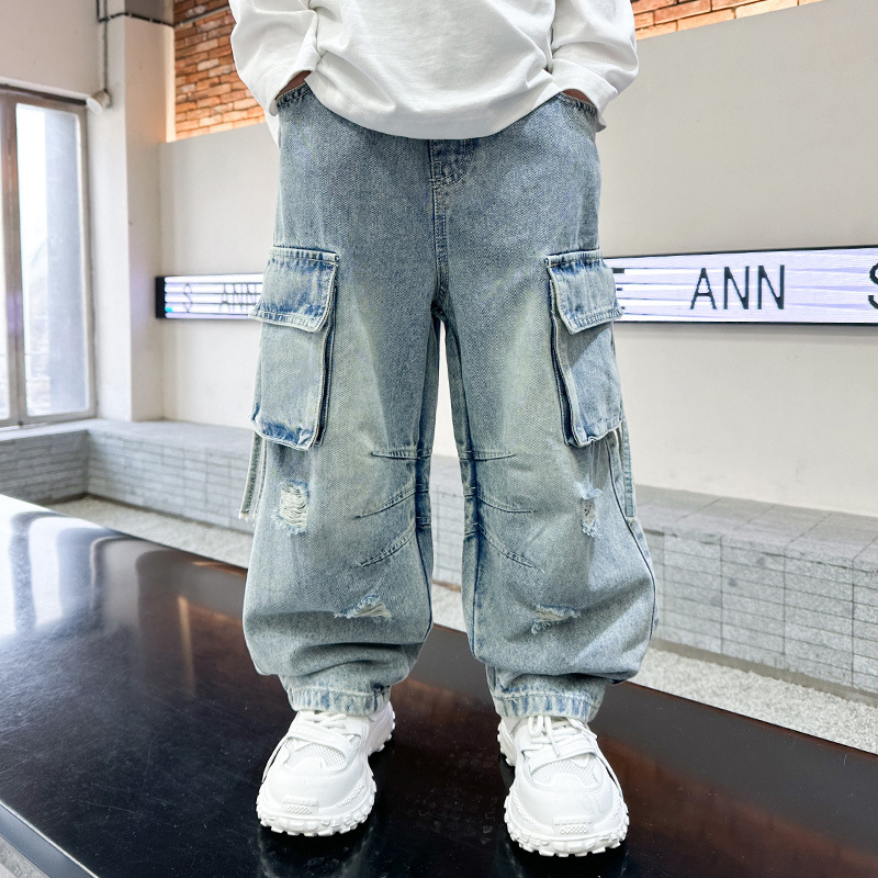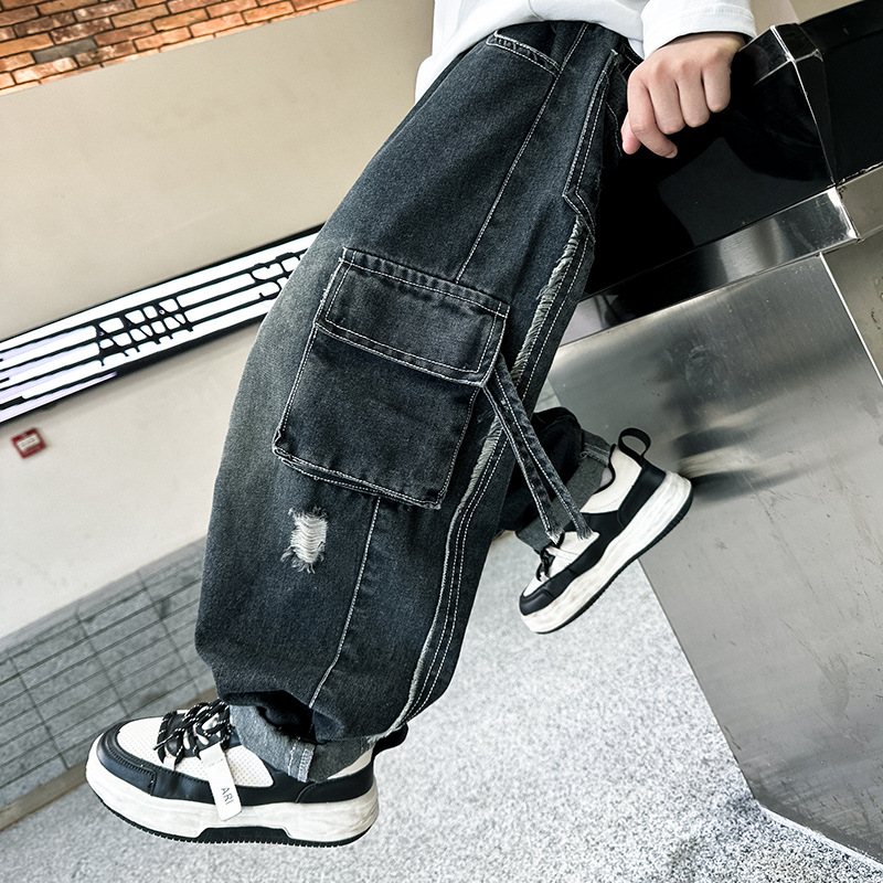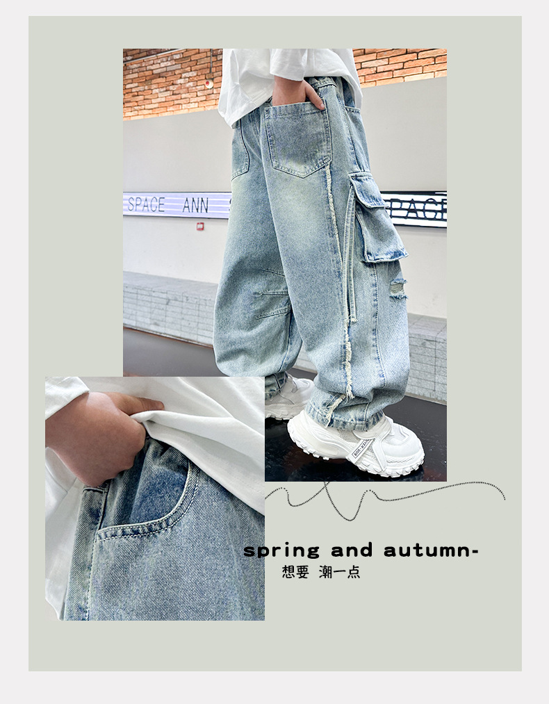 봄과 가을 중다 소년 데님 크레인 바지 새로운 아동복 어린이 소년 봄과 가을 캐주얼 크레인 바지 성격 유행스토어 가기