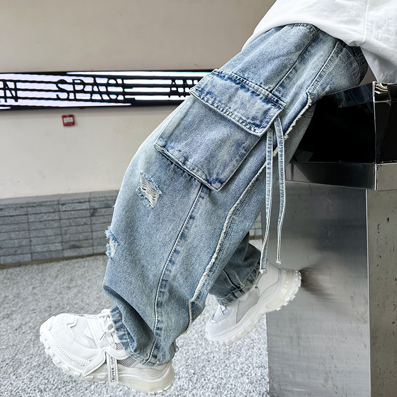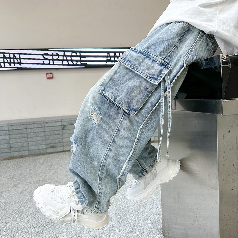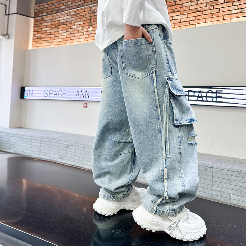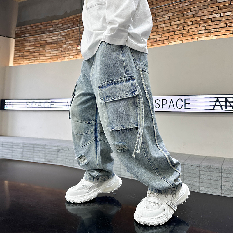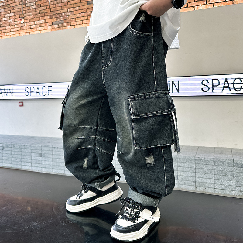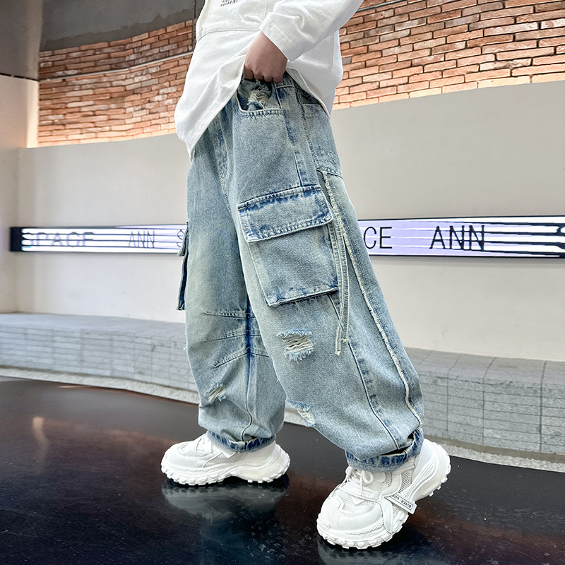 봄과 가을 중다 소년 데님 크레인 바지 새로운 아동복 어린이 소년 봄과 가을 캐주얼 크레인 바지 성격 유행스토어 가기