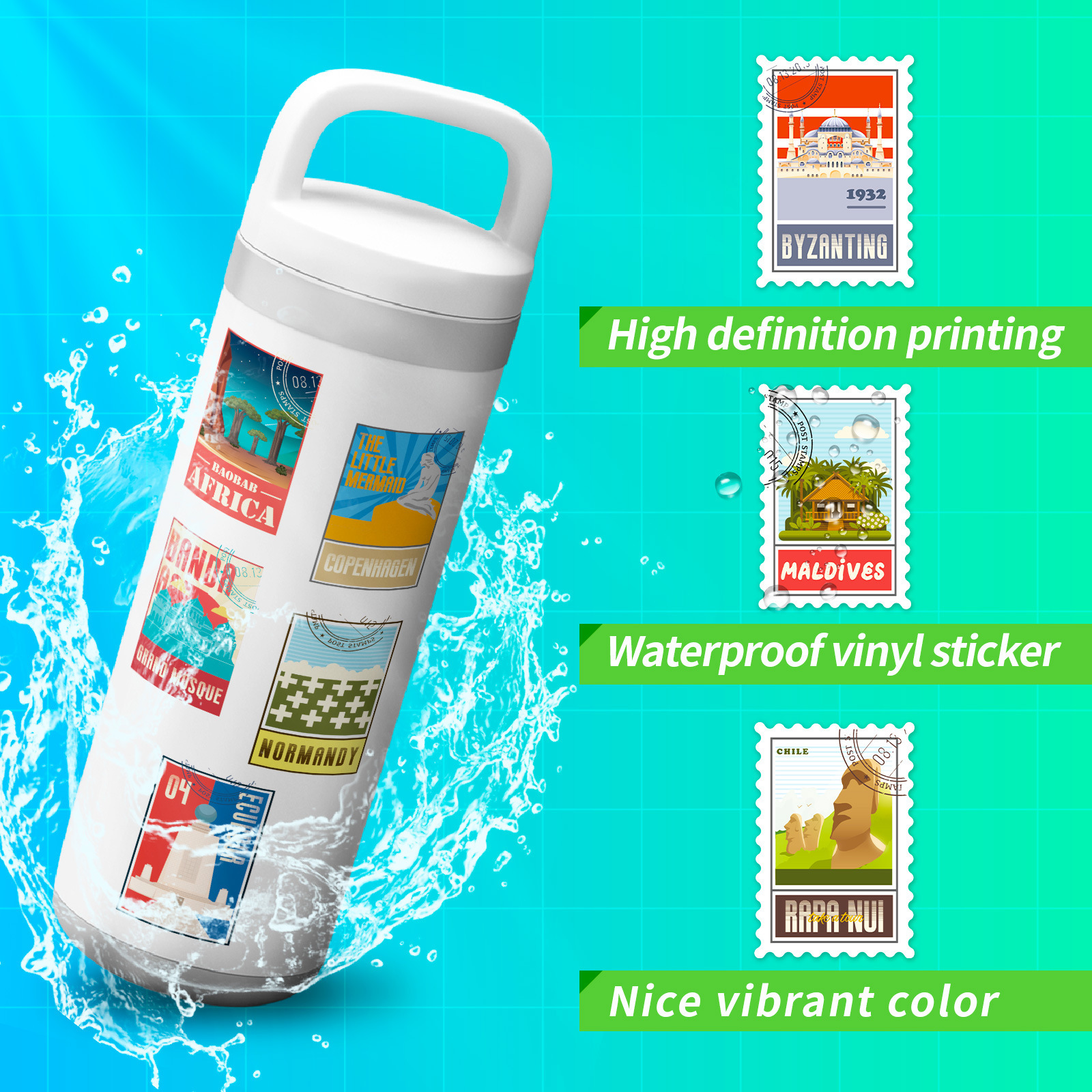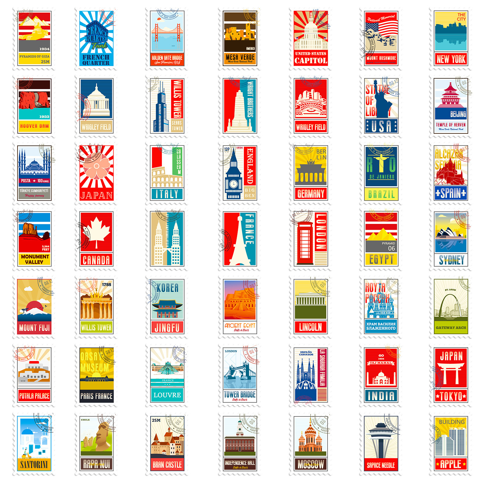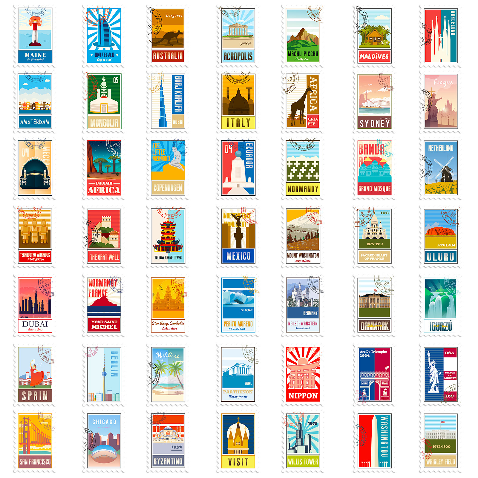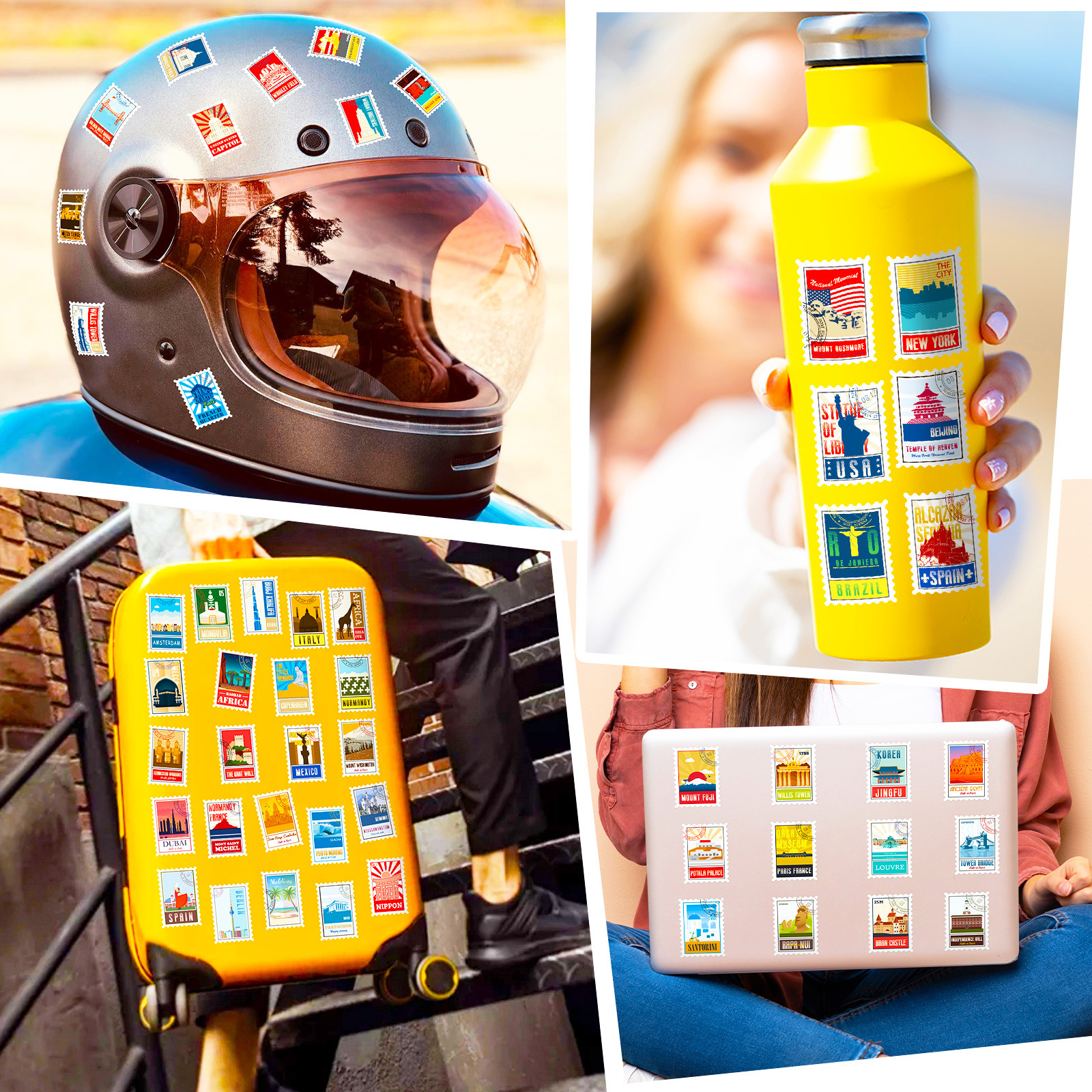 100 개의 우표 믹스 앤 매치 레트로 여행 스탬프 스티커 짐 노트북 전화 헬멧 스티커 4 장/팩
