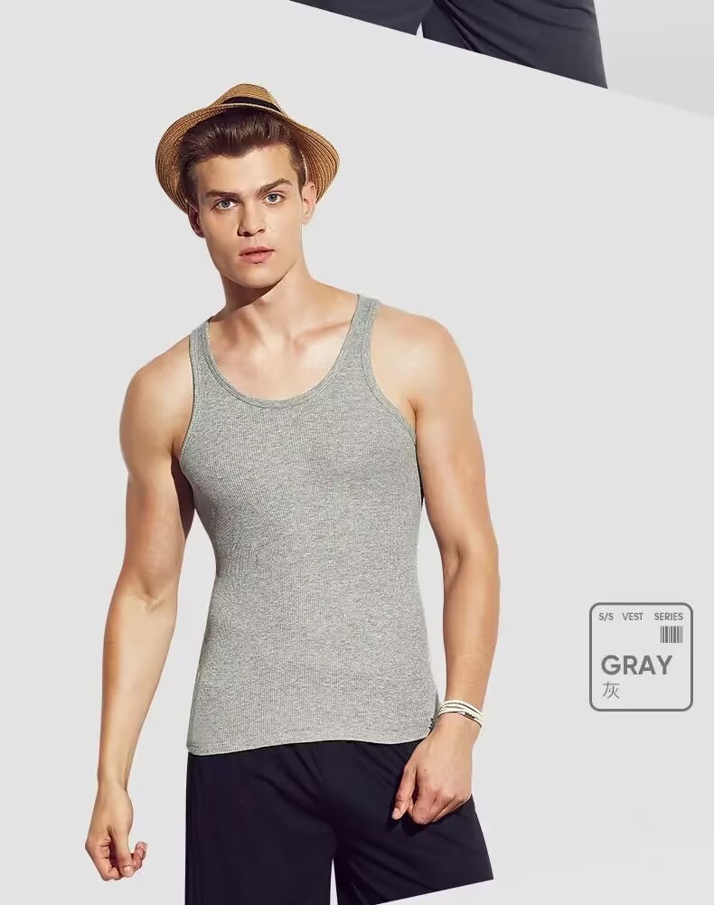 2024 남성용 순수 코튼 조끼 100% 신장 롱 스테이플 코튼 피트니스 스포츠 남성용 조끼 캐주얼 베이스 솔리드 컬러 이너웨어