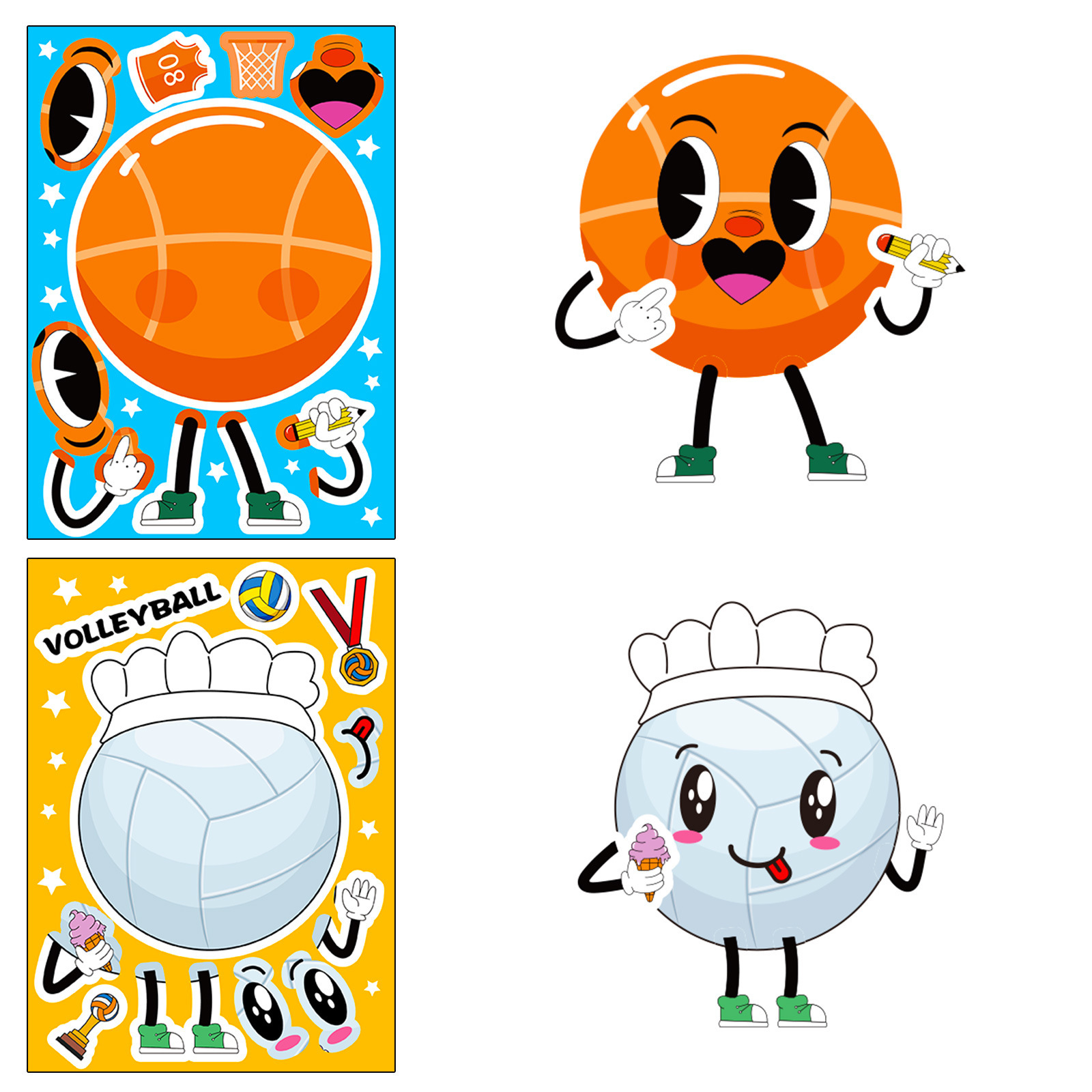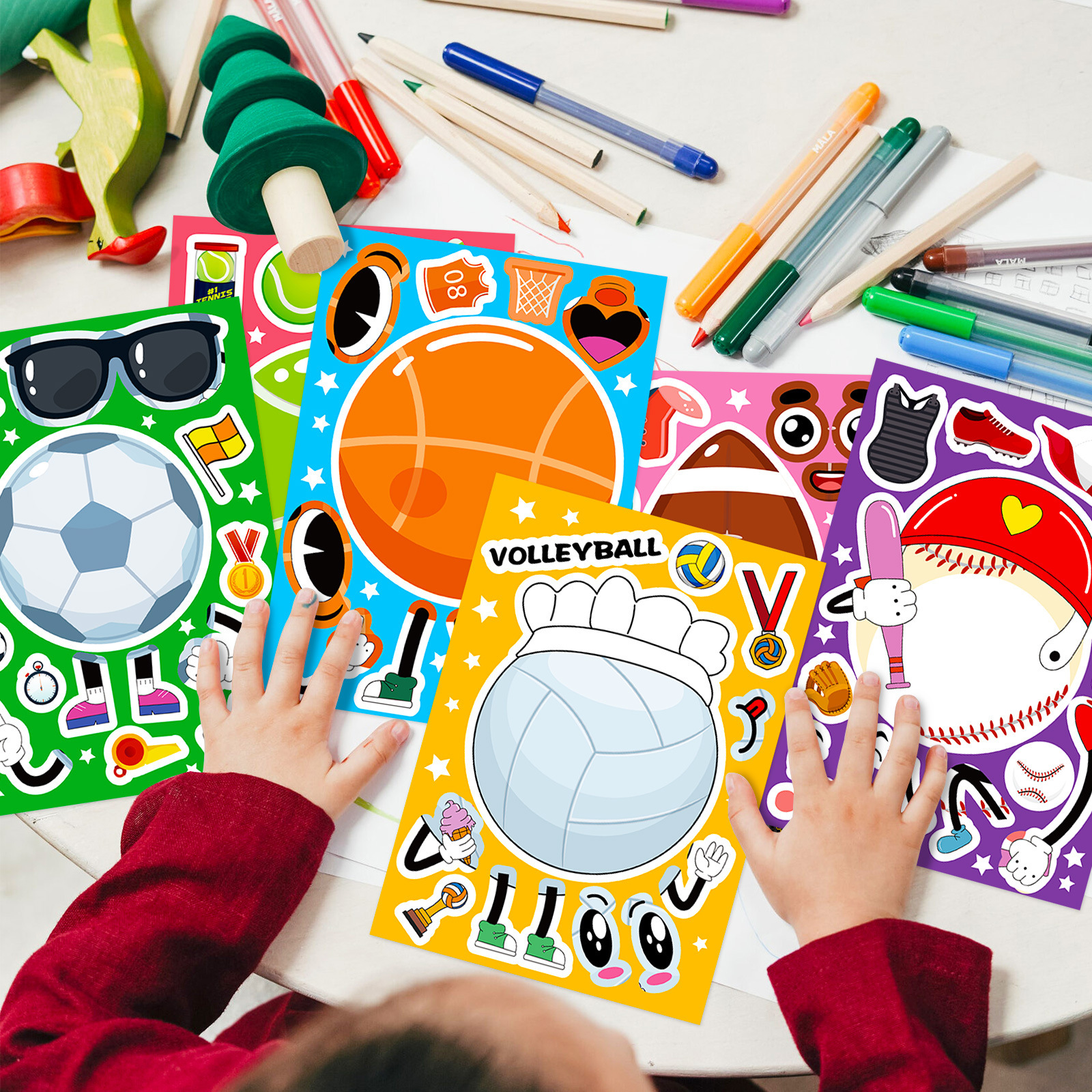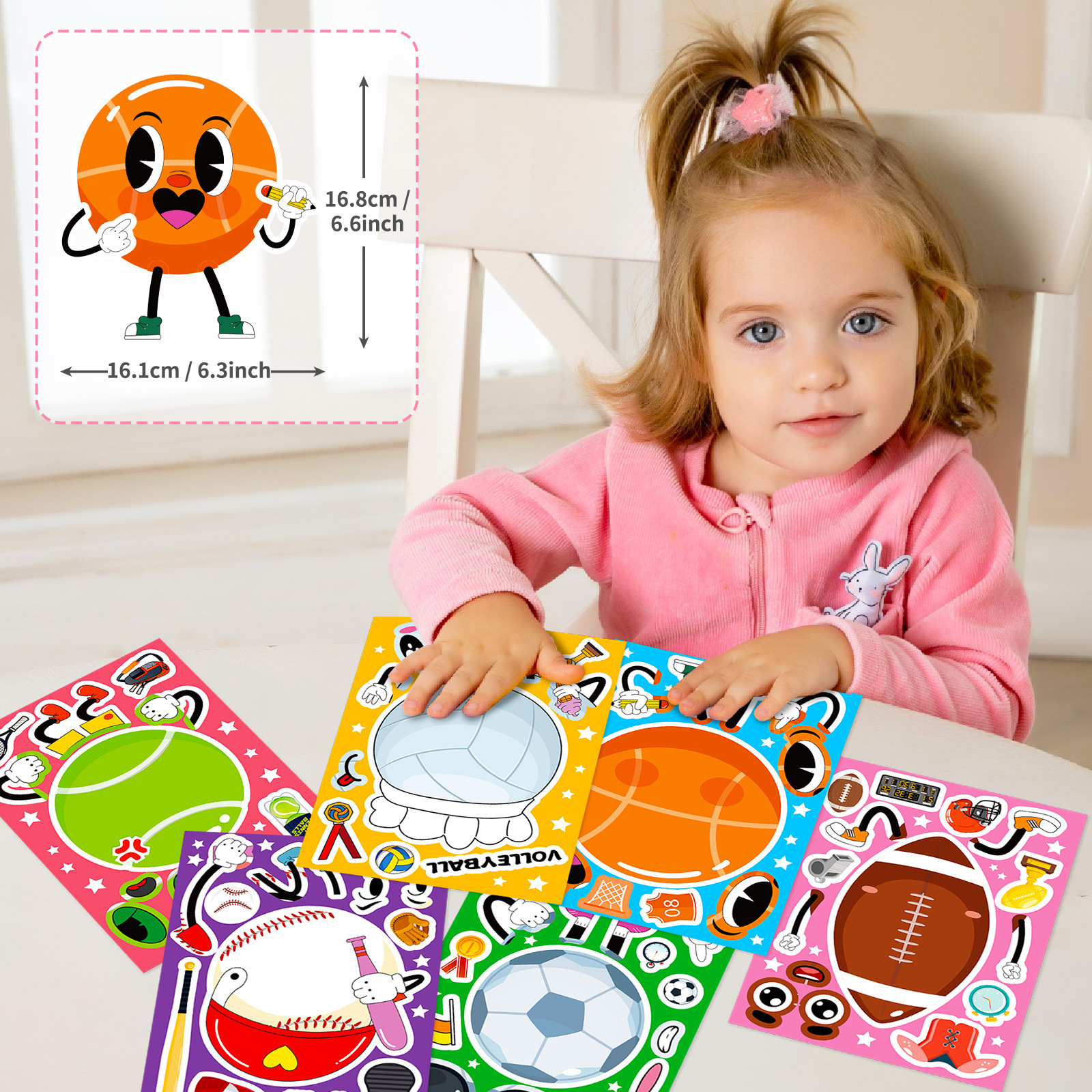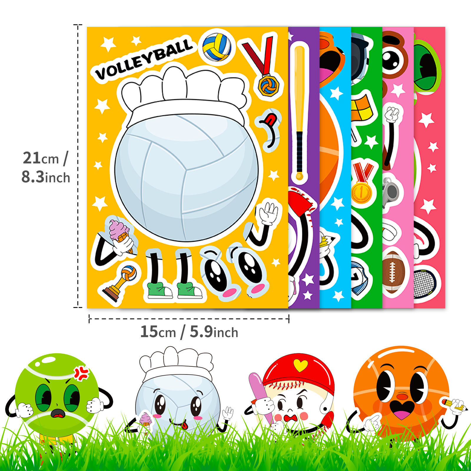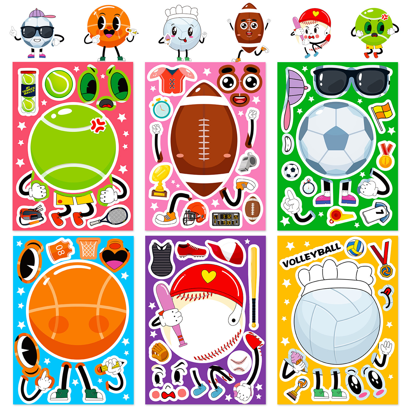 6개입/팩 다양한 얼굴표정 교체 스티커, 구형 변신 얼굴표정 교체 퍼즐, 어린이 교육용 스티커