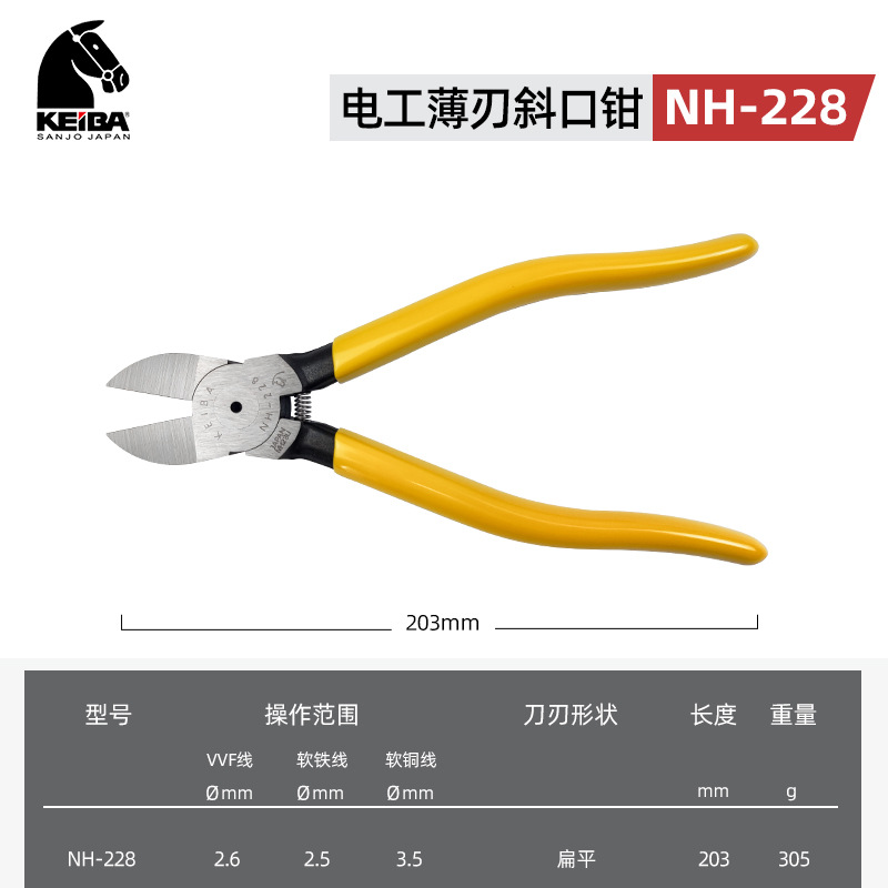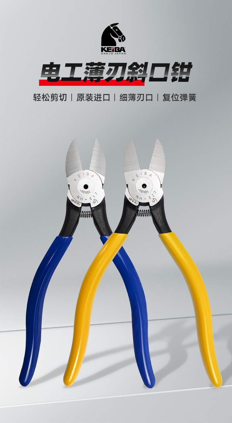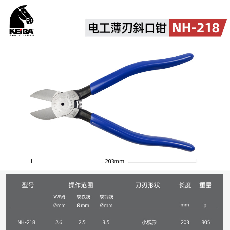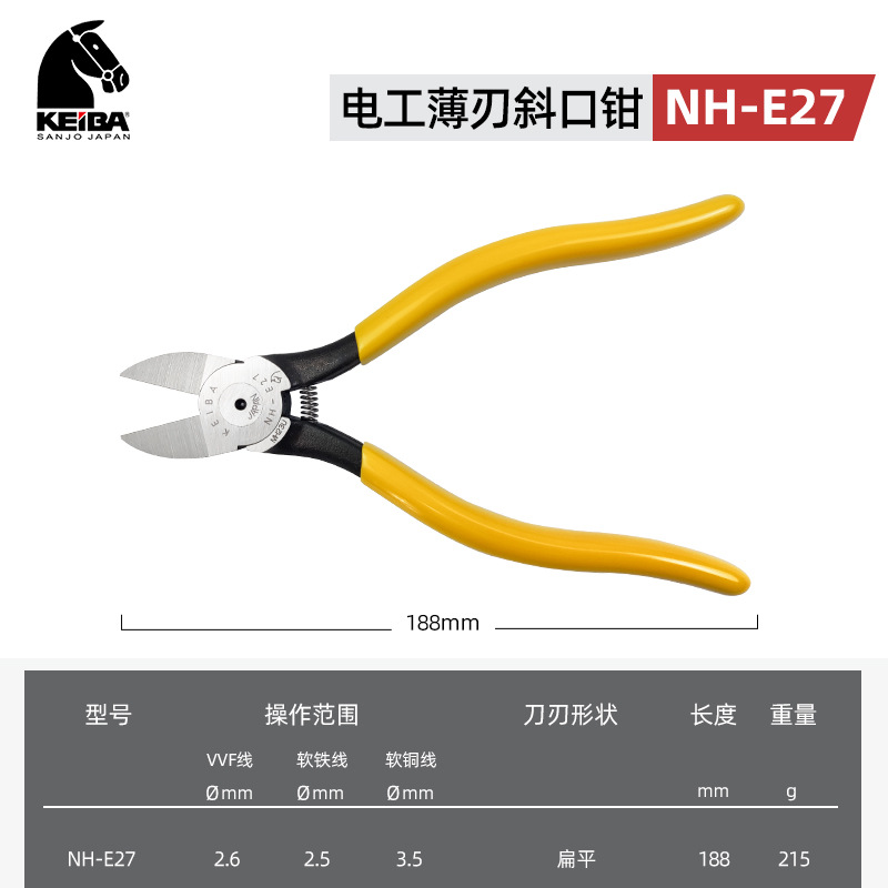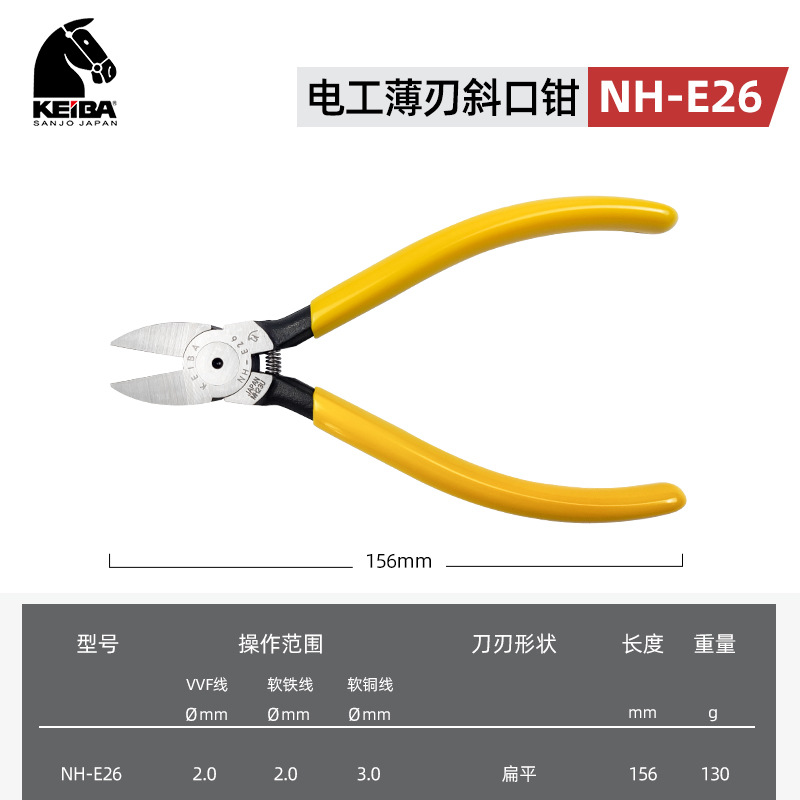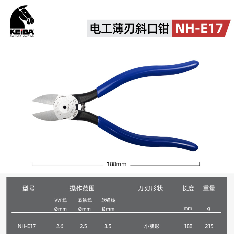 일본 KEIBA 말 브랜드 NH-228/218/E16/E17/E26 전기 얇은 블레이드 강한 물 입 펜서 비스듬한 코 펜치
