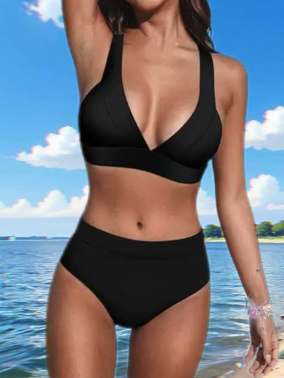 새로운 단색 유럽과 미국의 섹시한 슬림 분할 AliExpress 비키니 온천 수영복 해외 무역 도매 비키니
