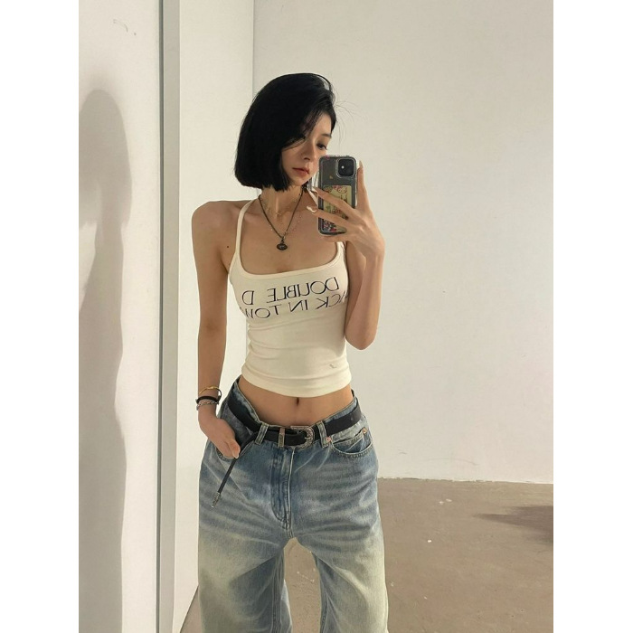 아메리칸 스타일 스파이스 소녀 순수한면 아름다운 뒷면 작은 카미 솔 조끼 여성의 여름 내복 외부 착용 슬리밍 짧은 달콤한 핫 민소매 탑
