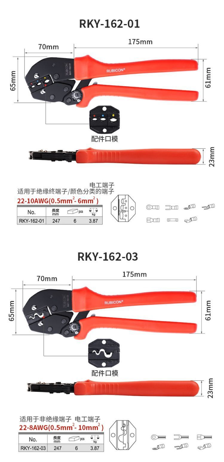 일본 로빈 후드 래칫 압착 펜치 베어 터미널 압착 펜치 냉압 절연 젖꼭지 바늘 펜치 RKY-162-09